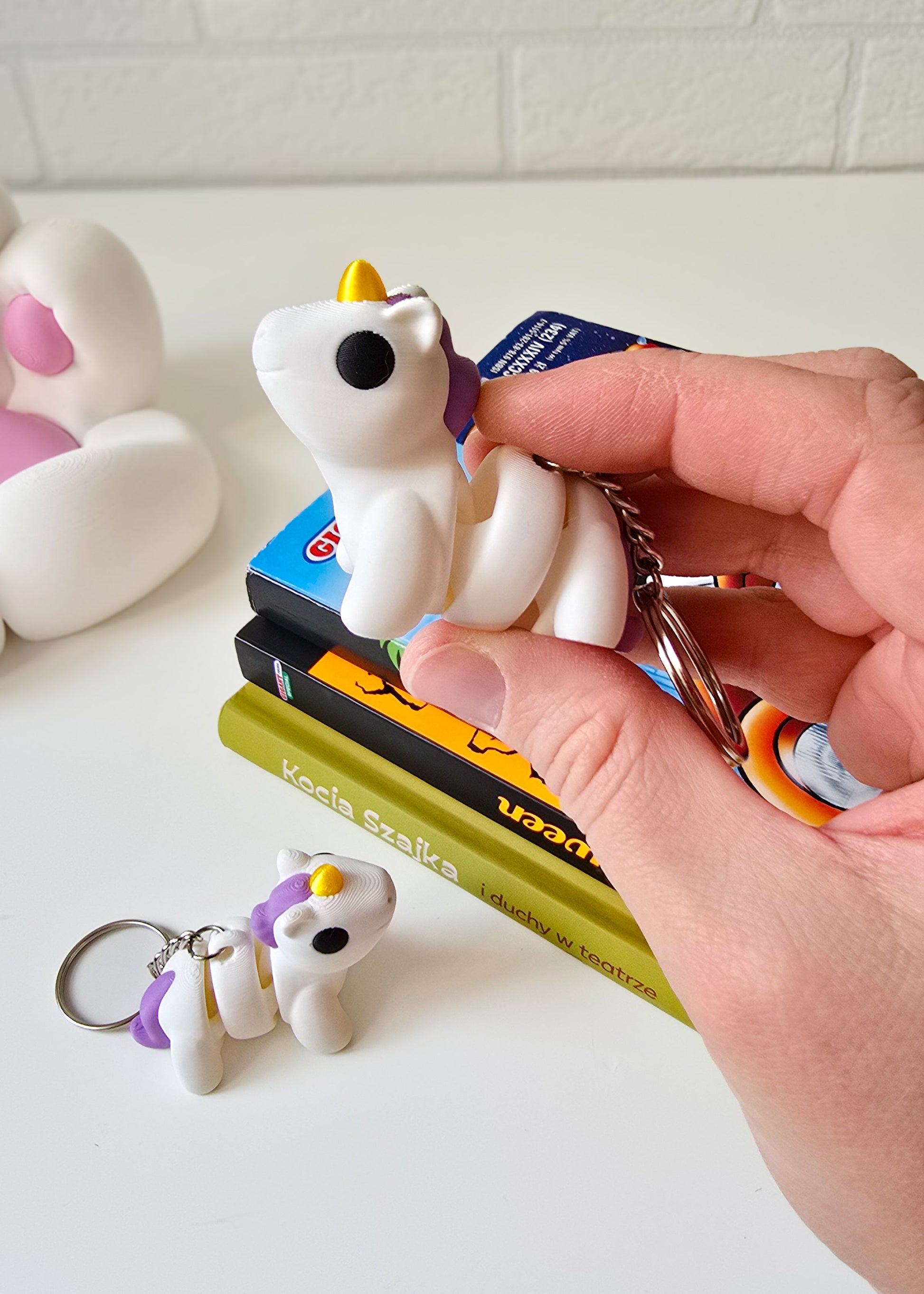 Poznaj uroczy brelok w kształcie jednorożca, stworzony z dbałością o detale i wydrukowany w 3D! Ta miniaturowa figurka jednorożca zachwyca swoim bajkowym wyglądem – ma delikatną grzywę i ogon, w pastelowym kolorze, oraz charakterystyczny złoty róg, który dodaje mu magicznego blasku. Całość jest wykonana z lekkiego materiału, co sprawia, że brelok jest idealnym dodatkiem do kluczy, torebki lub plecaka. Jednorożec emanuje urokiem i lekkością, a jego kompaktowy rozmiar sprawia, że jest praktyczny, ale i przyciąga spojrzenia. Ten brelok to idealny wybór dla miłośników fantazji, magii i kolorowych dodatków, dodający odrobiny magii do codziennych akcesoriów!