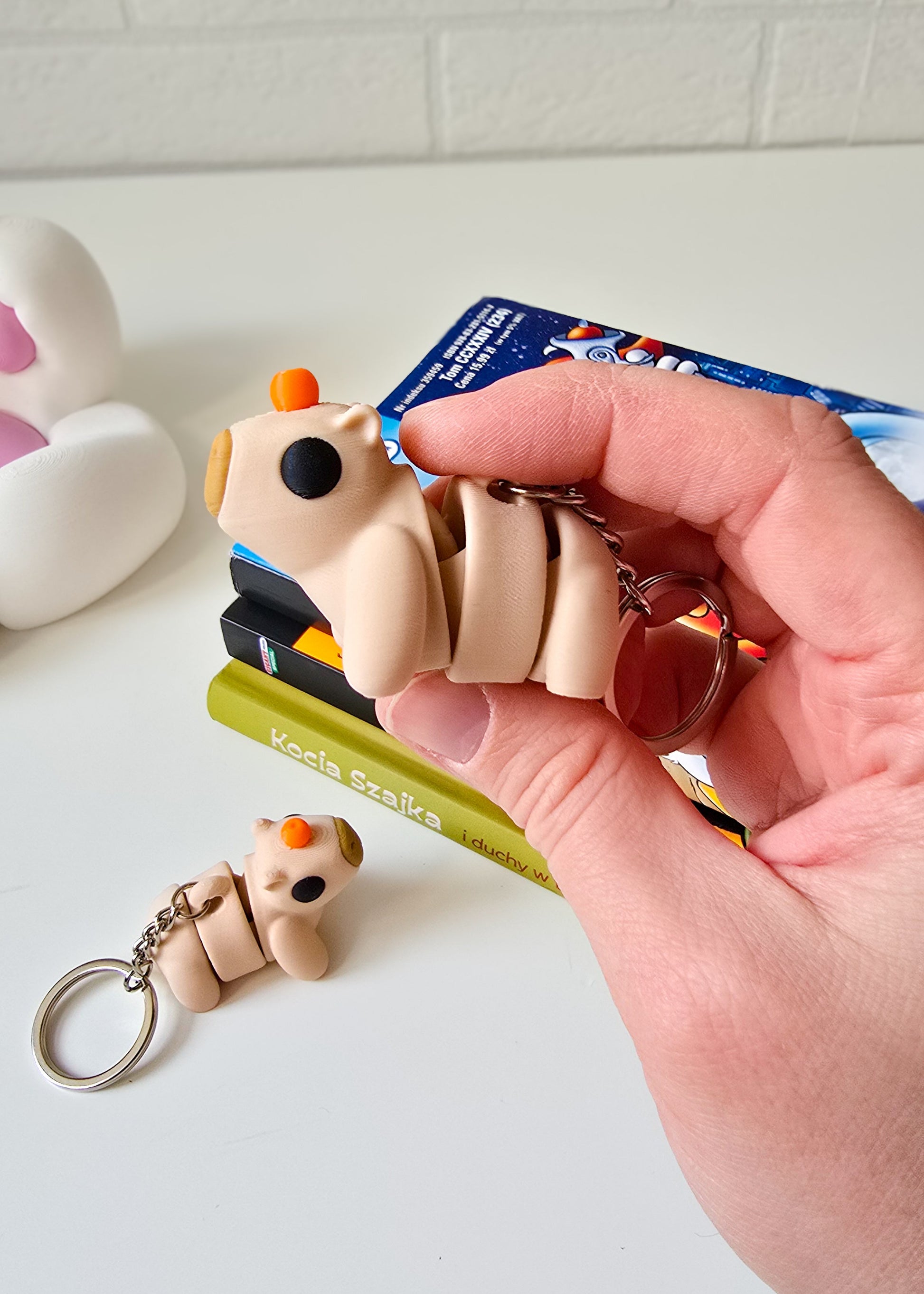 Brelok w kształcie kapibary, wykonany na drukarce 3D, to wyjątkowy i zabawny dodatek, który świetnie sprawdzi się jako ozdoba kluczy, plecaka czy torby. Kapibara została zaprojektowana z dbałością o szczegóły – jej zaokrąglona sylwetka, charakterystyczne uszy i łagodne rysy twarzy oddają urok tego sympatycznego zwierzątka. To idealny pomysł na prezent dla fanów kapibar, miłośników oryginalnych gadżetów lub osób szukających nietuzinkowych akcesoriów. Ten brelok to połączenie funkcjonalności i uroku, które wyróżnia się wśród innych dodatków.