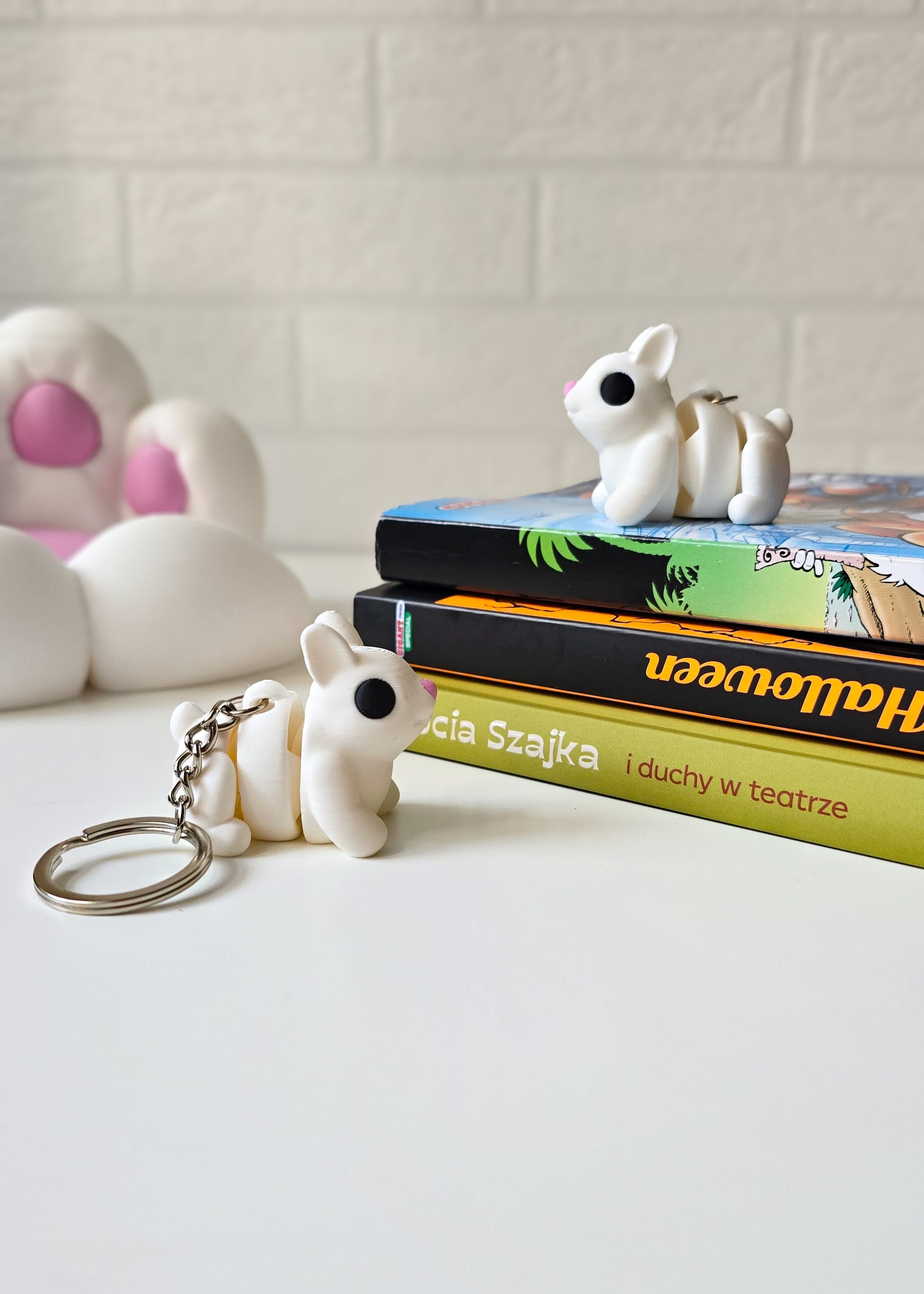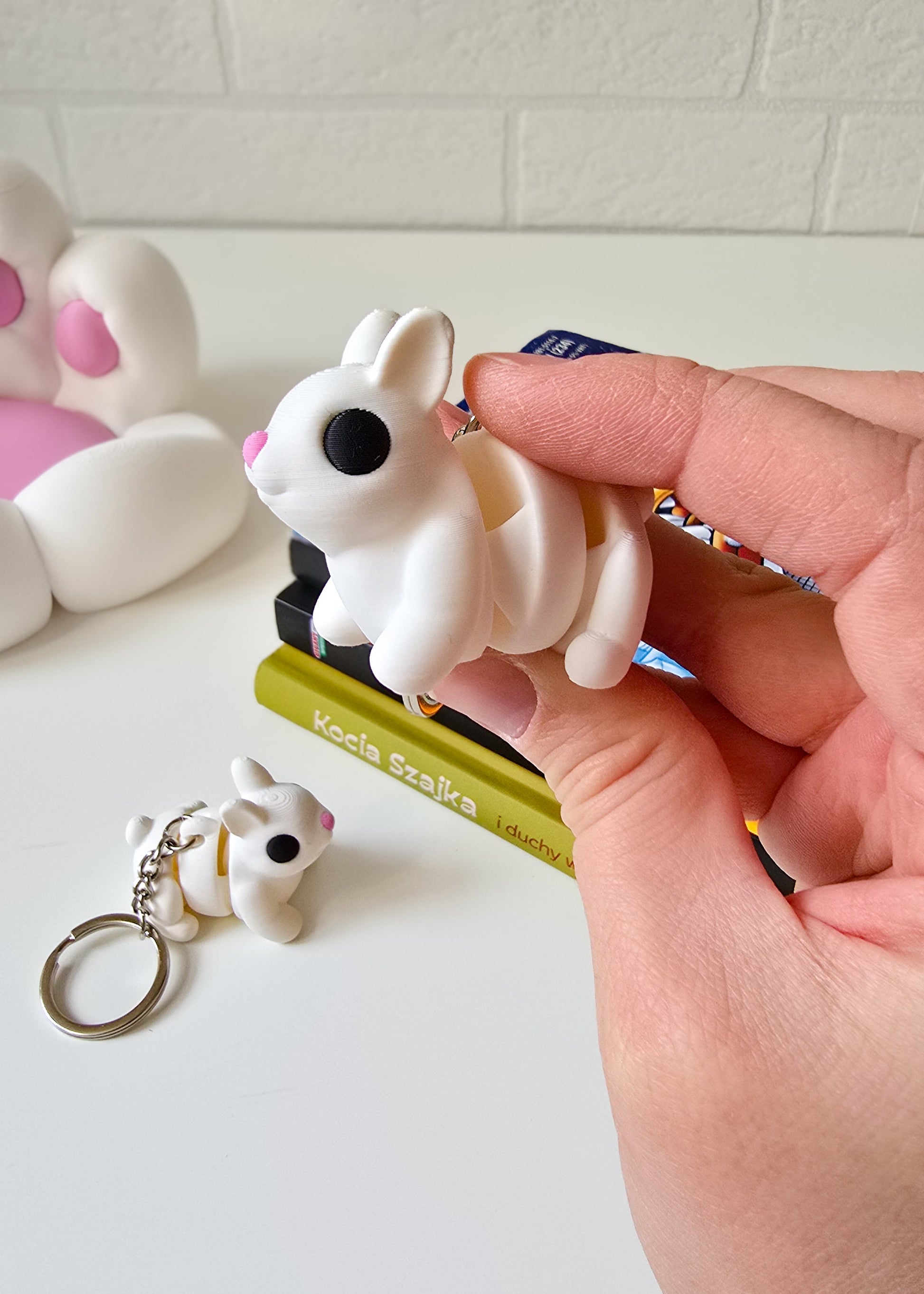 Brelok w kształcie białego króliczka, wykonany na drukarce 3D, to stylowy i uroczy dodatek, który idealnie sprawdzi się jako ozdoba kluczy, plecaka lub torebki. Króliczek został zaprojektowany z dbałością o każdy detal – od delikatnych uszu, przez miękkie linie sylwetki, aż po subtelny wyraz twarzy, który dodaje mu charakteru. To świetny pomysł na drobny prezent dla miłośników zwierząt, wielbicieli unikalnych akcesoriów lub osób, które cenią nowoczesne, personalizowane gadżety.