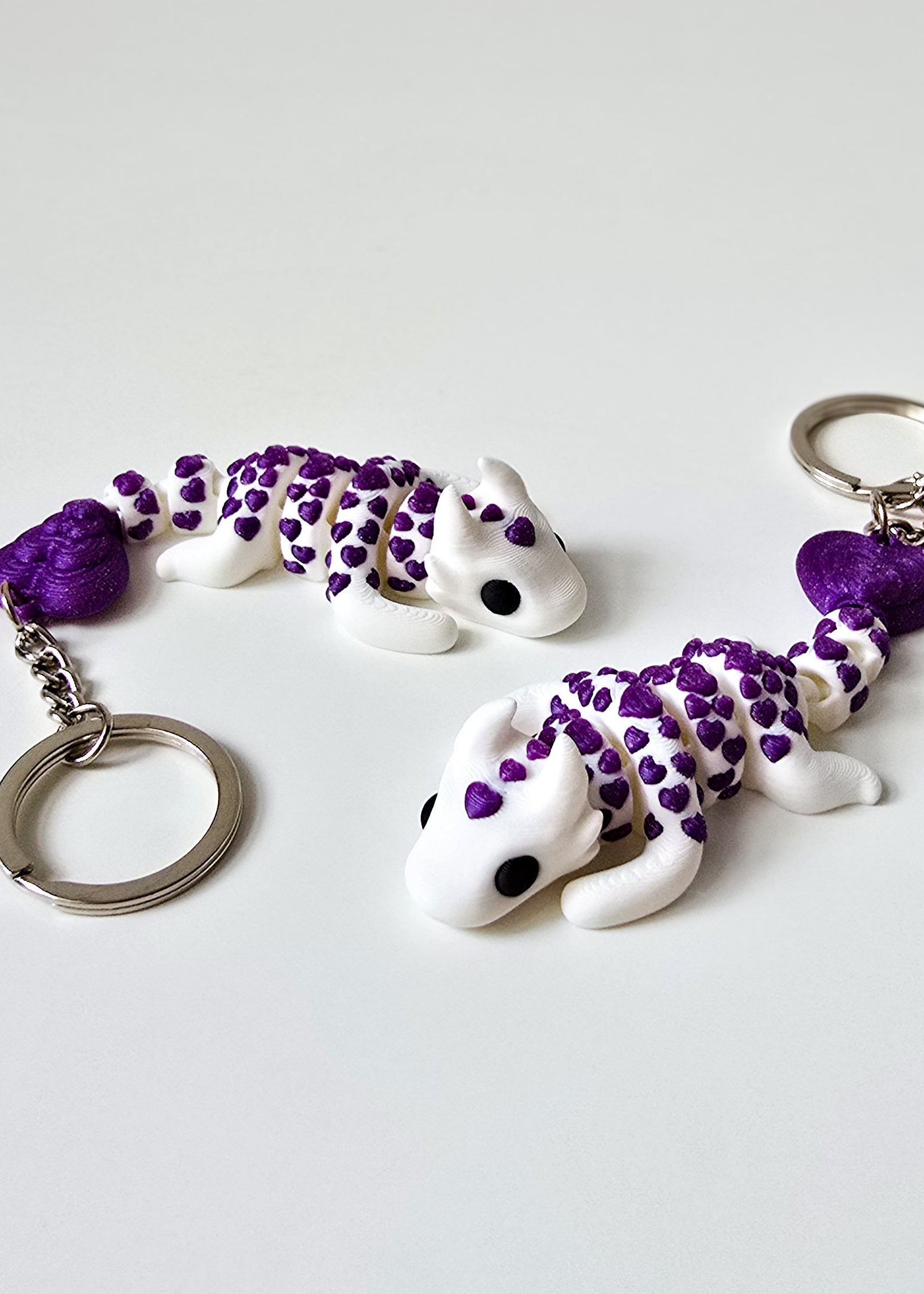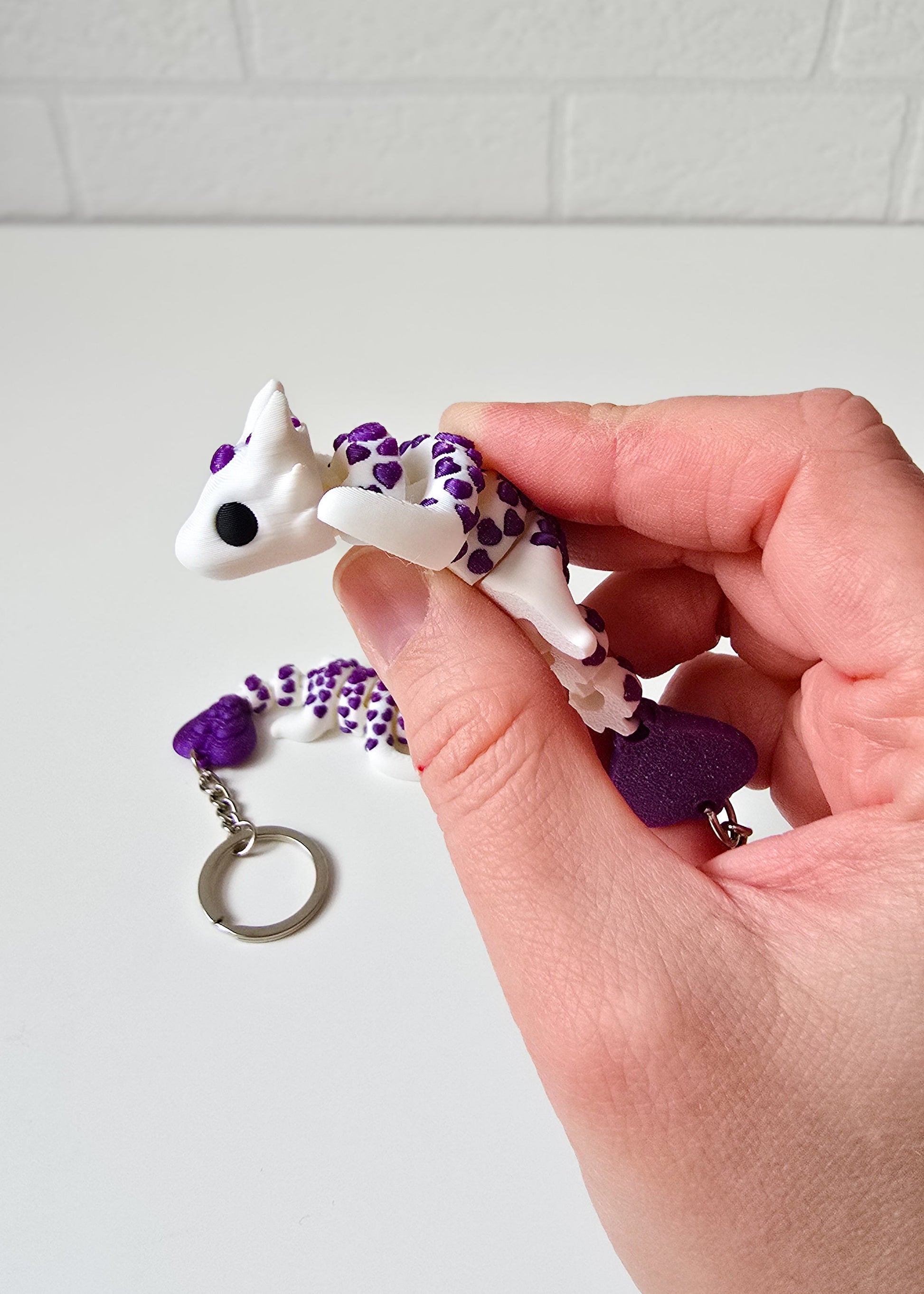 Dodaj odrobinę uroku do swoich kluczy lub plecaka z naszym uroczym smokiem 3D! Ten miniaturowy smok wyróżnia się grzbietem ozdobionym subtelnymi serduszkami, które nadają mu wyjątkowo przyjazny i romantyczny charakter. Idealny jako drobiazg dla bliskiej osoby lub jako uroczy akcent w codziennym życiu. Jest praktyczny, piękny i z pewnością przyciągnie uwagę!