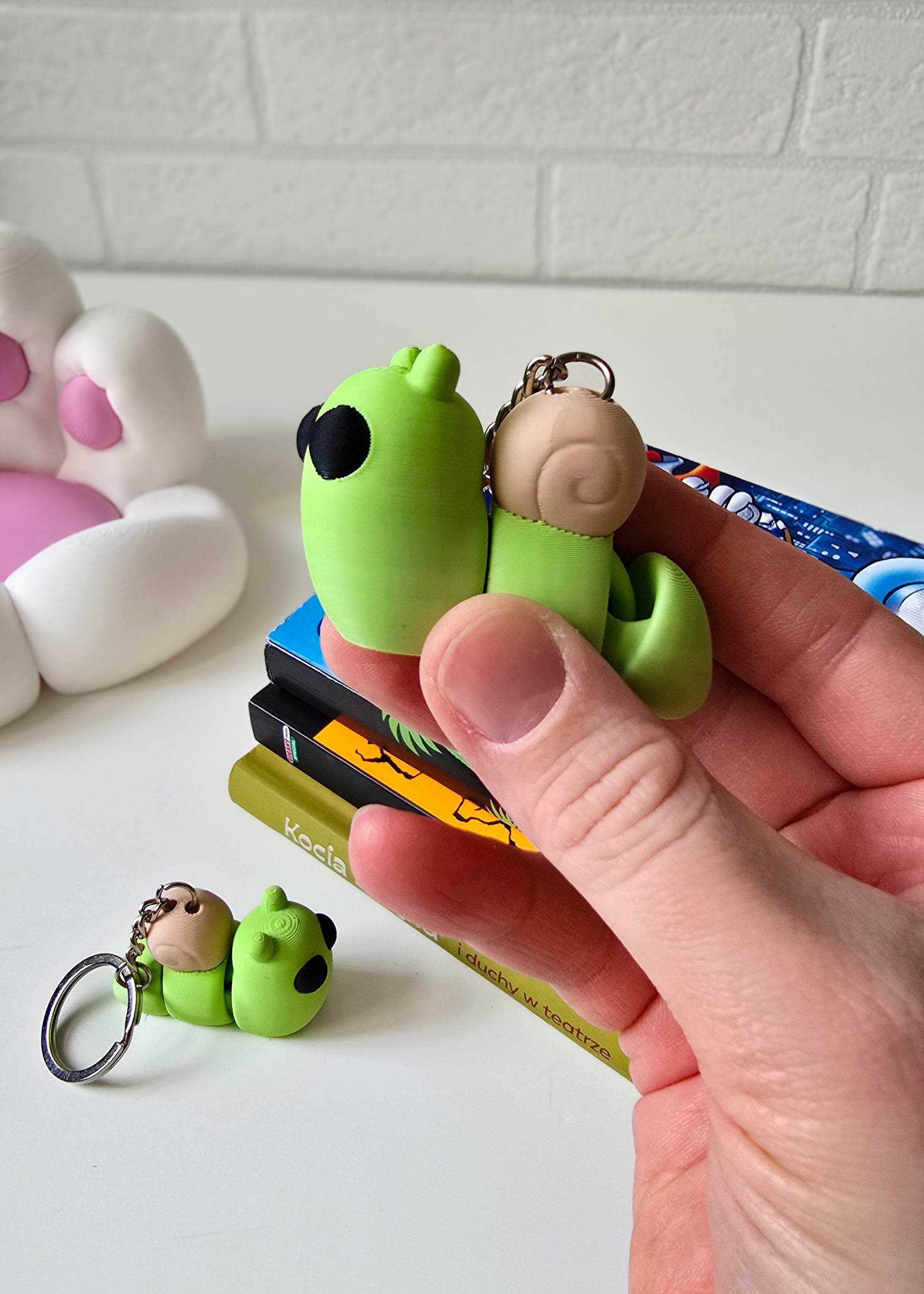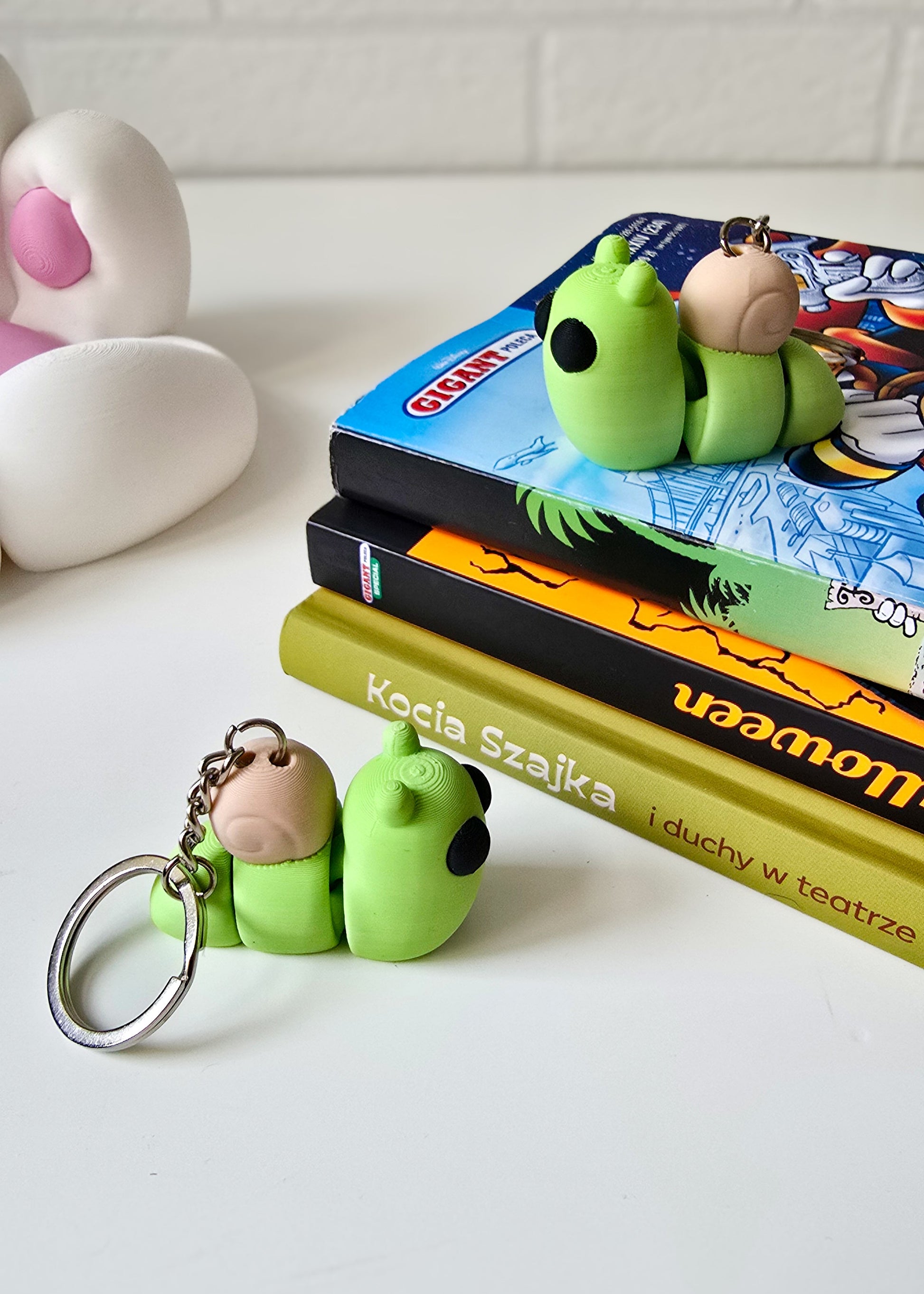 Brelok w kształcie zielonego ślimaka z małą skorupką, wykonany na drukarce 3D, to wyjątkowy i uroczy dodatek, który idealnie nadaje się jako ozdoba kluczy, plecaka lub torebki. Ślimaczek został zaprojektowany z dbałością o szczegóły – od smukłego, zaokrąglonego ciała, po maleńką, spiralną skorupkę na grzbiecie, która nadaje mu unikalnego charakteru. To idealny pomysł na prezent dla fanów przyrody, miłośników oryginalnych gadżetów lub osób, które szukają czegoś nietuzinkowego. Brelok w kształcie zielonego ślimaka to praktyczny, a jednocześnie zabawny dodatek, który wyróżnia się w każdej kolekcji.