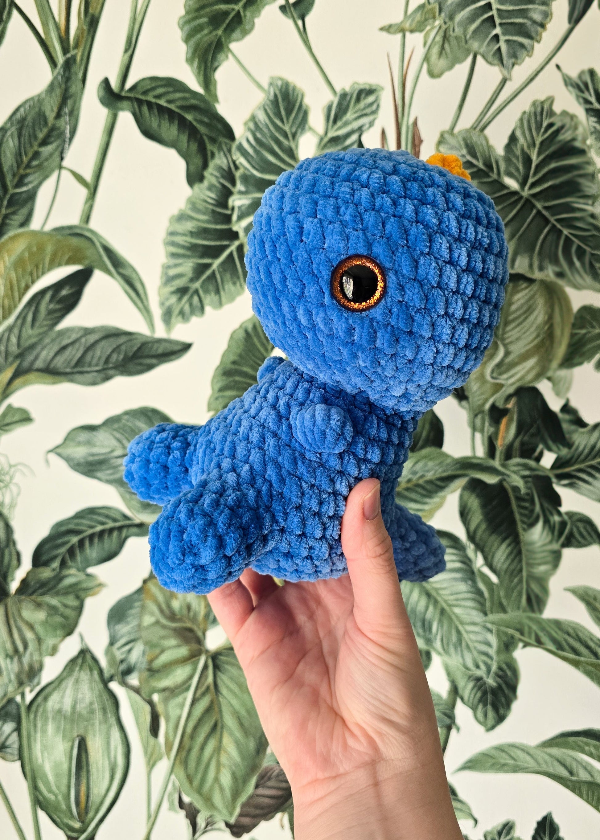 Poznaj wyjątkowego niebieskiego T-Rexa, który łączy w sobie urok dinozaurów z miękkością ręcznie wykonanego szydełkowego dzieła. Ten uroczy i przyjazny tyranozaur stanie się nieodłącznym towarzyszem zabaw oraz idealną ozdobą pokoju dla małych miłośników prehistorii. Stworzony z najwyższej jakości włóczki, nasz T-Rex jest zarówno bezpieczny, jak i przytulny. Ten zielony T-Rex to idealny prezent dla dzieci, które fascynują się dinozaurami, oraz dla kolekcjonerów unikalnych ręcznie robionych zabawek. Doskonale sprawdzi się jako wyjątkowa dekoracja w dziecięcym pokoju lub towarzysz przytulnych wieczorów.