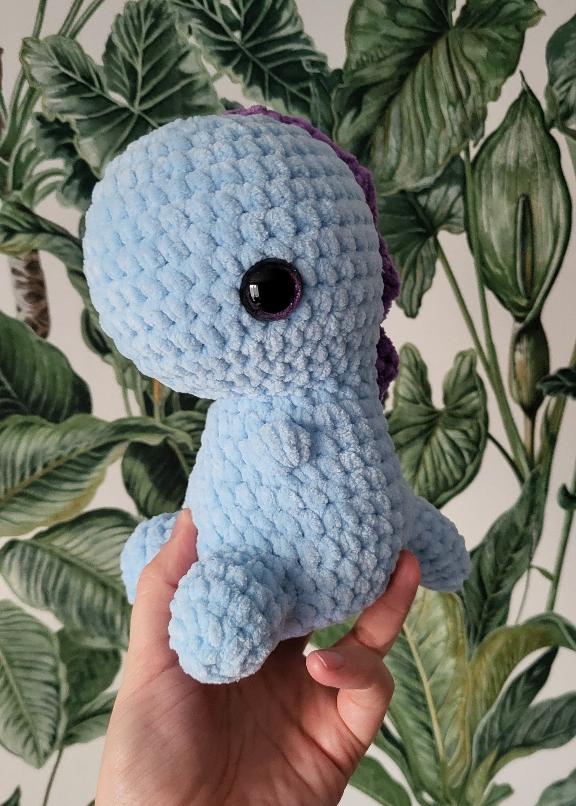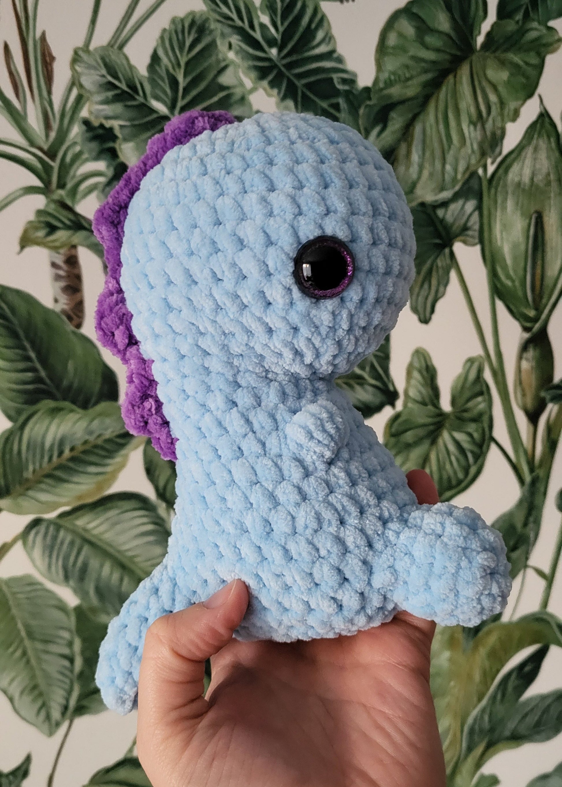 Poznaj wyjątkowego niebieskiego T-Rexa, który łączy w sobie urok dinozaurów z miękkością ręcznie wykonanego szydełkowego dzieła. Ten uroczy i przyjazny tyranozaur stanie się nieodłącznym towarzyszem zabaw oraz idealną ozdobą pokoju dla małych miłośników prehistorii. Stworzony z najwyższej jakości włóczki, nasz T-Rex jest zarówno bezpieczny, jak i przytulny. Ten zielony T-Rex to idealny prezent dla dzieci, które fascynują się dinozaurami, oraz dla kolekcjonerów unikalnych ręcznie robionych zabawek. Doskonale sprawdzi się jako wyjątkowa dekoracja w dziecięcym pokoju lub towarzysz przytulnych wieczorów.