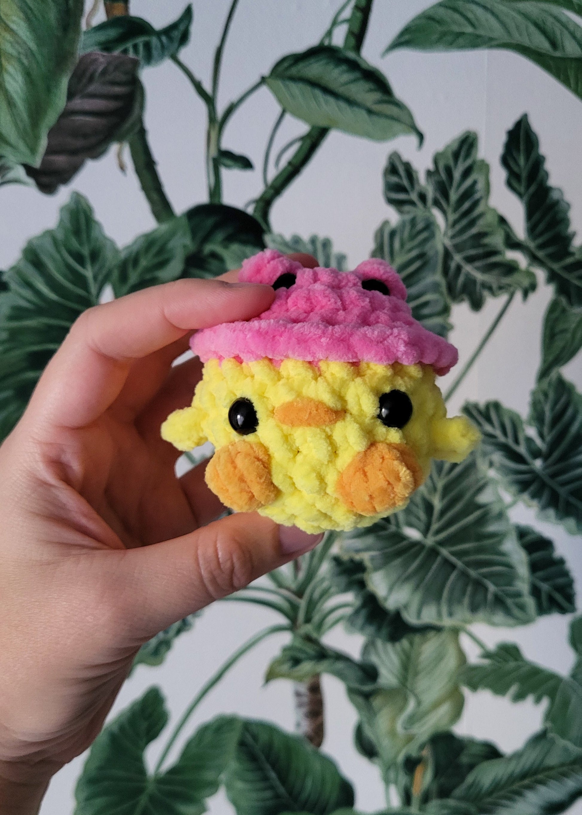 Urocza i pełna charakteru, ta miniaturowa szydełkowa kaczuszka w czapce to idealny dodatek do każdej kolekcji ręcznie robionych maskotek! Wykonana z miękkiej włóczki, ta kaczka jest idealnym prezentem dla miłośników rękodzieła. Każdy egzemplarz wykonywany jest ręcznie, co sprawia, że każda kaczuszka ma swój unikalny urok. Przytulna i zabawna, ta mini kaczuszka w czapce jest gotowa, by skraść Twoje serce!