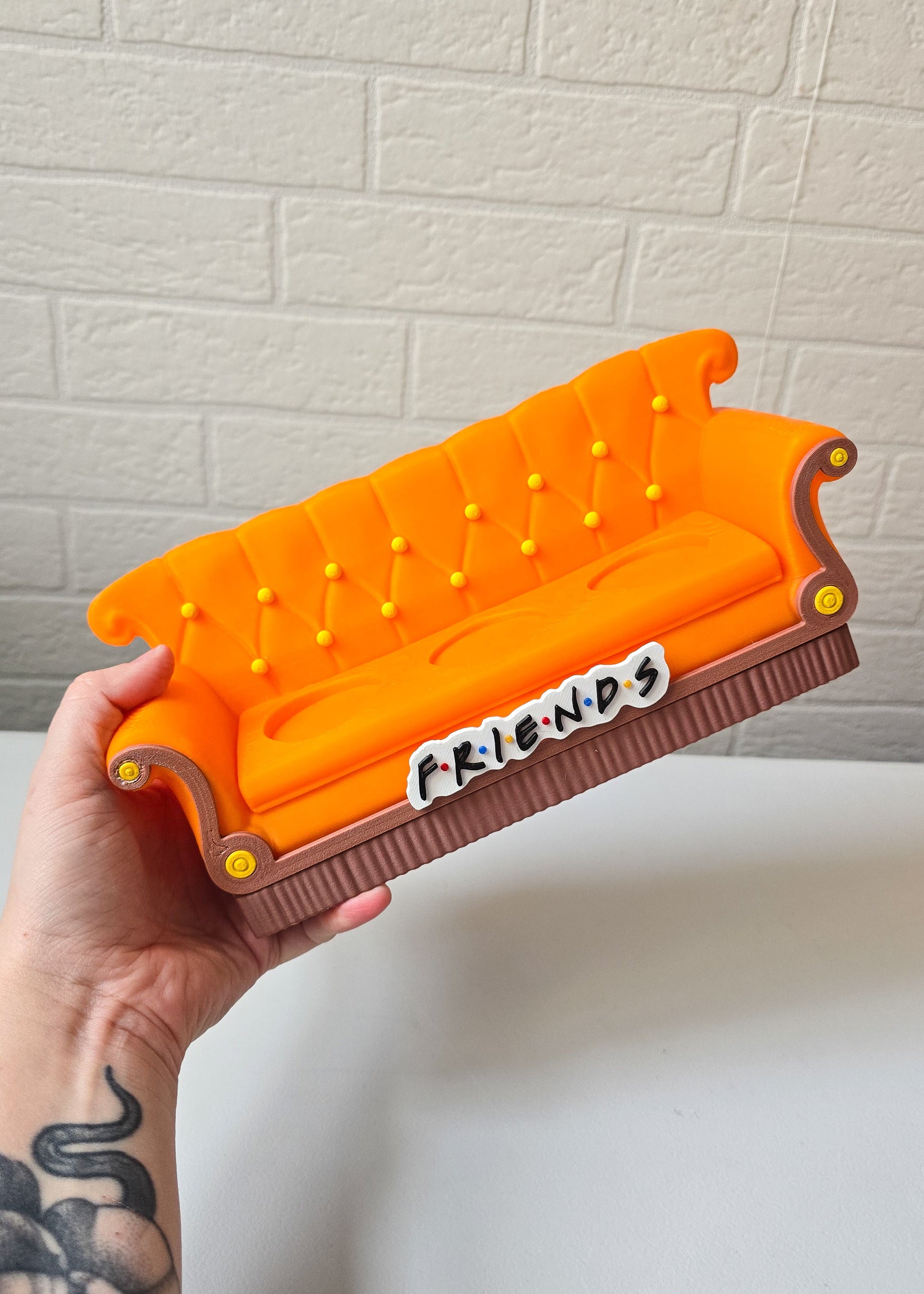 Ikoniczna kanapa znana z serialu „Przyjaciele”, wydrukowana w technologii 3D jako idealne uzupełnienie kolekcji figurek z McDonald’s. To świetny element ekspozycyjny dla fanów serialu oraz kolekcjonerów gadżetów popkulturowych.