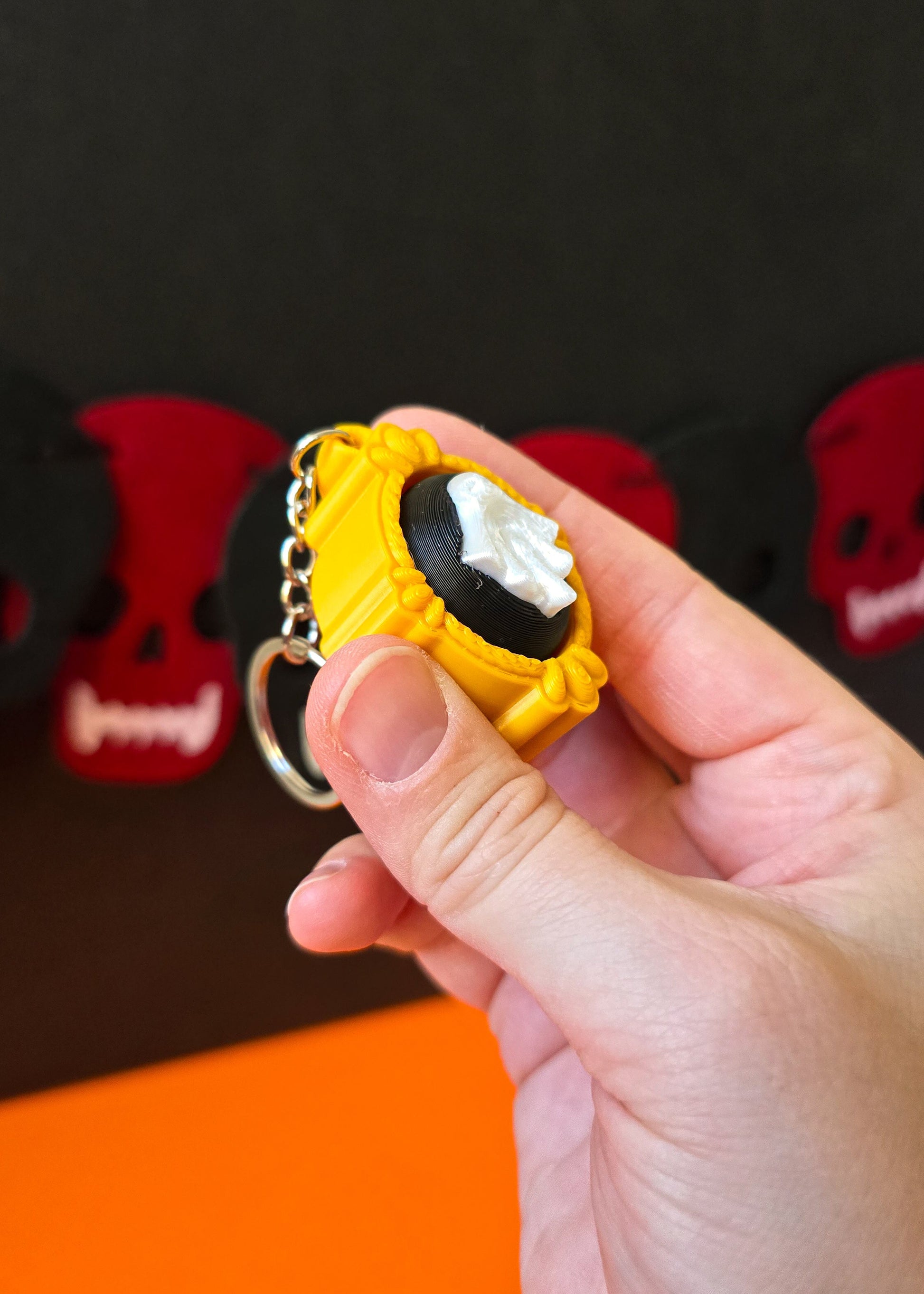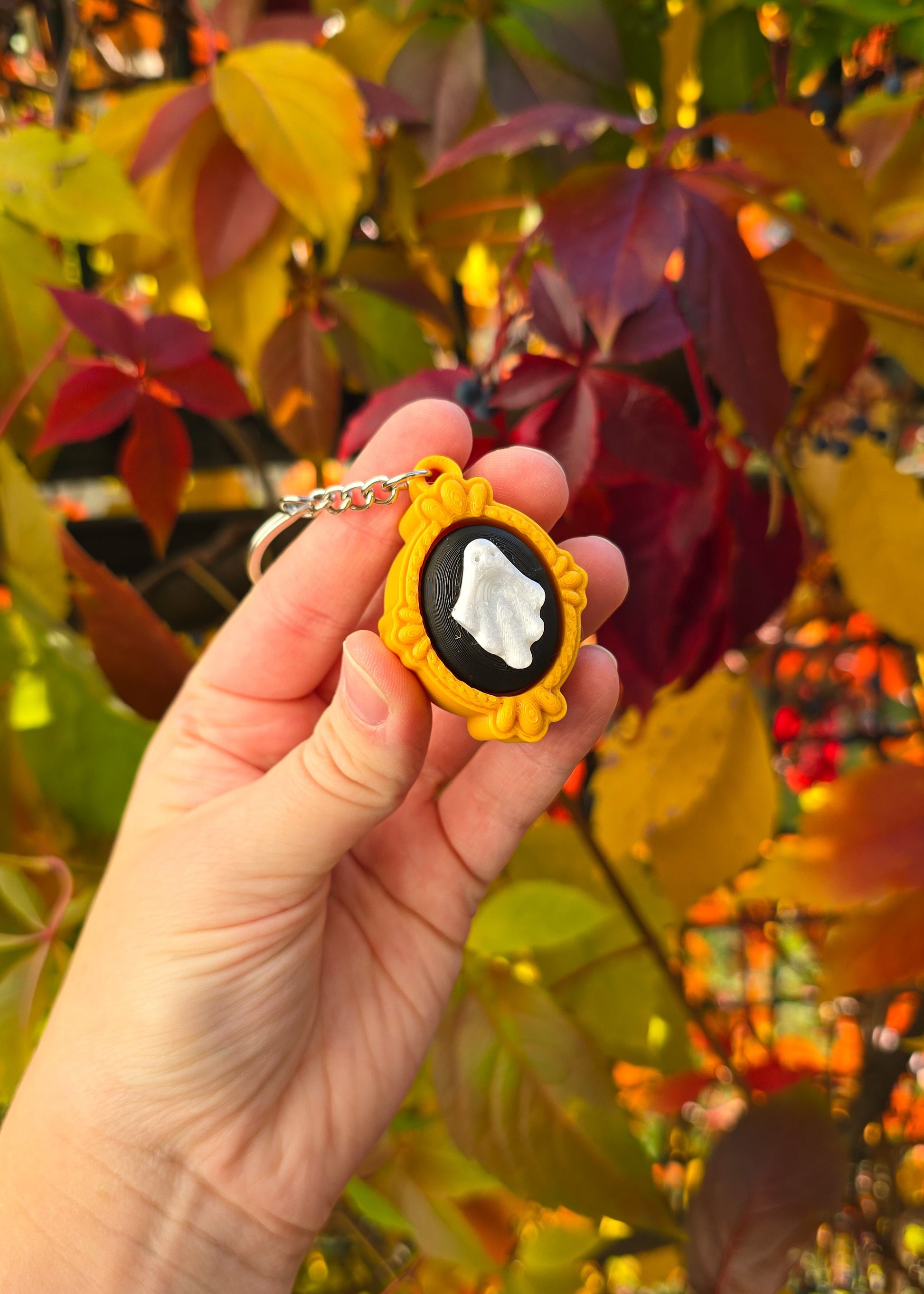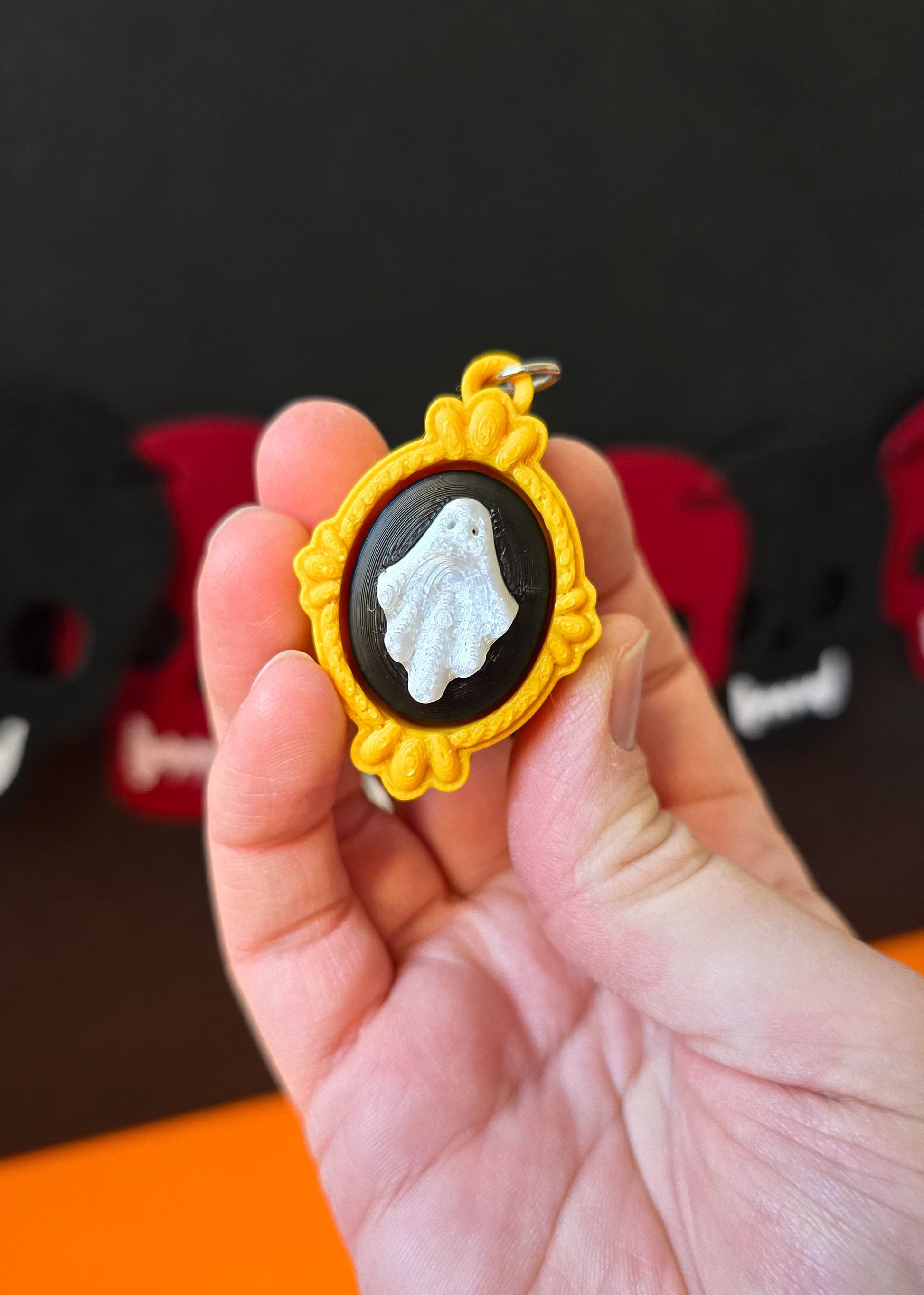 Uroczy brelok kliker w klimacie Halloween, stworzony w technologii druku 3D! 👻🎃 W formie ozdobnej ramki obrazu z duchem, zachwyca szczegółami i oryginalnym wyglądem. Idealny jako halloweenowy dodatek do kluczy, plecaka lub torebki. Dodaj odrobinę tajemniczego uroku i zabawy do swojego codziennego stylu z tym wyjątkowym brelokiem 3D! 🖤🕯️
