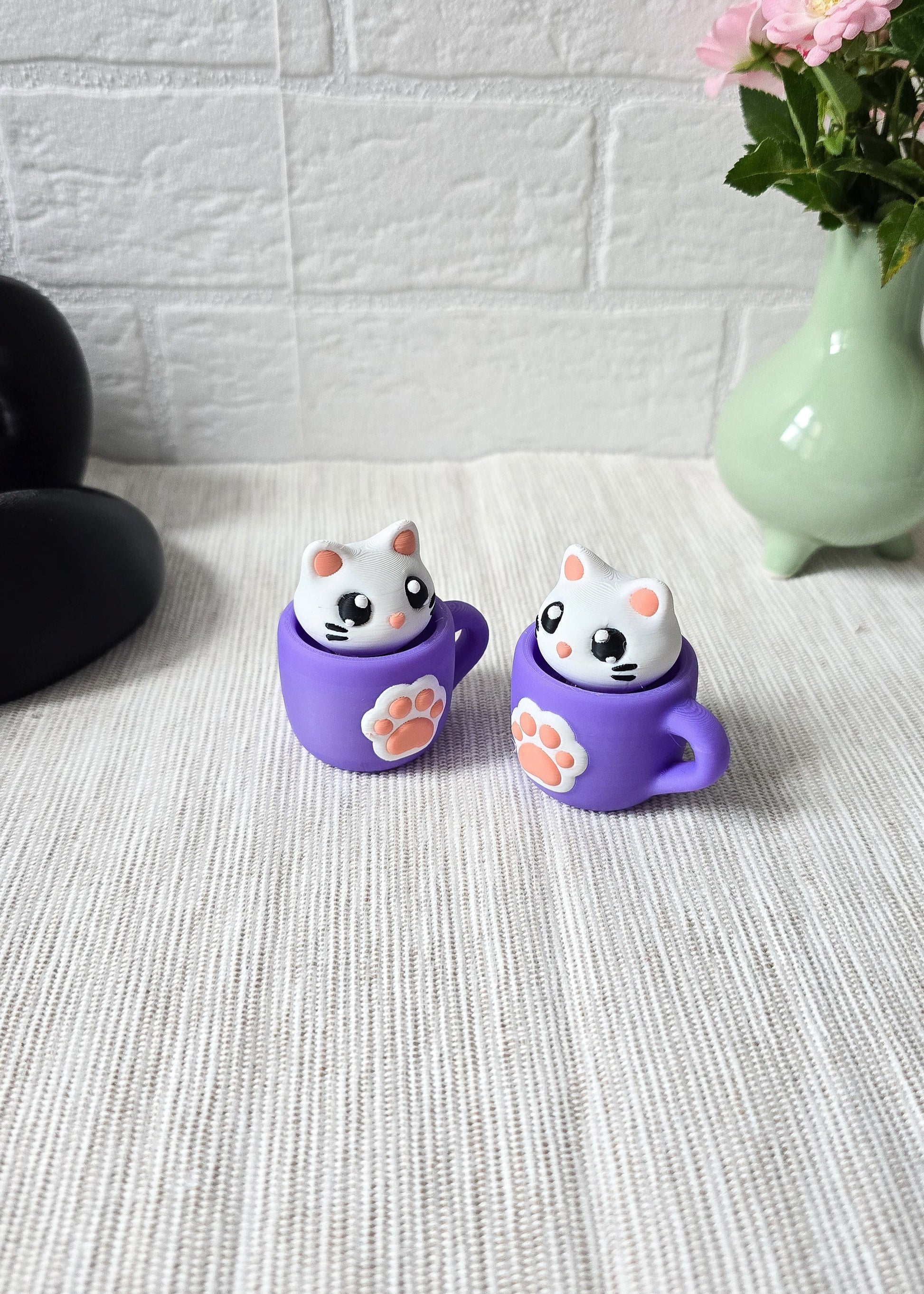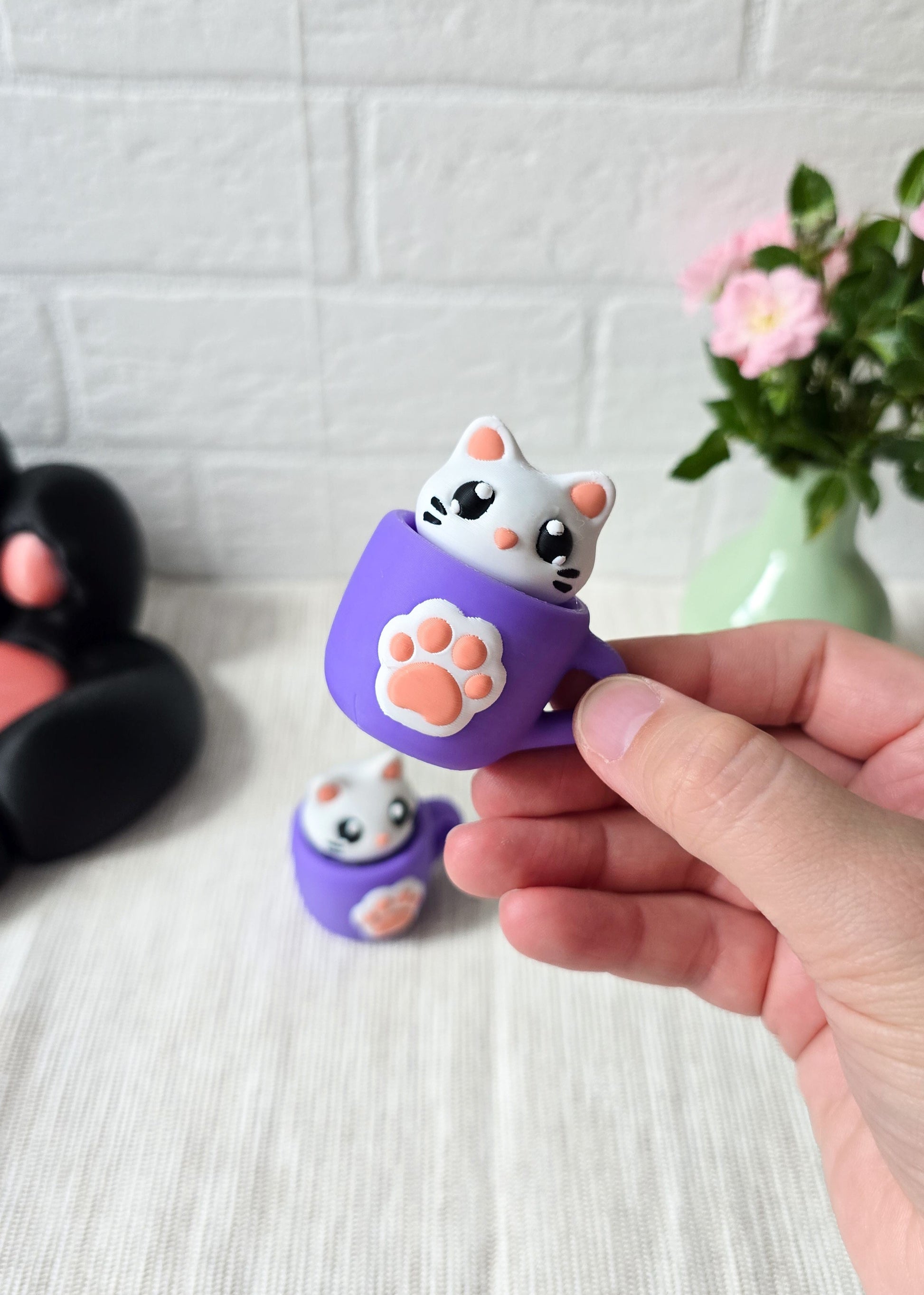 Uroczy kliker antystresowy w kształcie filiżanki z wystającą główką kotka to gadżet, który od razu wywołuje uśmiech! Drukowany w technologii 3D, zachwyca starannym wykonaniem i słodkim detalem – kotek wygląda tak, jakby zaglądał z ciekawością z wnętrza kubeczka. Kliker kocia filiżanka to połączenie relaksującej funkcji antystresowej z wyjątkowym designem. Jest lekki, wygodny w użyciu i idealny do codziennego użytku – w pracy, w szkole czy w podróży.