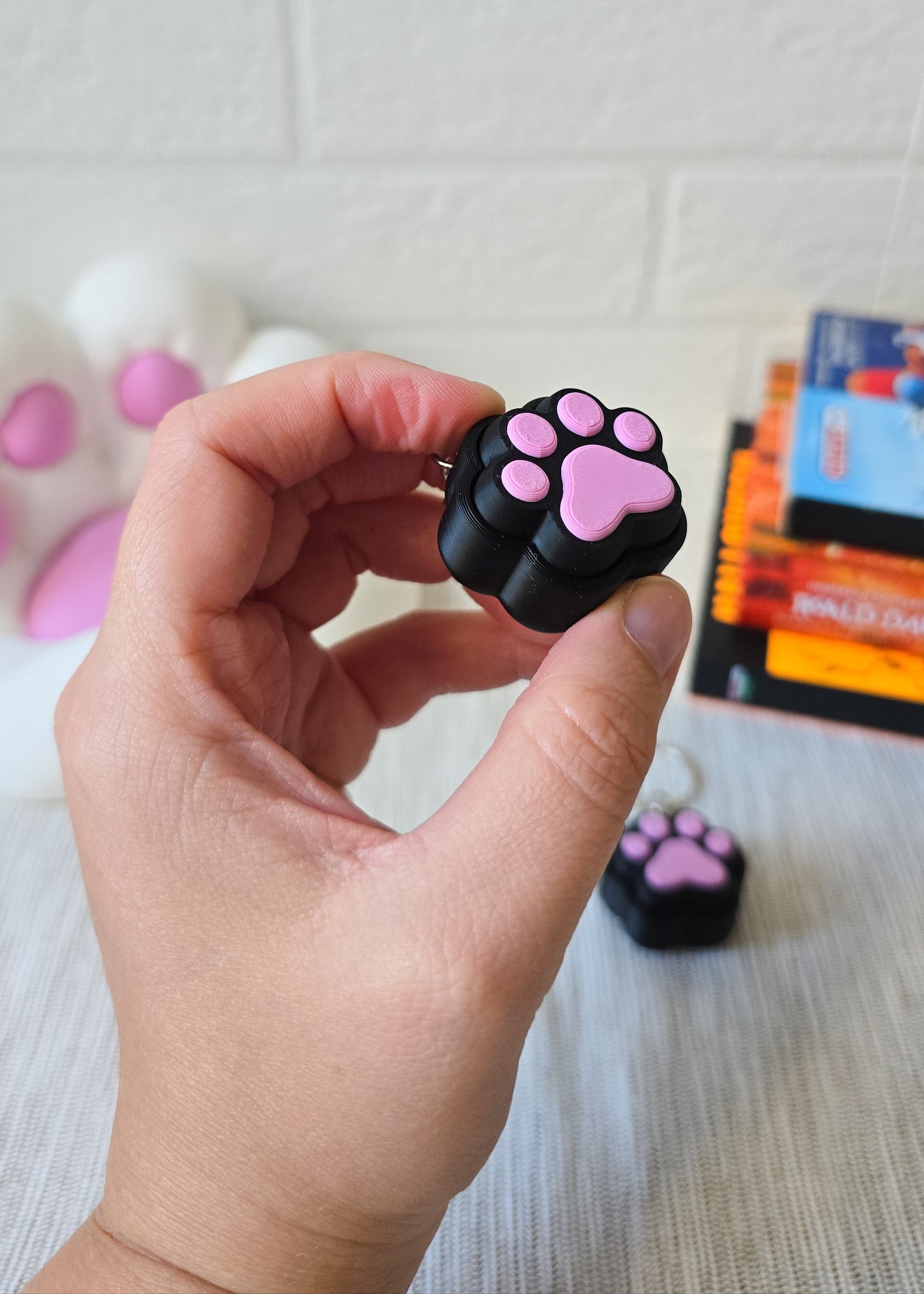 Uroczy kliker antystresowy w kształcie kociej łapki to idealny gadżet dla miłośników kotów! Wykonany w technologii druku 3D, zachwyca subtelnymi detalami, które przypominają prawdziwe kocie poduszeczki. Kliker jest poręczny, lekki i przyjemny w dotyku – świetnie sprawdza się jako zabawka antystresowa, pomaga skupić uwagę i zająć dłonie w chwilach napięcia. Dzięki starannemu wykonaniu i trwałym materiałom możesz cieszyć się nim na co dzień, w pracy, w domu czy w podróży.