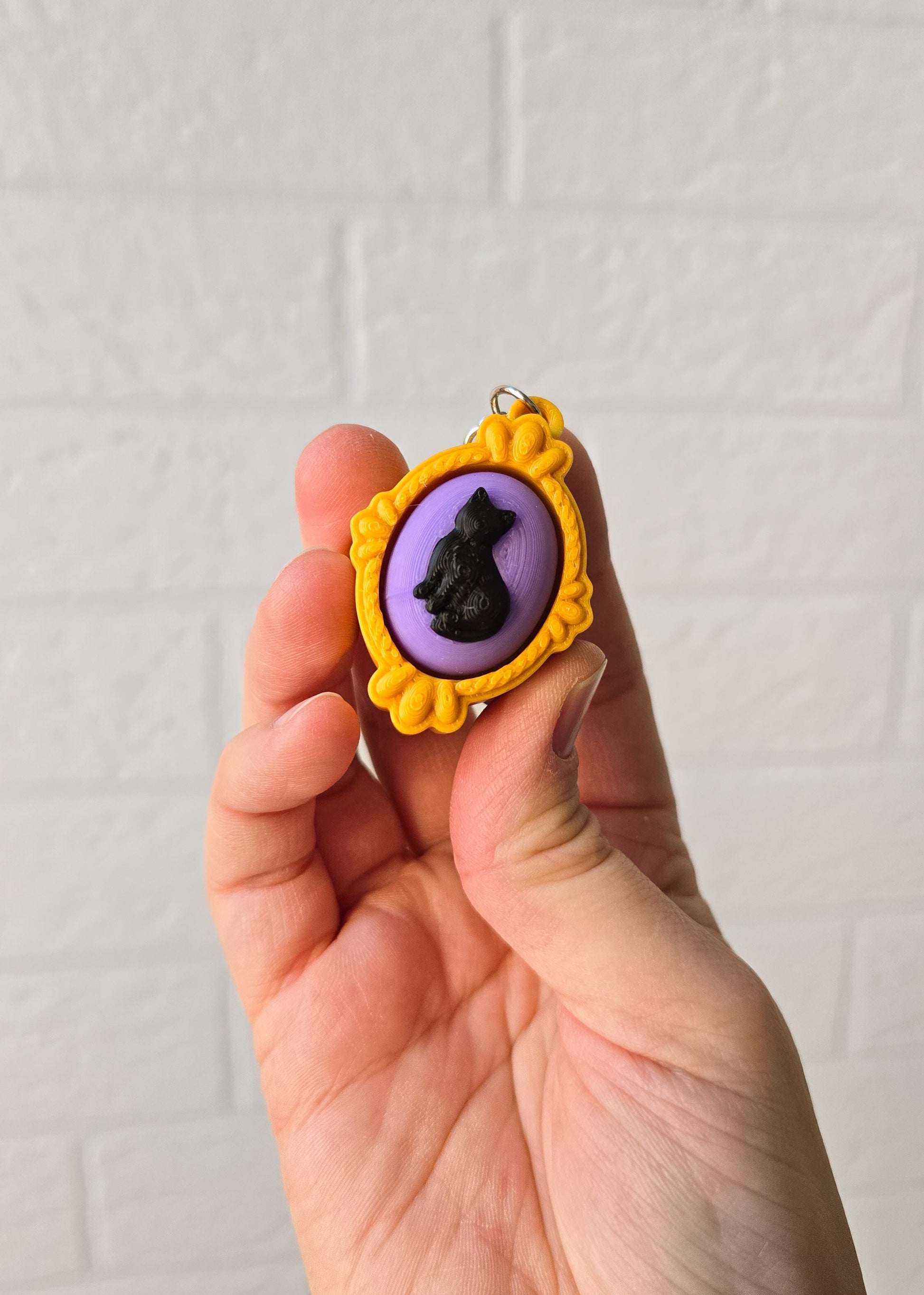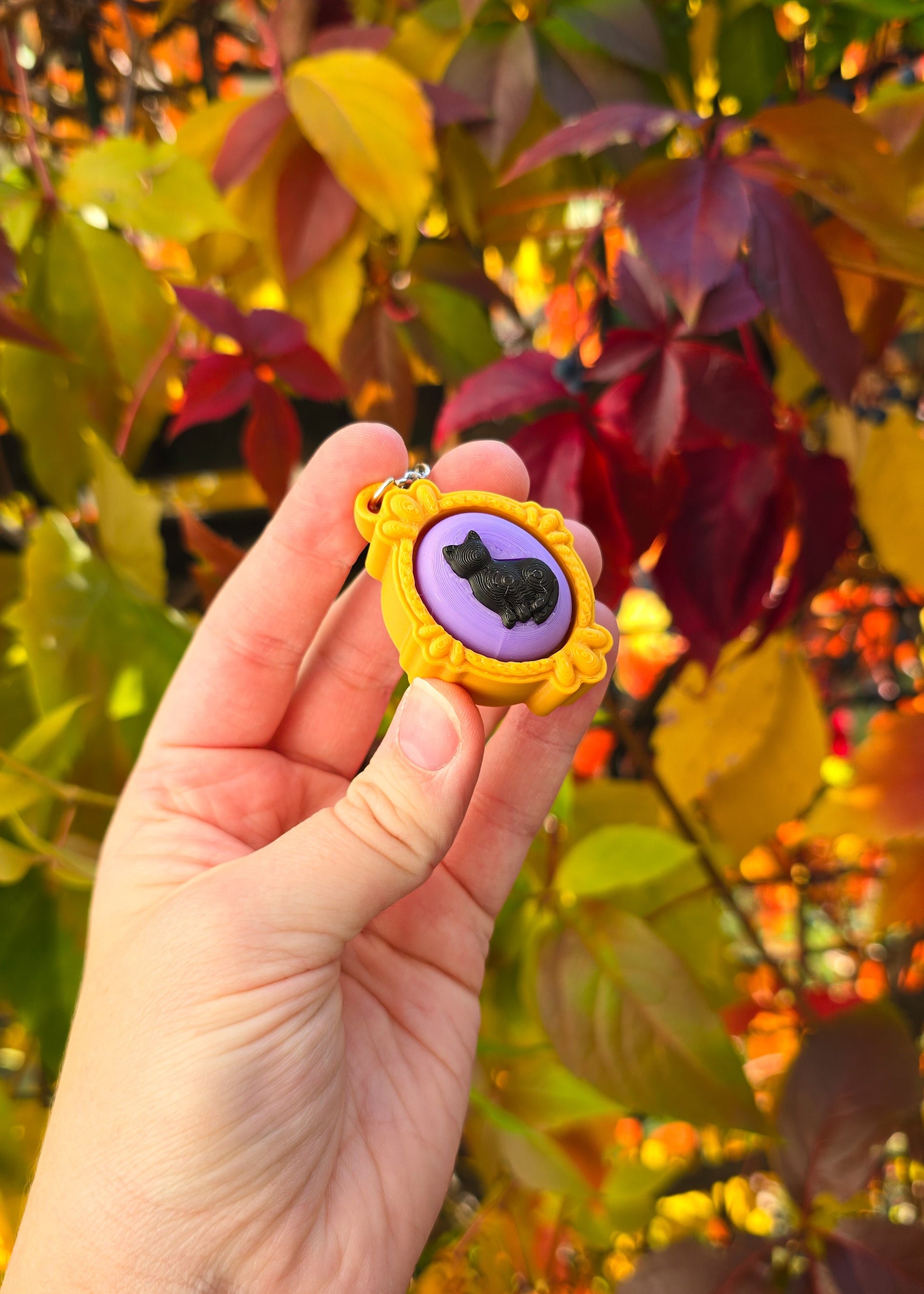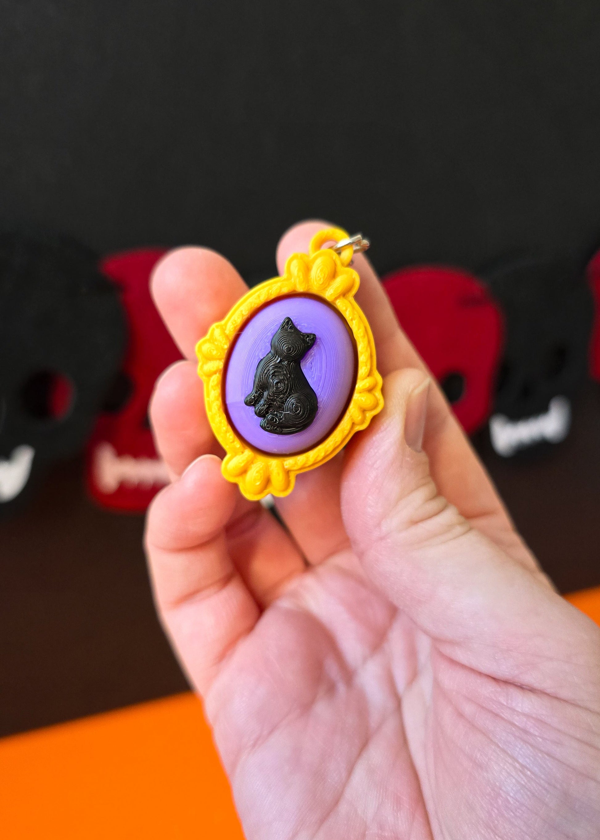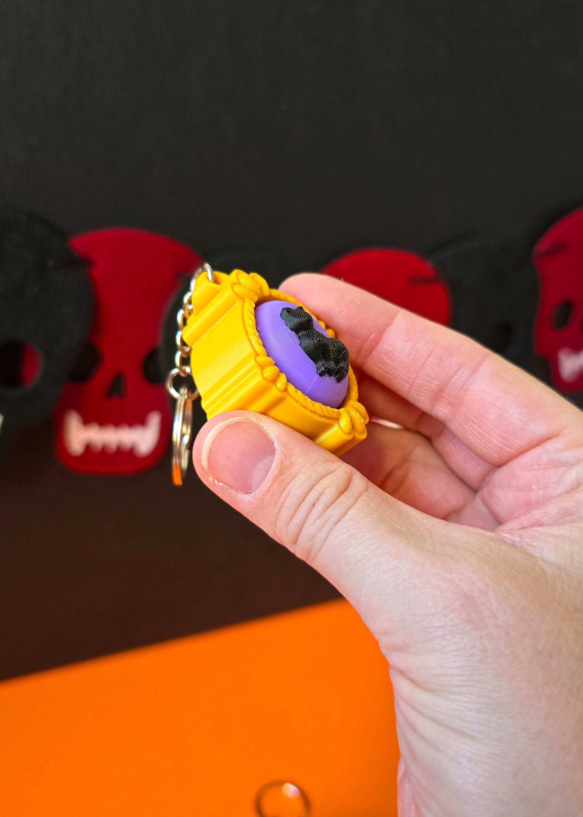 Uroczy brelok kliker w klimacie Halloween, wykonany w technologii druku 3D! 🐈⬛🎃 W formie ozdobnej ramki obrazu z kotem, zachwyca detalami i klimatycznym designem. Idealny jako dodatek do kluczy, plecaka lub torebki — szczególnie dla miłośników kotów i magii! Dodaj odrobinę tajemniczego uroku do swojego codziennego stylu z tym wyjątkowym brelokiem 3D! 🖤🌙