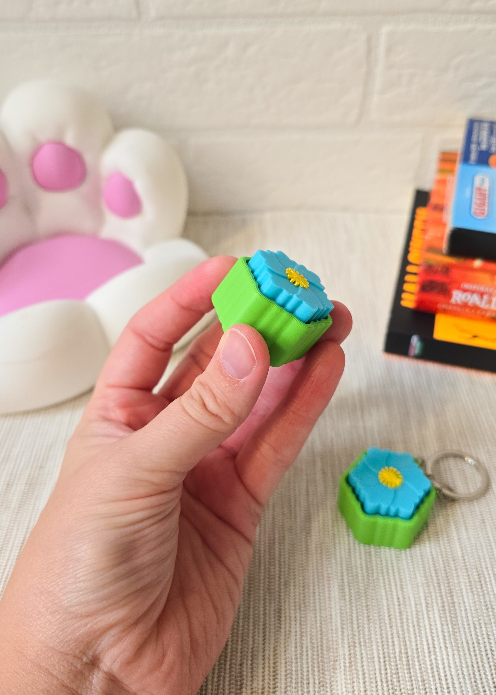 Delikatny i pełen uroku kliker antystresowy w kształcie kwiatka to idealny gadżet, który łączy funkcjonalność z pięknym designem inspirowanym naturą. Wydrukowany w technologii 3D zachwyca starannie odwzorowanymi płatkami i lekką formą, która świetnie leży w dłoni. Kliker kwiatek to nie tylko praktyczna zabawka antystresowa – to również mała ozdoba, która wniesie odrobinę koloru i radości do codziennych chwil. Doskonały do pracy, szkoły czy w podróży – zawsze pod ręką, gdy potrzebujesz chwili relaksu.