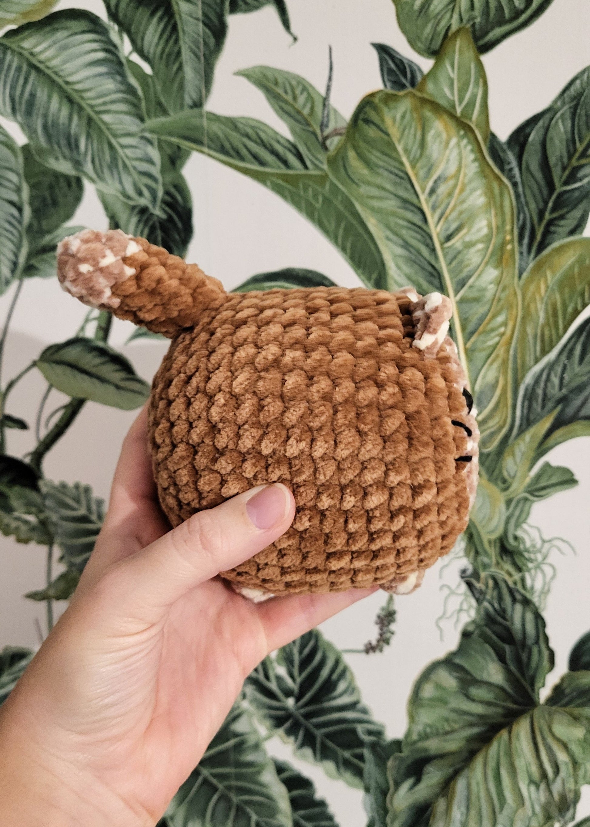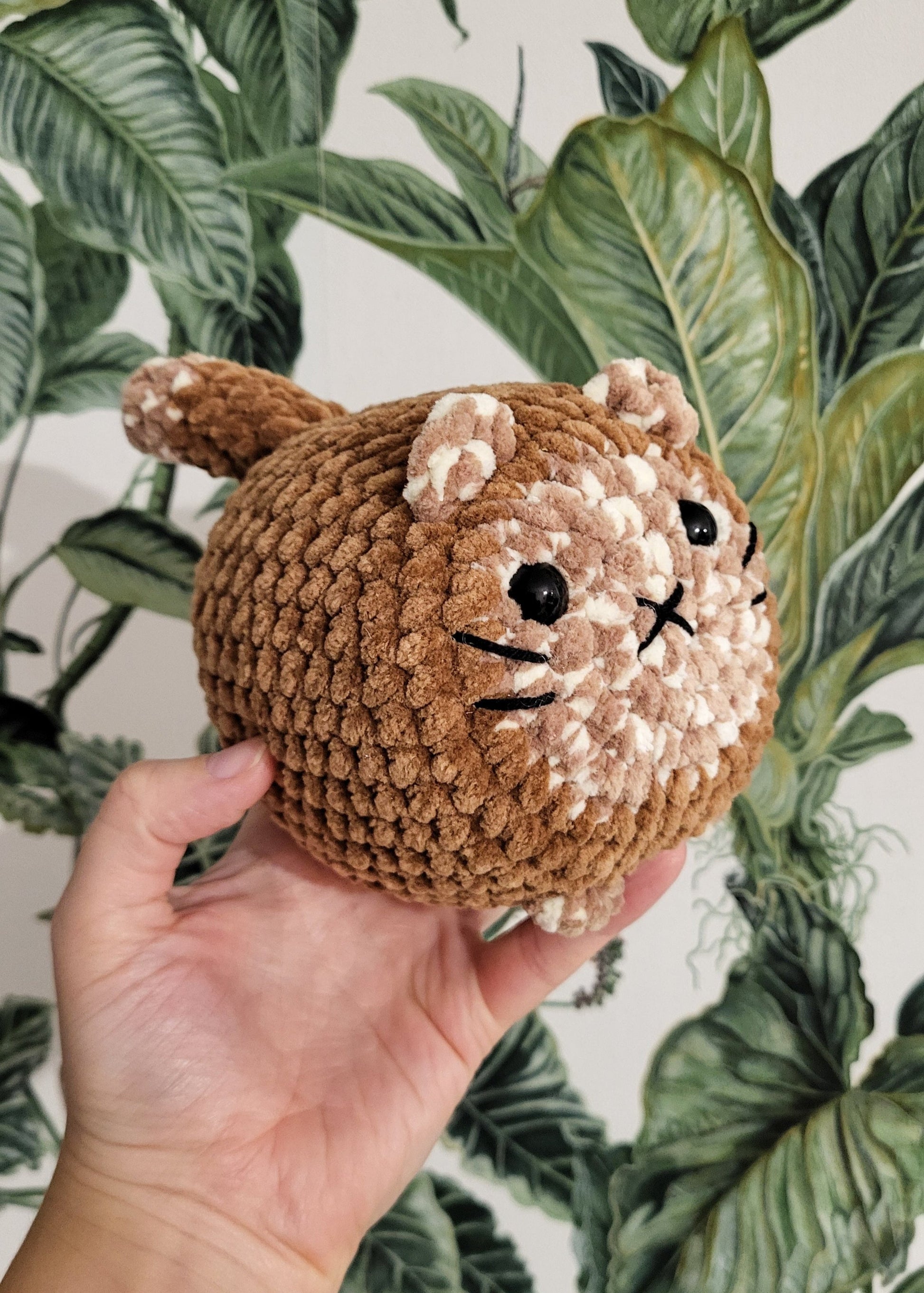 Przedstawiamy wyjątkowego szydełkowego kotka o krótkich nóżkach, który swoim uroczym wyglądem przypomina... bochenek chleba! Ta zabawna przytulanka z pewnością wywoła uśmiech na twarzy każdego, kto ją zobaczy. Kompaktowy, owalny tułów z krótkimi, uroczo odstającymi nóżkami jest w sam raz do przytulania. Zaproś tego uroczego kotka-bochenka do swojego domu i ciesz się jego niepowtarzalnym urokiem każdego dnia!