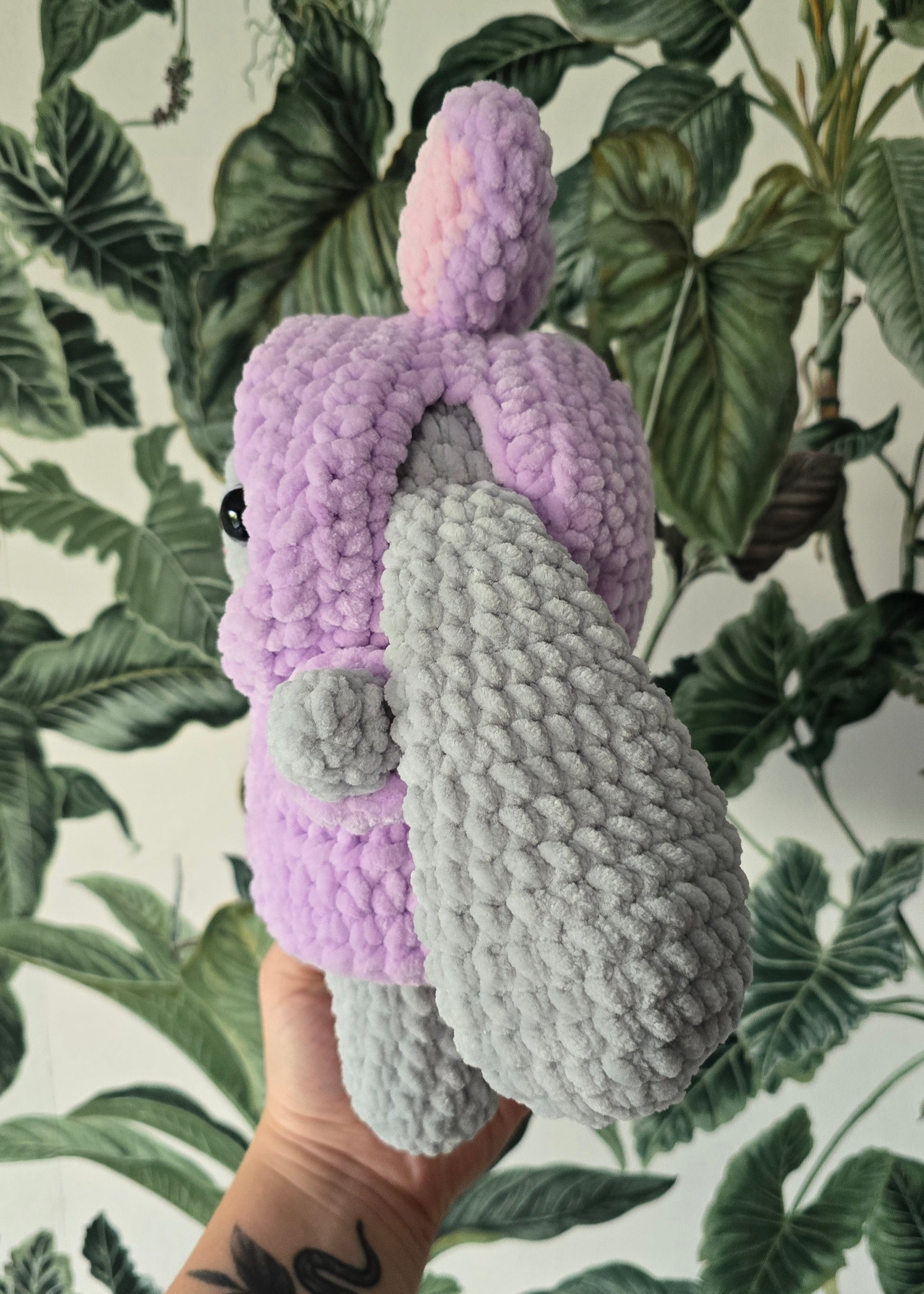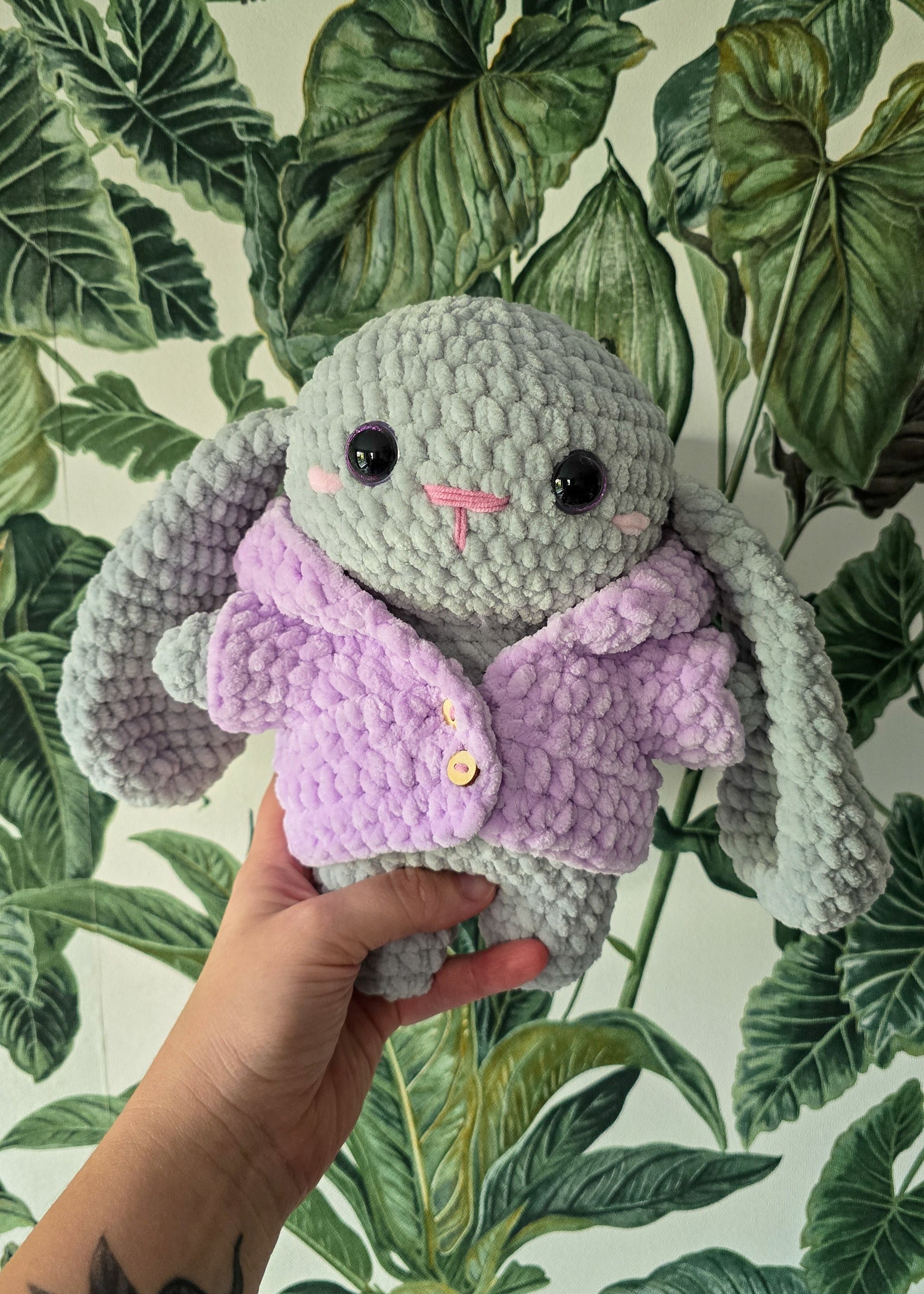 Poznaj naszego uroczego królika, który zachwyca nie tylko swoim rozmiarem, ale także niezwykłą dbałością o detale! Ręcznie wykonany na szydełku z miękkiej, przyjemnej w dotyku włóczki, królik nosi stylowy sweterek zapinany na guziczki, który można zdejmować. Jego ogromne, opadające uszy dodają mu wyjątkowego uroku i czynią go idealnym towarzyszem zarówno dla dzieci, jak i dorosłych. Dlaczego warto? Ten królik to nie tylko zabawka – to mały przyjaciel na lata. Świetnie sprawdzi się jako prezent na urodziny, baby shower, chrzest lub dekoracja do dziecięcego pokoju.
