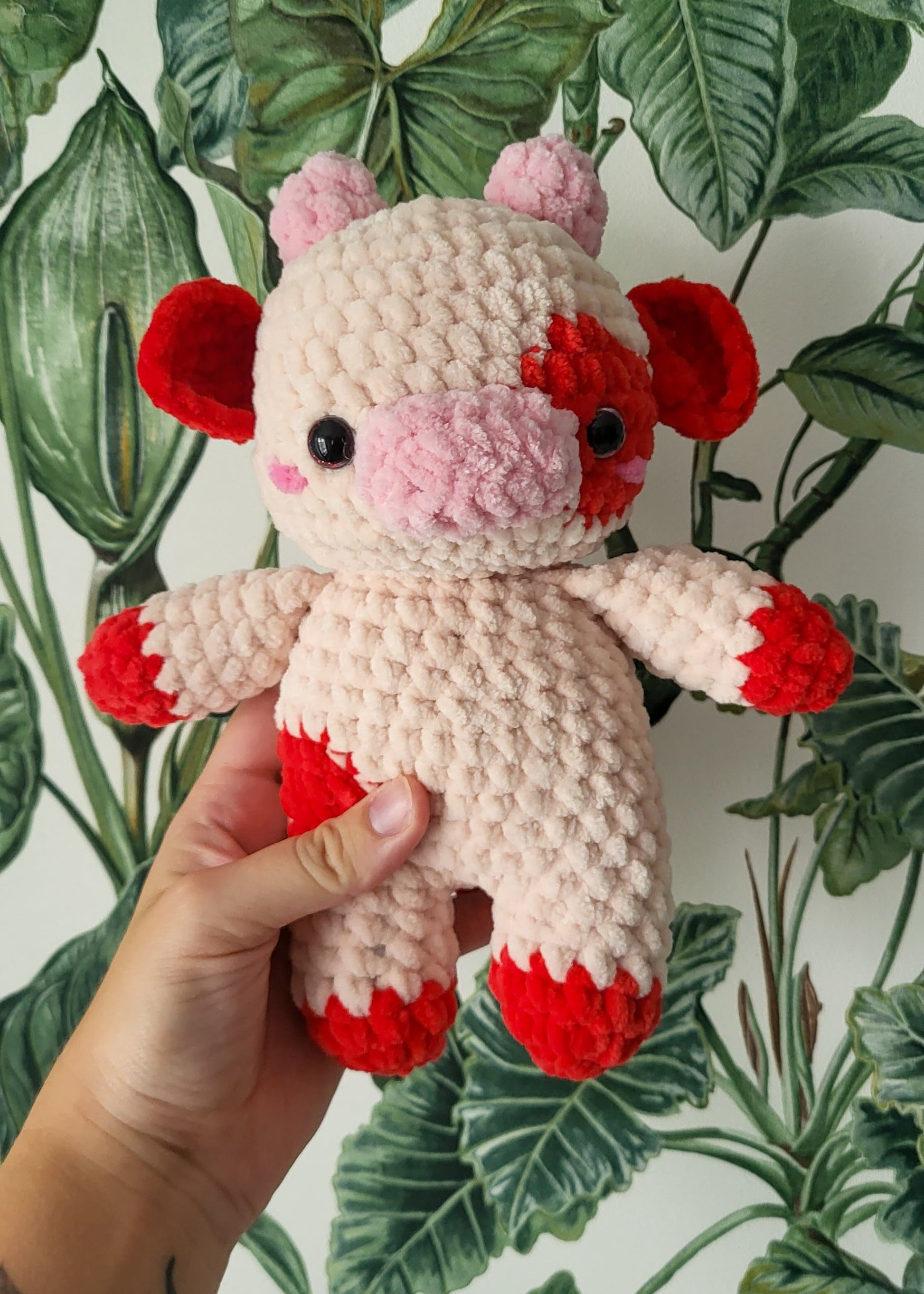 Przedstawiamy uroczą, ręcznie robioną na szydełku krówkę, która rozkocha w sobie każdego! Ta słodka maskotka została stworzona z niezwykłą starannością – jej miękka, przyjazna dla skóry włóczka, delikatne łatki, malutki ogonek i uroczy pyszczek sprawiają, że jest idealnym towarzyszem zabaw i przytulania. Krówka doskonale nadaje się dla dzieci, a także jako ozdoba pokoju lub wyjątkowy prezent dla miłośników rękodzieła. Dzięki starannemu wykonaniu, ta szydełkowa krówka jest trwała i pełna ciepła, przynosząc radość każdemu, kto ją przytuli!