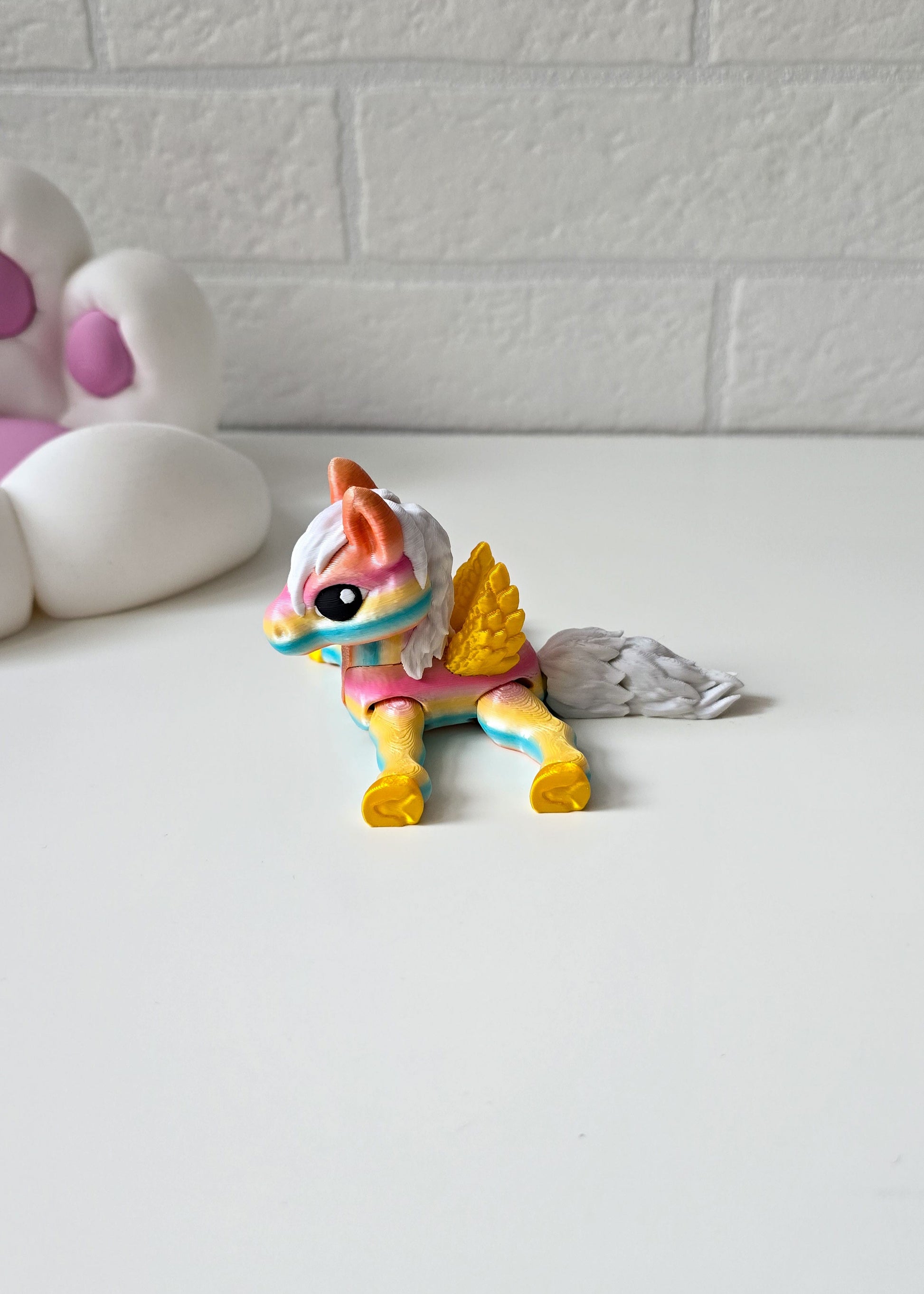 Poznaj Złotoskrzydłego Pegaza – majestatyczne, skrzydlate stworzenie z naszej kolekcji Magicznych Koników, które wygląda jak z najpiękniejszej baśni! Jego lśniące, złote skrzydła mienią się w świetle, dodając mu królewskiego blasku, a lekka, ruchoma konstrukcja sprawia, że niemal czuć, jak unosi się w powietrzu. Wydrukowany w technologii 3D z niezwykłą precyzją, pegaz porusza się w dłoni, jakby naprawdę był gotów wzbić się w przestworza. To idealny towarzysz dla wszystkich, którzy kochają magię, piękno i odrobinę nieba na co dzień.