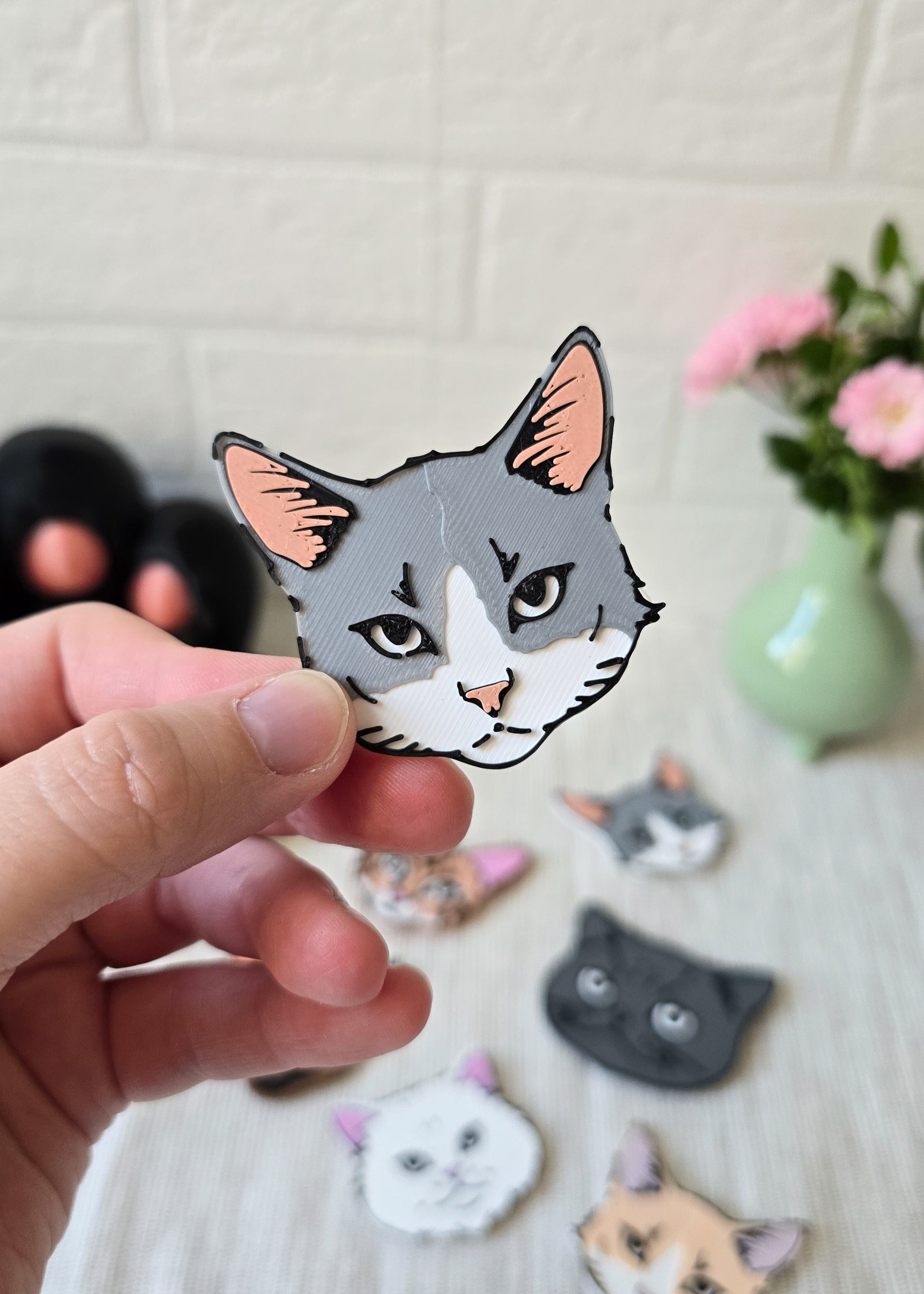 Uroczy magnes drukowany w 3D w kształcie kociej główki to mały, ale niezwykle efektowny gadżet, który zachwyca detalami. Starannie odwzorowane rysy kotka – uszka, oczy i pyszczek – nadają magnesowi wyjątkowego charakteru i sprawiają, że od razu przyciąga wzrok. Magnes kocia główka jest trwały, lekki i idealny do dekorowania lodówki, tablic magnetycznych lub biura. To też świetny pomysł na drobny prezent dla miłośników kotów i wszystkich, którzy cenią unikalne, ręcznie wykonane gadżety.