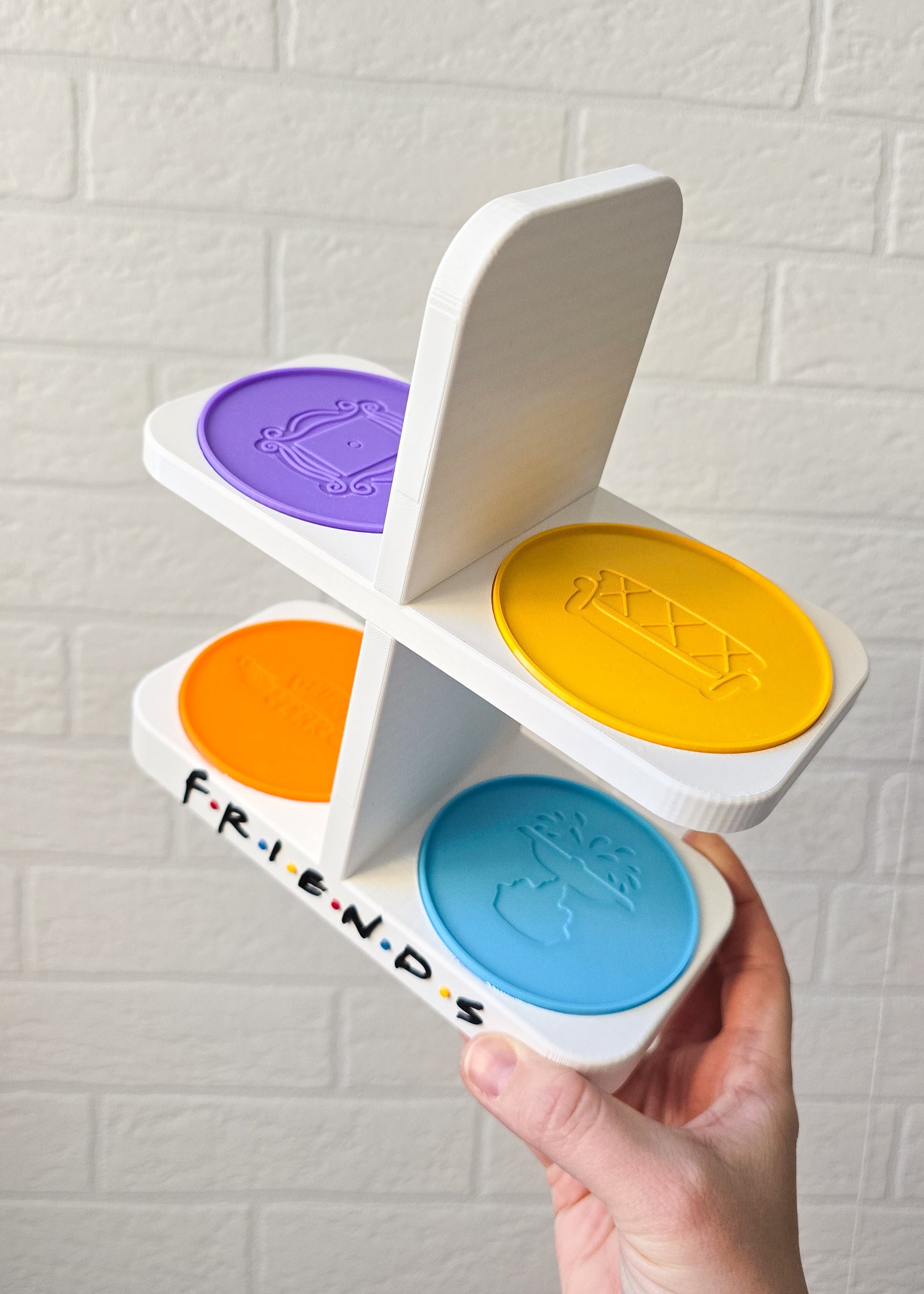 Stojak na kubki z kolekcji inspirowanej serialem Friends McDonald's wykonany w technologii druku 3D to praktyczny i estetyczny organizer dla fanów serii. Zapewnia stabilność oraz trwałość przy codziennym użytkowaniu.