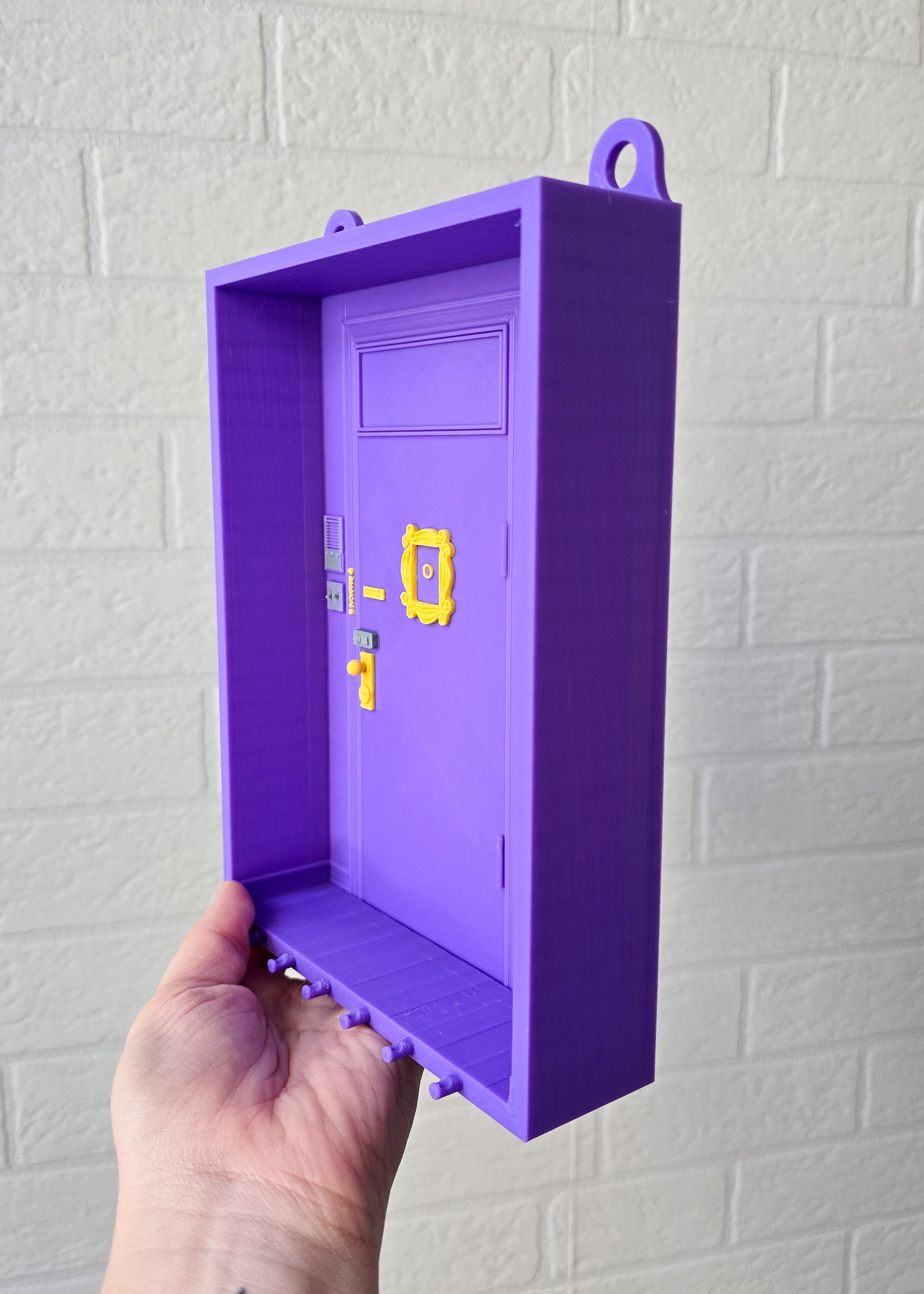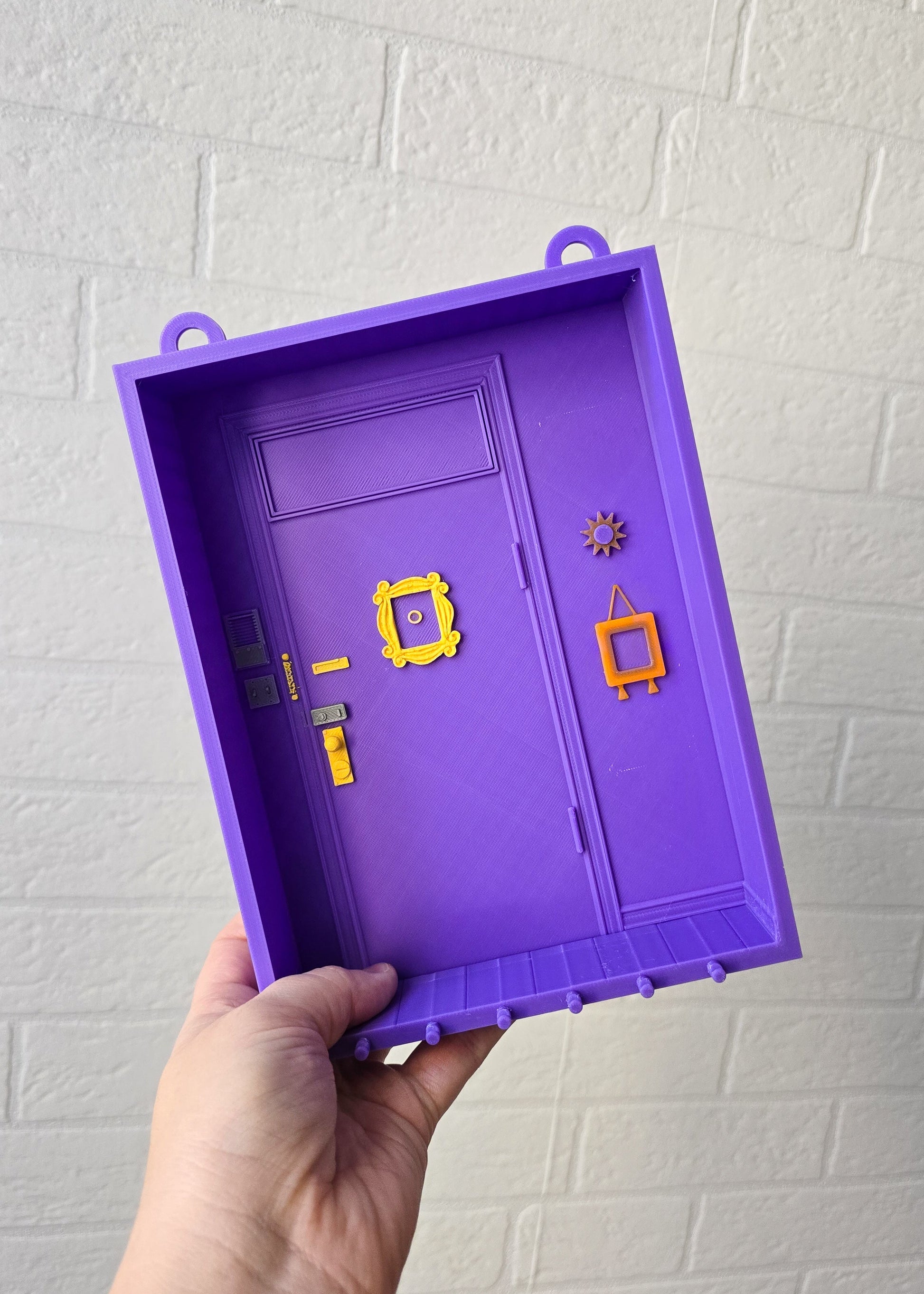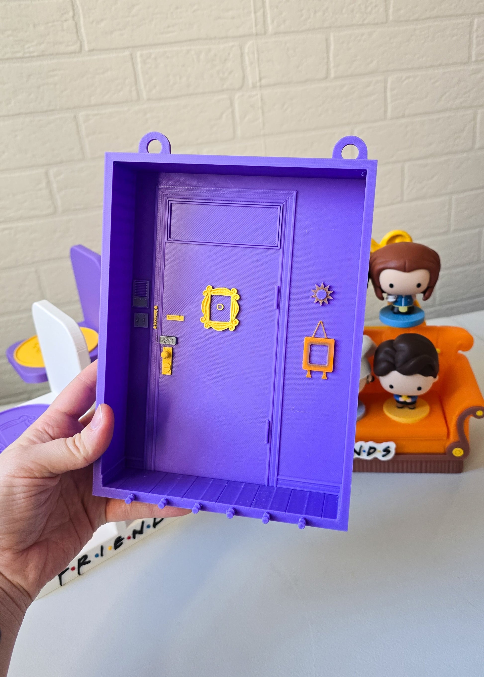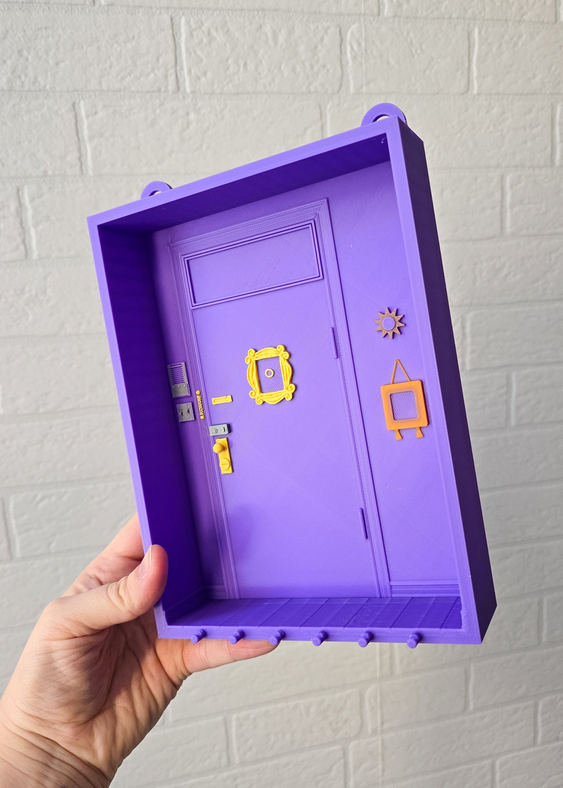 Stylowa ramka do powieszenia na ścianie drukowana w technologii 3D, inspirowana kultowymi Przyjaciółmi i legendarnymi drzwiami Moniki. Jeśli pamiętasz fioletowe drzwi z charakterystyczną ramką na wizjerze – dokładnie ten klimat!