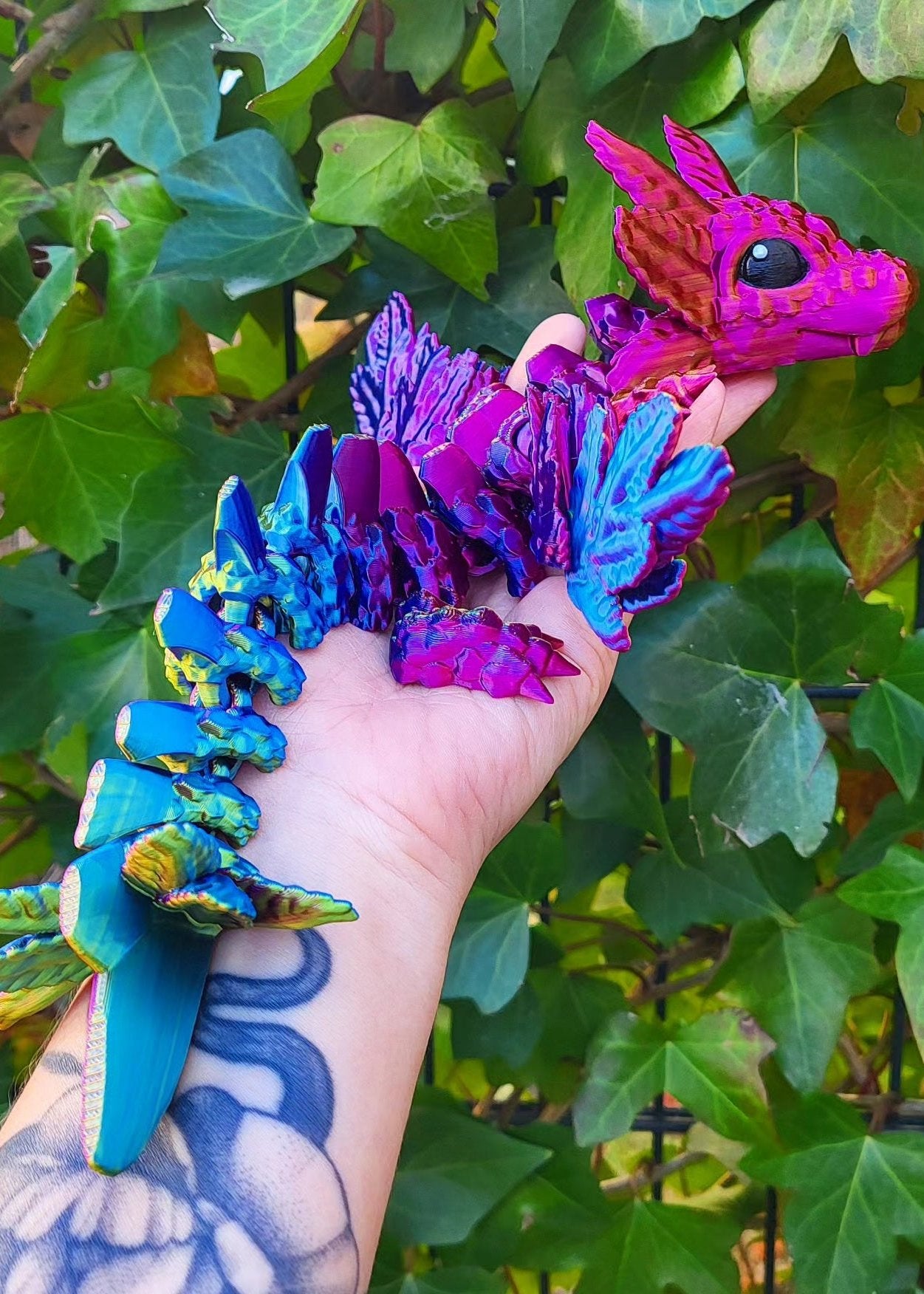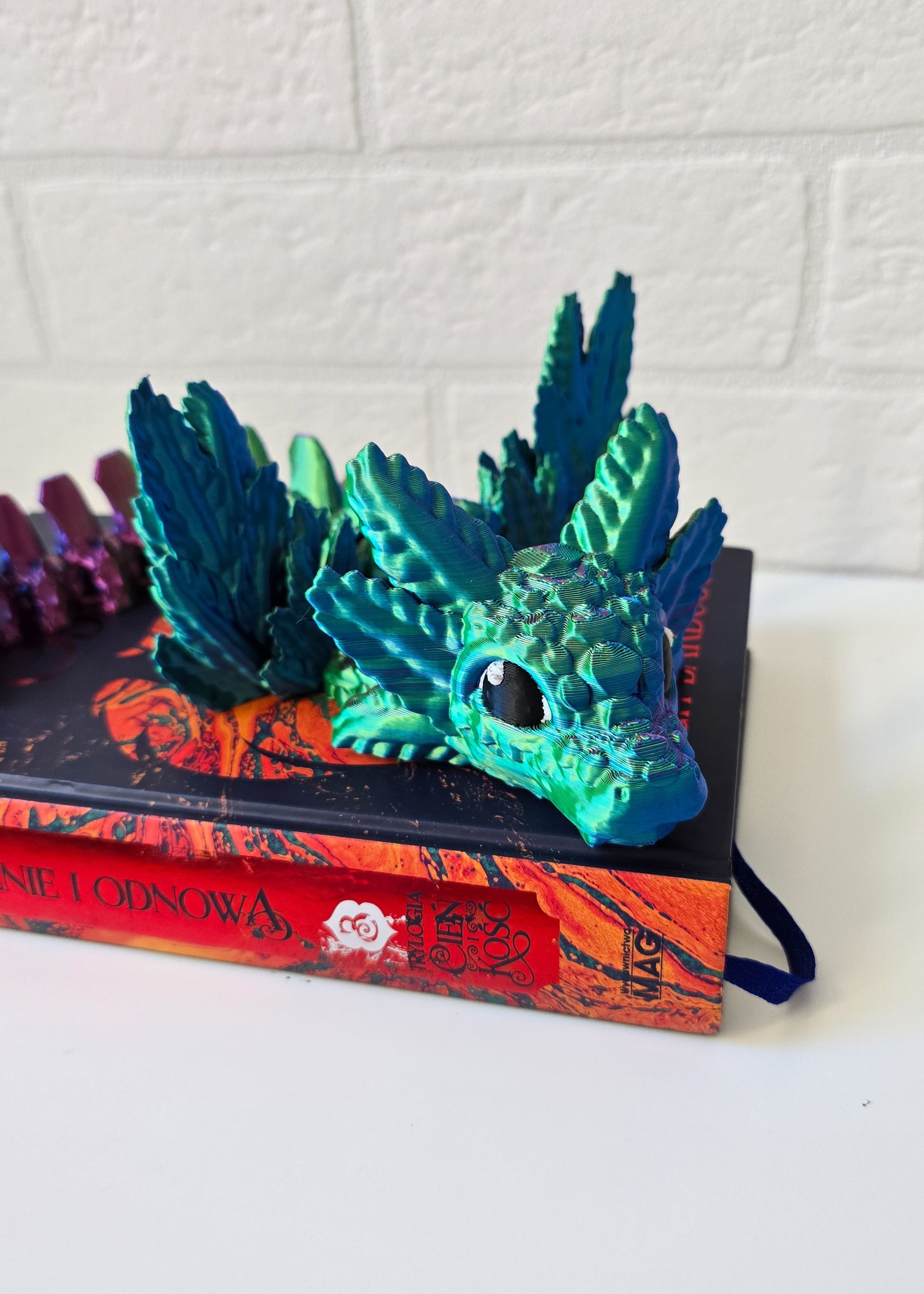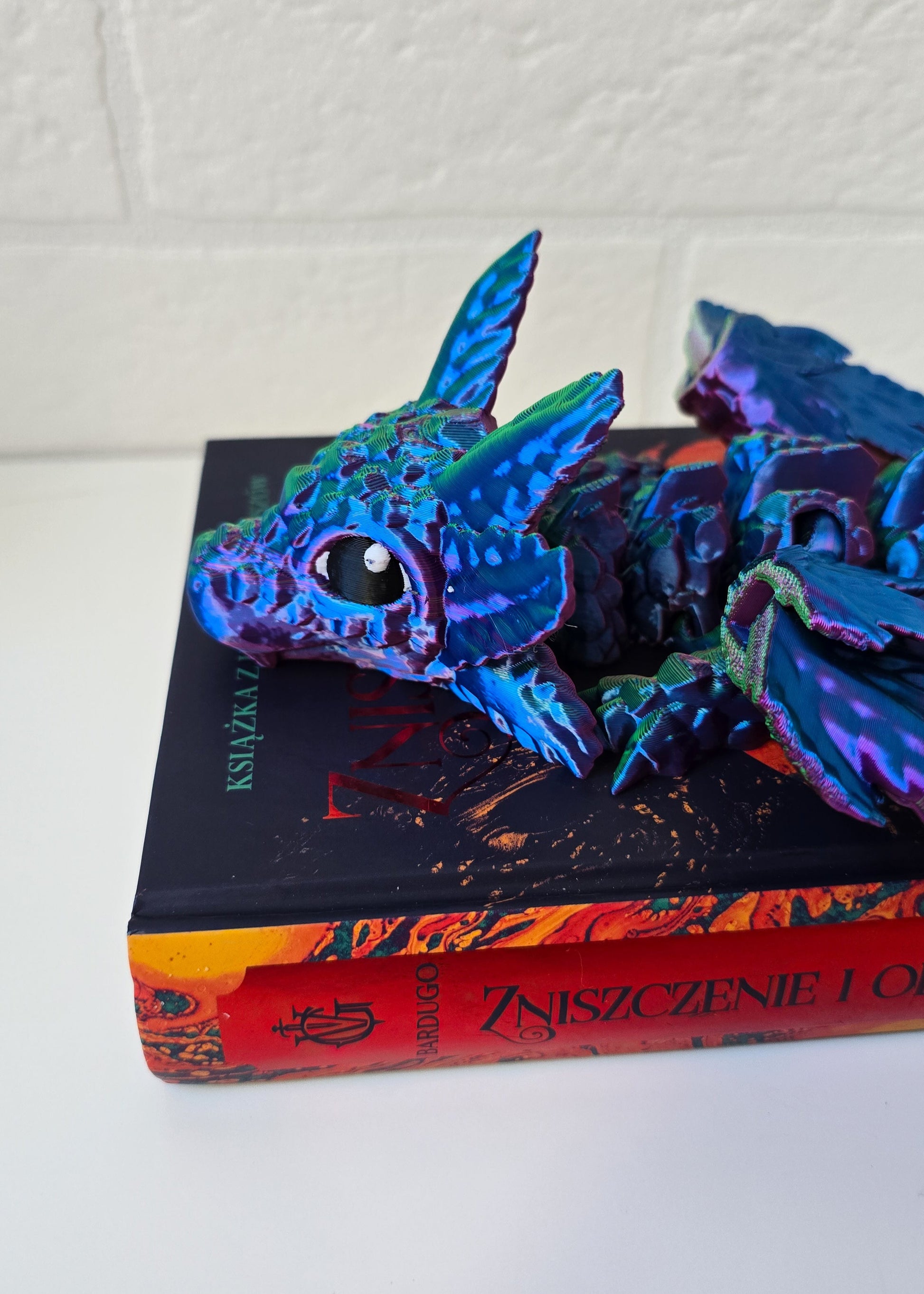 Odkryj mistyczną figurkę 3D smoka z pięknymi rozkładanymi skrzydłami, która ma w sobie ogromną siłę! Smok mieni się mnóstwem kolorów od złota, poprzez róż aż po zieleń i fiolet. Dzięki precyzyjnej technologii druku 3D każda część figurki została starannie odwzorowana. Idealna jako ozdoba lub niepowtarzalny prezent dla miłośników smoków.