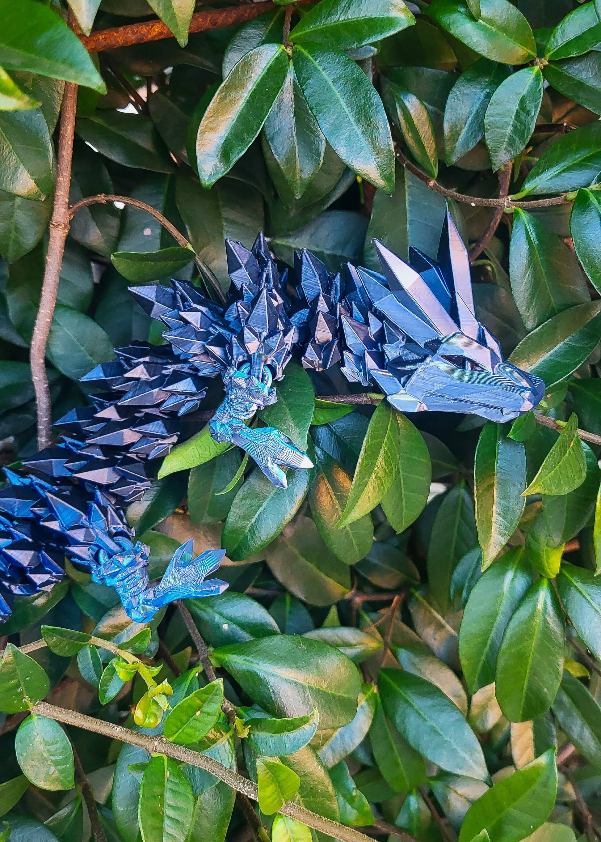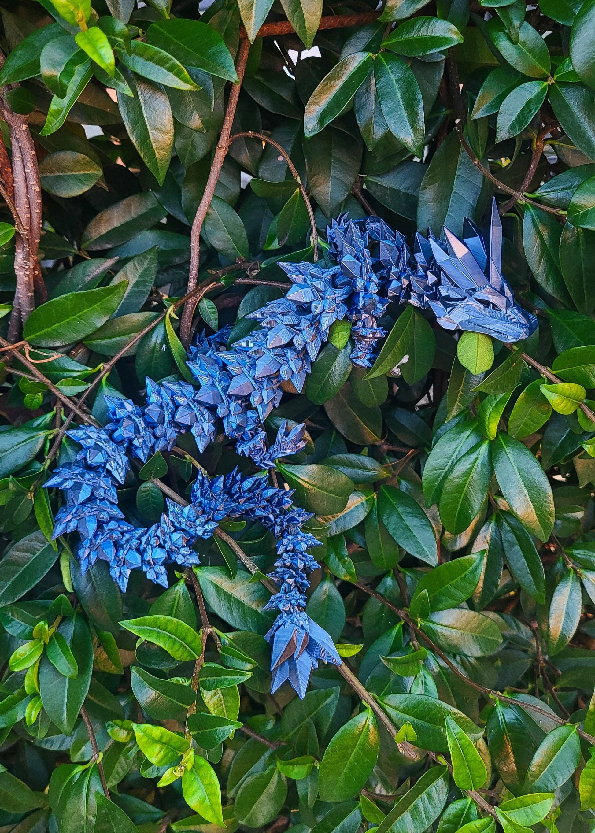 Przedstawiamy niezwykłego, kryształowego smoka wydrukowanego w 3D ciemnego granatu i czerni. Smok wygląda jak stworzony z kryształów, co nadaje mu unikalny wygląd. Jego ciało, smukłe i pełne detali, jest pokryte fasetowanymi „łuskami,”. Na końcu majestatycznego ogona znajduje się maczyga. Ten smok zachwyci miłośników fantasy.