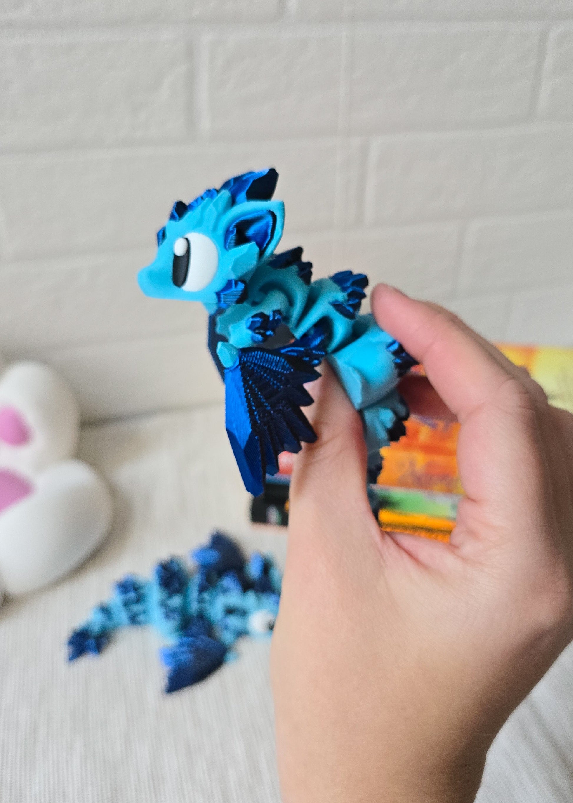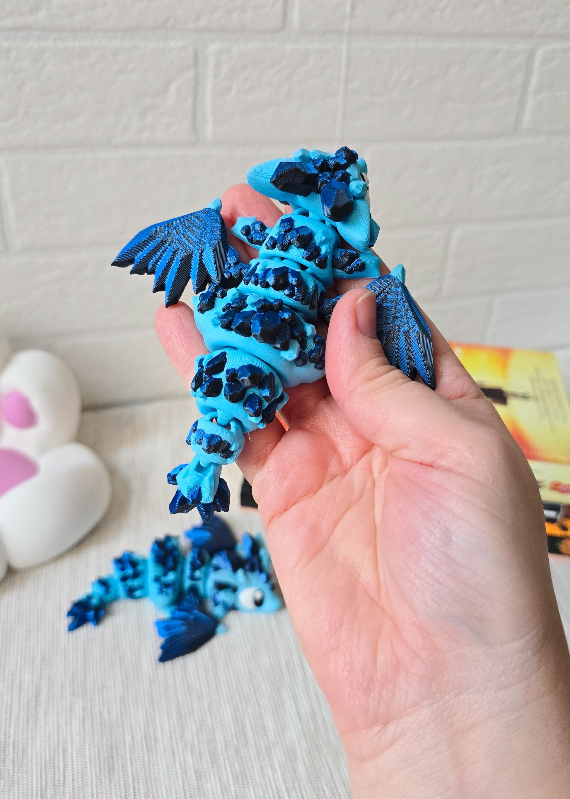 Poznaj niezwykłego Smoka Kryształowego, stworzenie zrodzone ze światła i magii! Jego grzbiet zdobią lśniące kryształy, a delikatne skrzydła wyglądają jak wyrzeźbione z czystego szkła. Postaw go na półce, biurku lub wśród kryształów – niech Smok Kryształowy przynosi Ci odrobinę magii i światła każdego dnia! 💖🐲