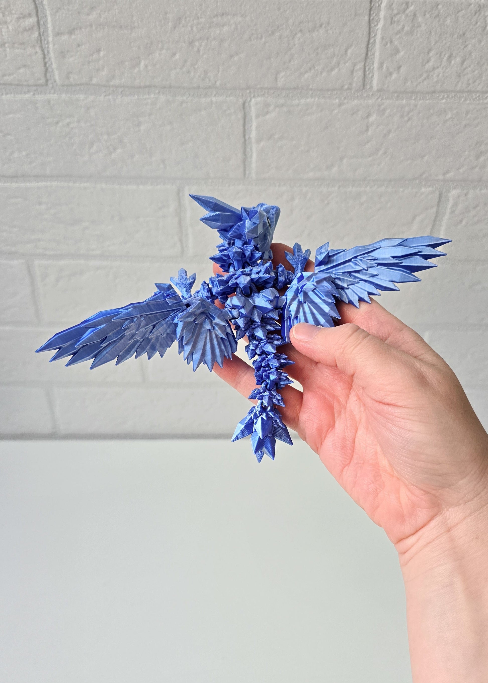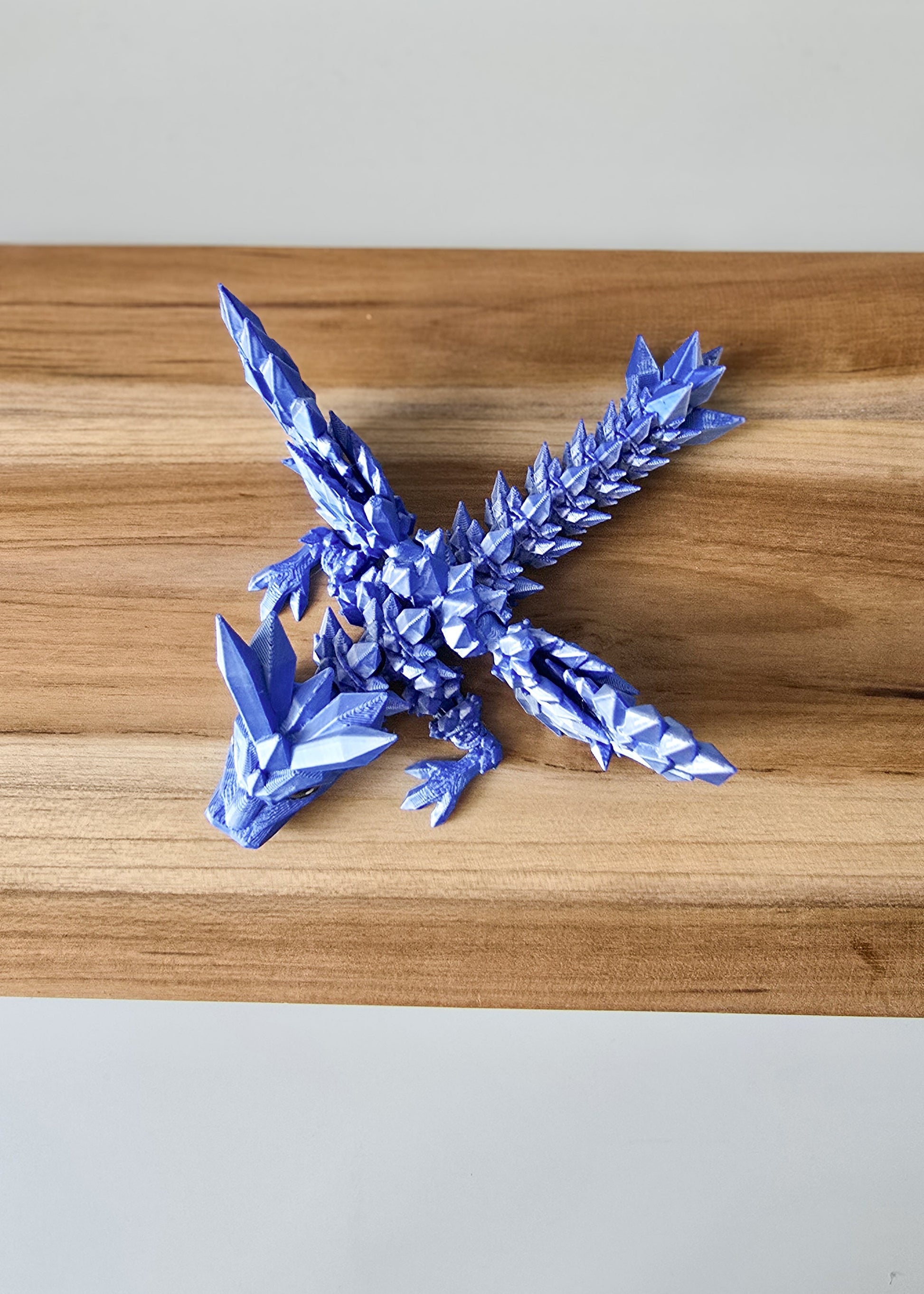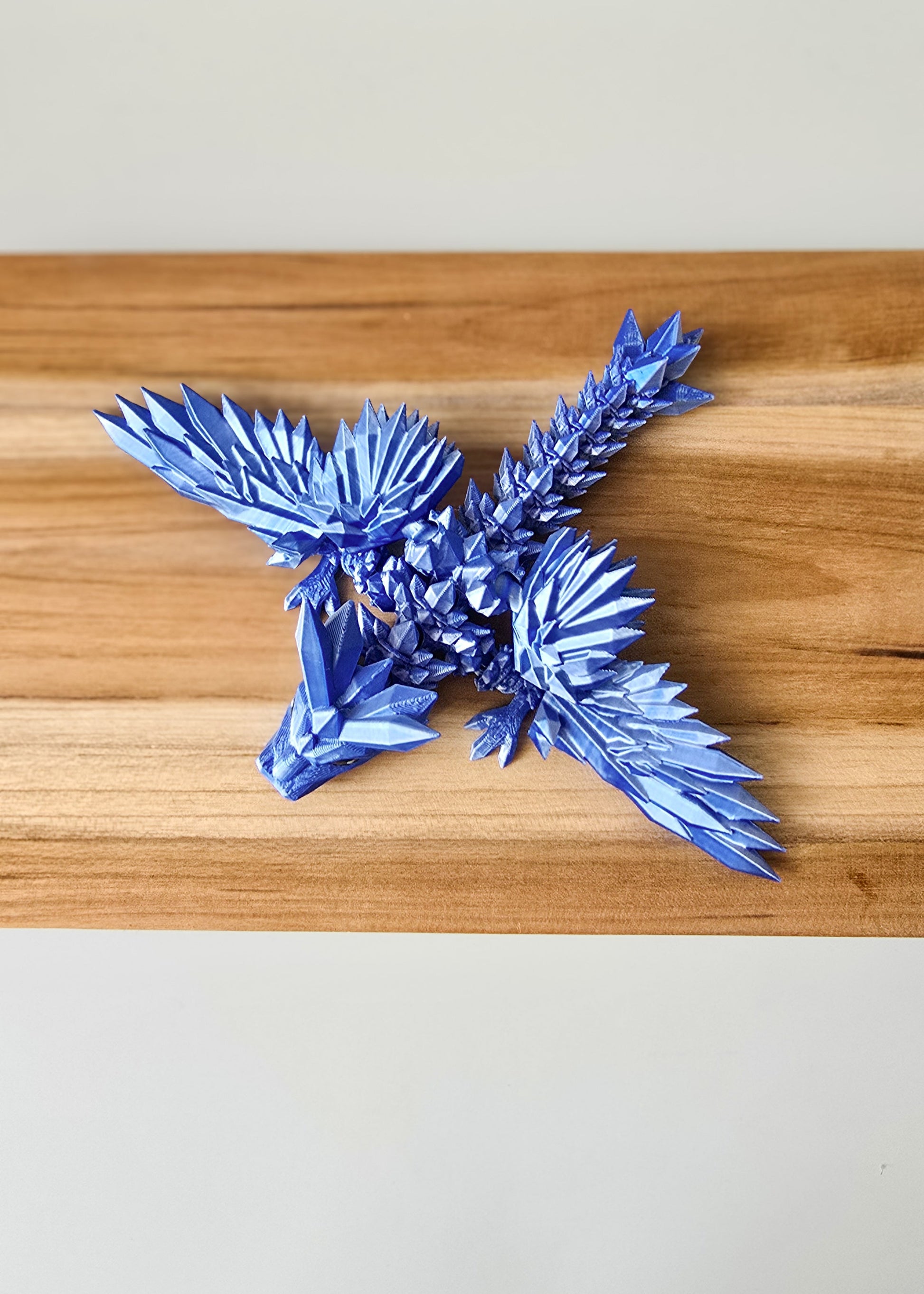 Do druku użyto filamentu wielokolorowego w różnych odcieniach błękitu, dlatego każdy smok może się różnić kolorystyką.