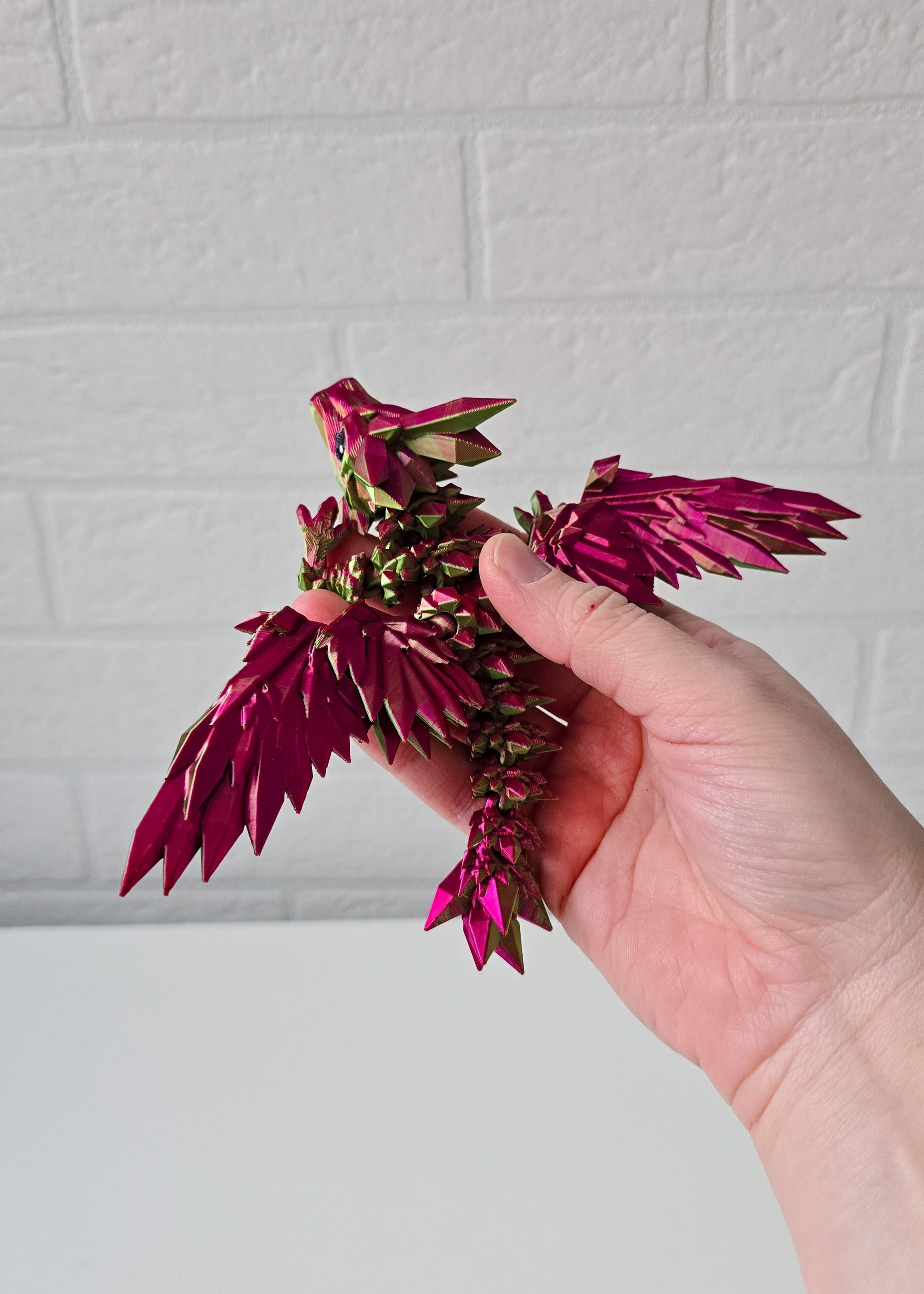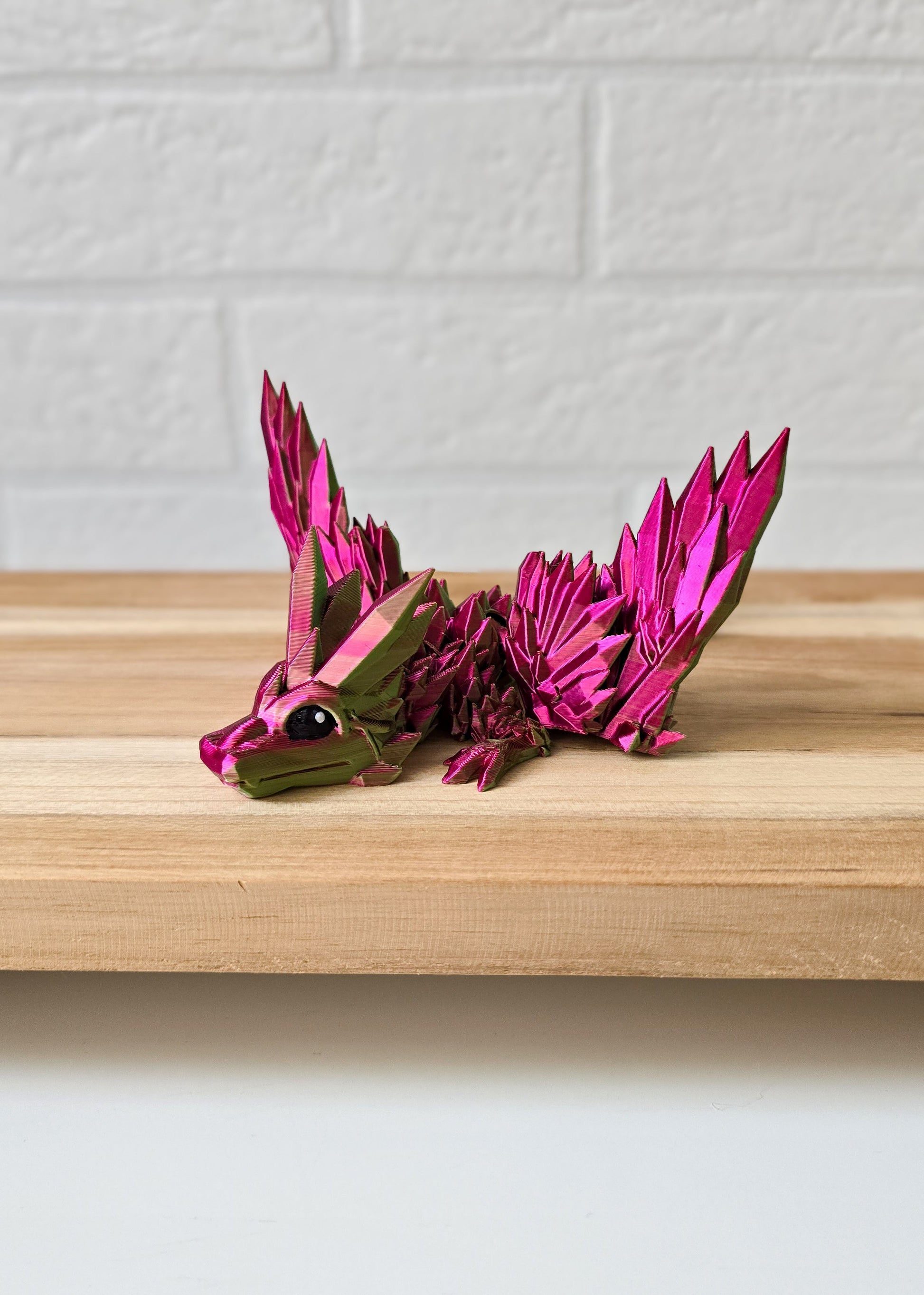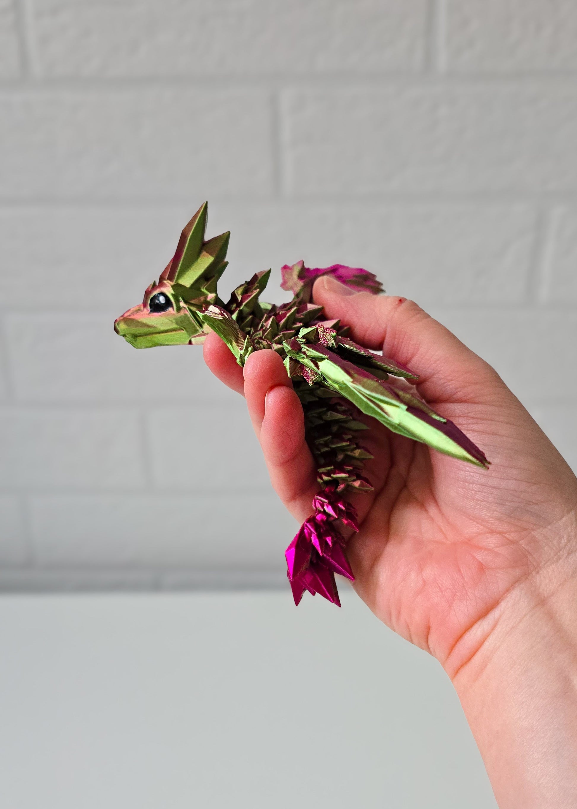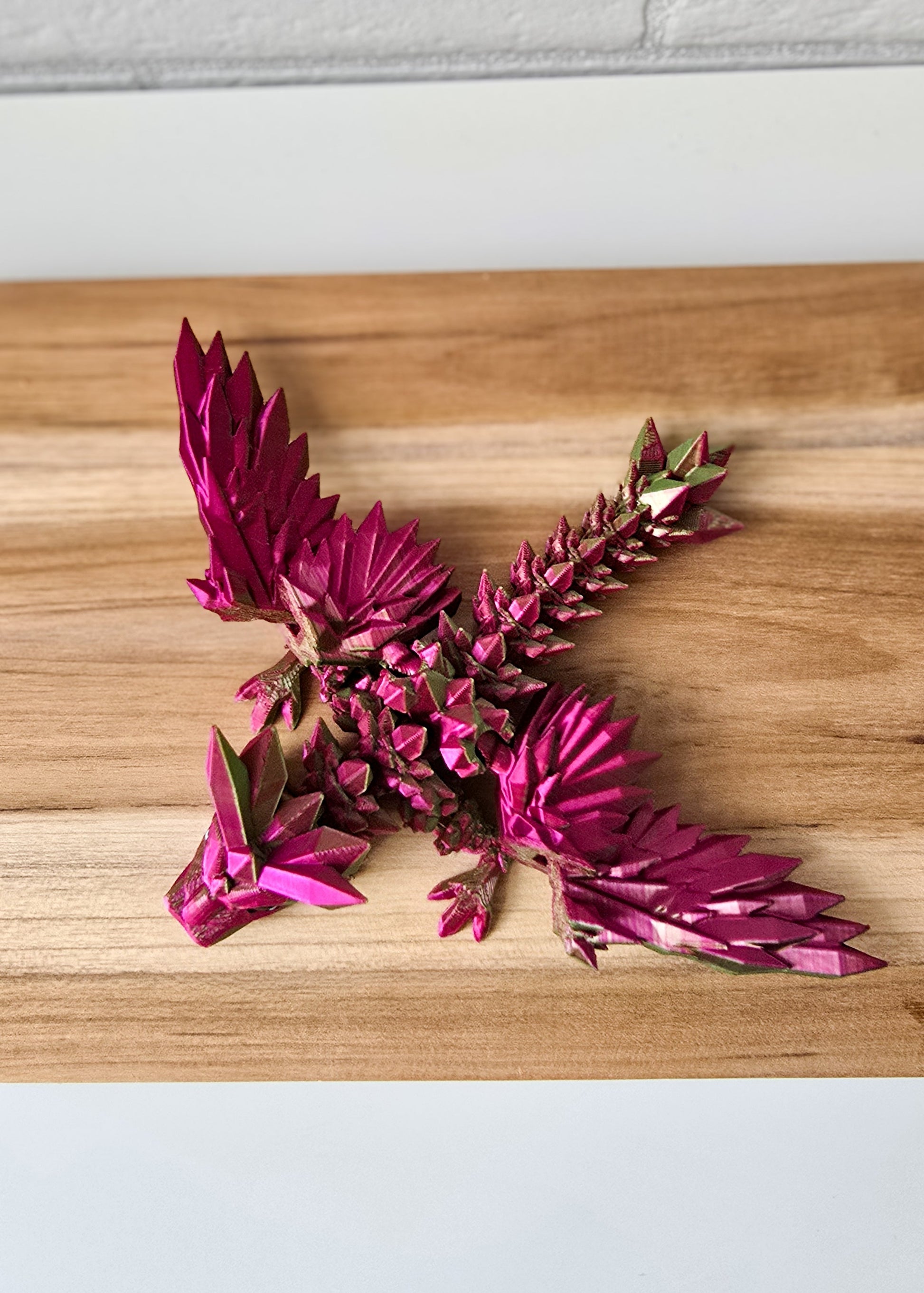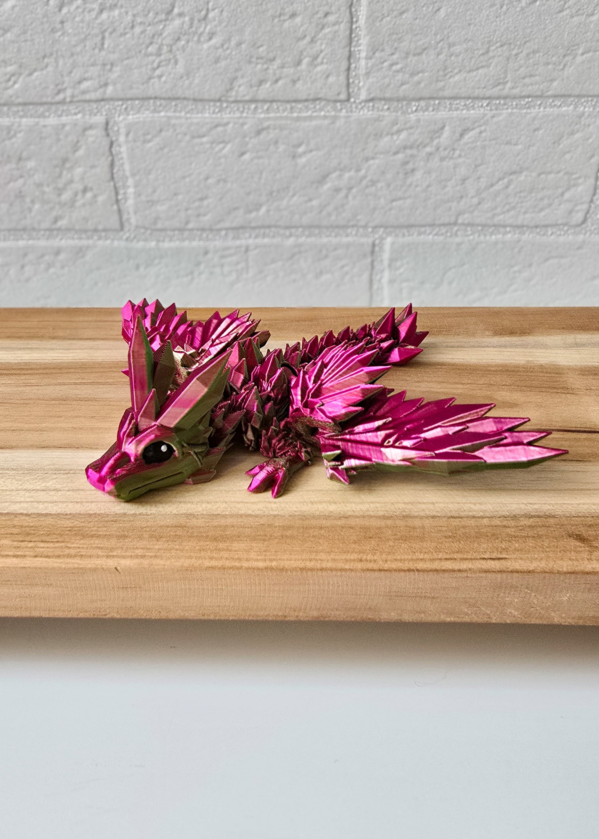 Do druku użyto filamentu wielokolorowego w odcieniach różu, fioletu i zieleni, dlatego każdy smok może się różnić kolorystyką.