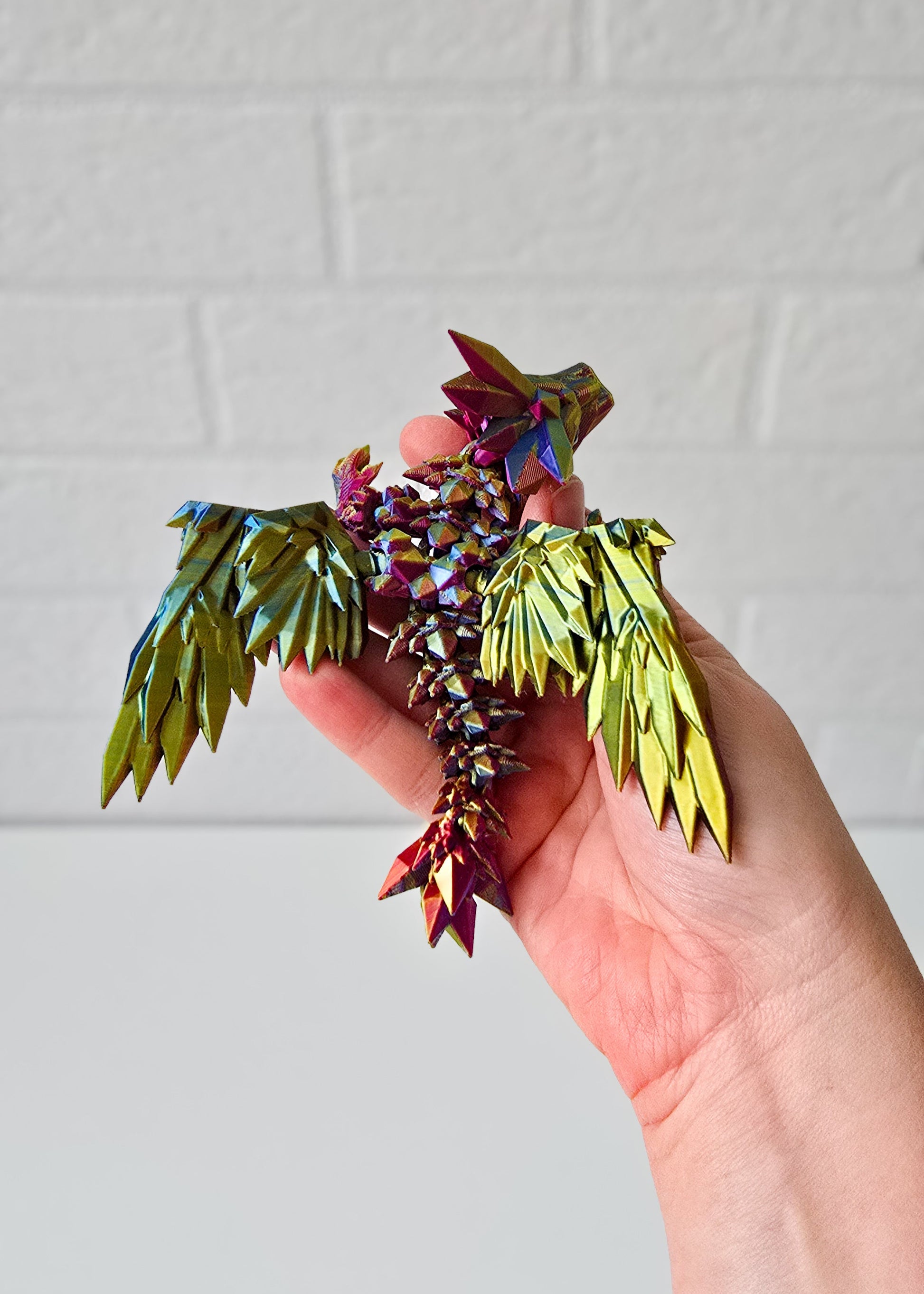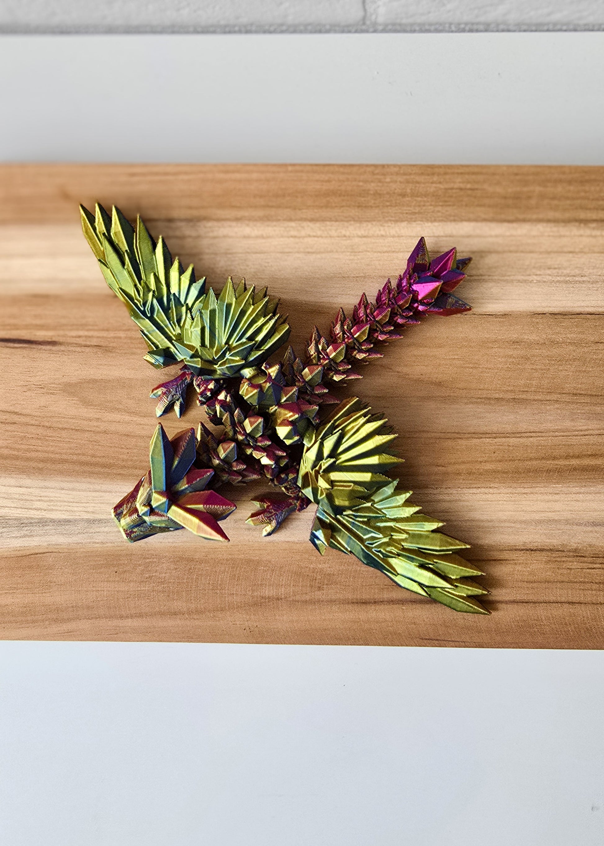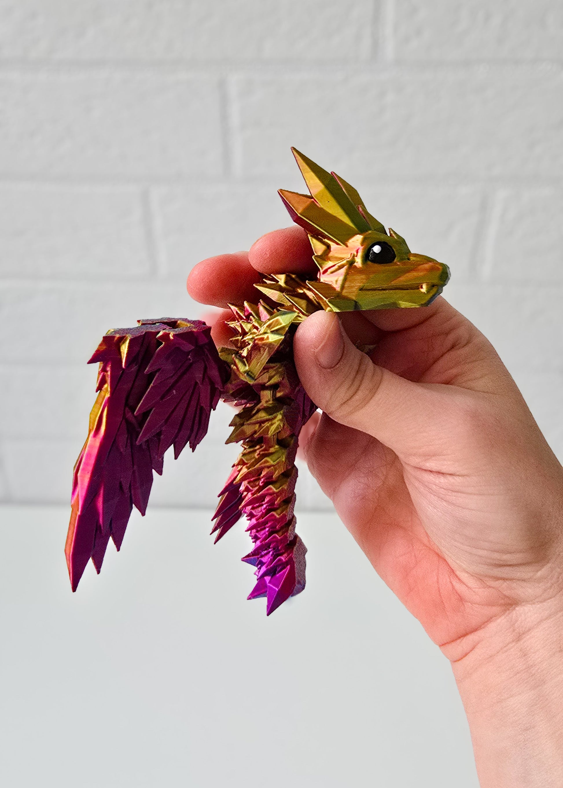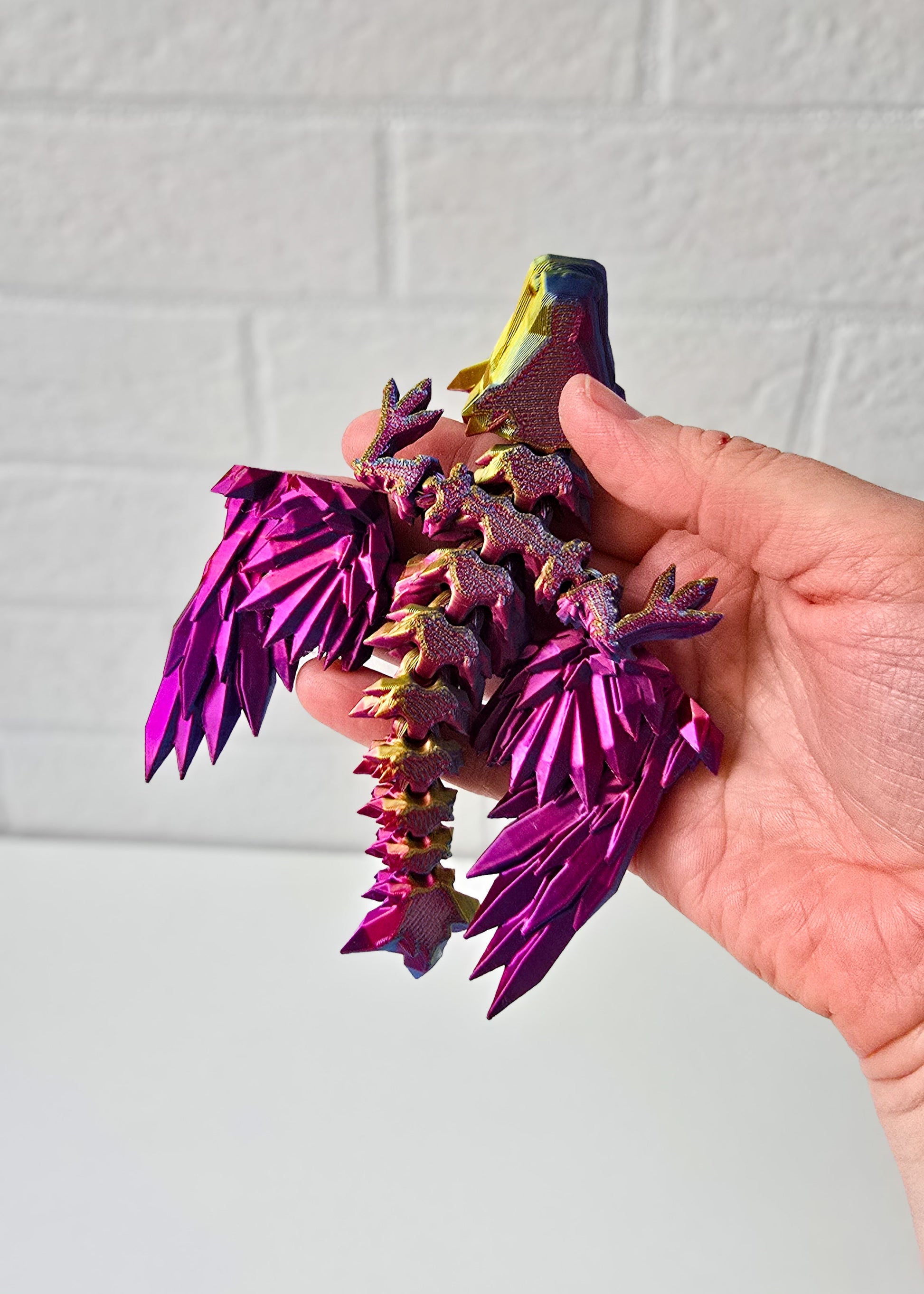 Do druku użyto filamentu wielokolorowego w odcieniach złotego, niebieskiego i fioletowego, dlatego każdy smok może się różnić kolorystyką.
