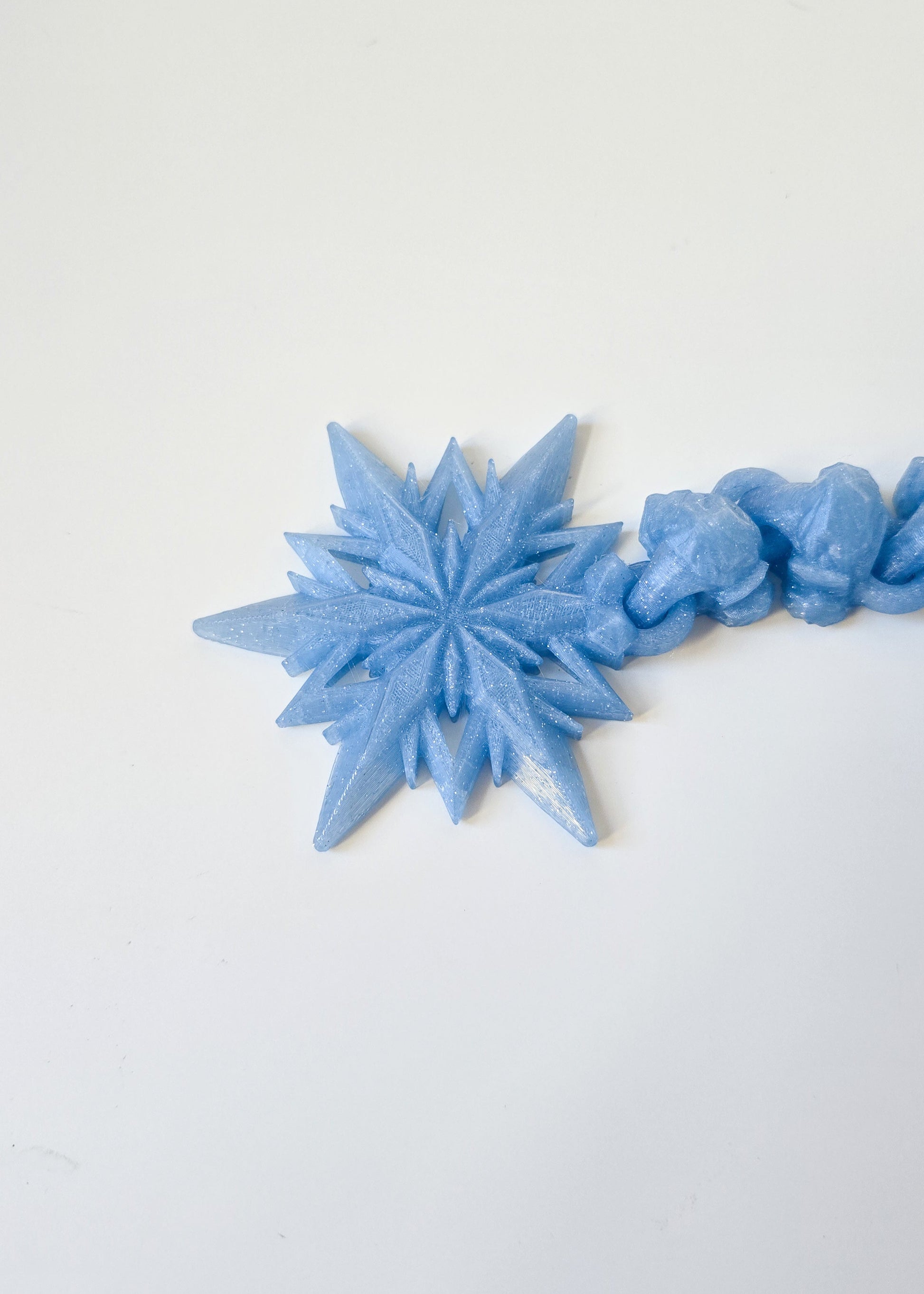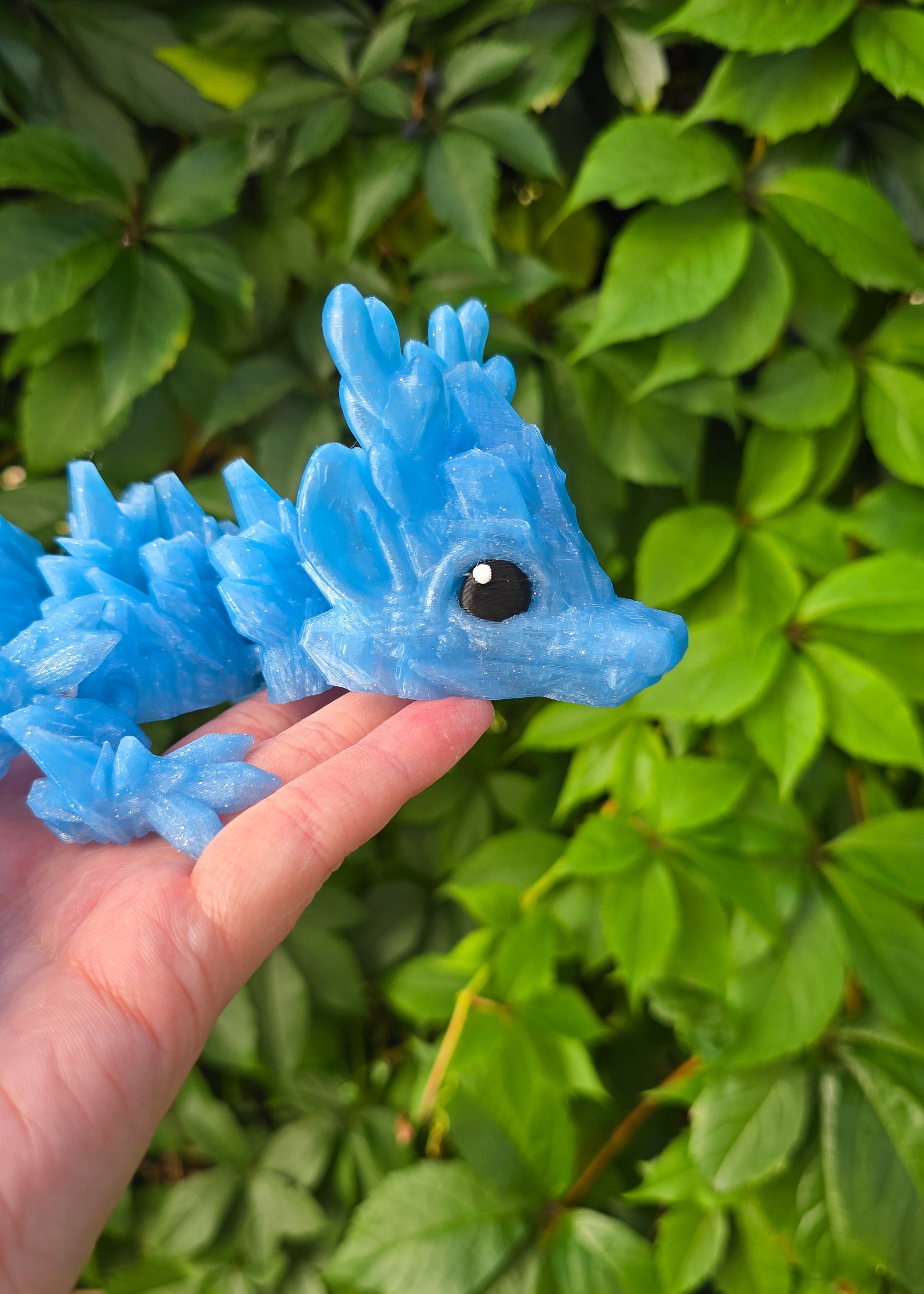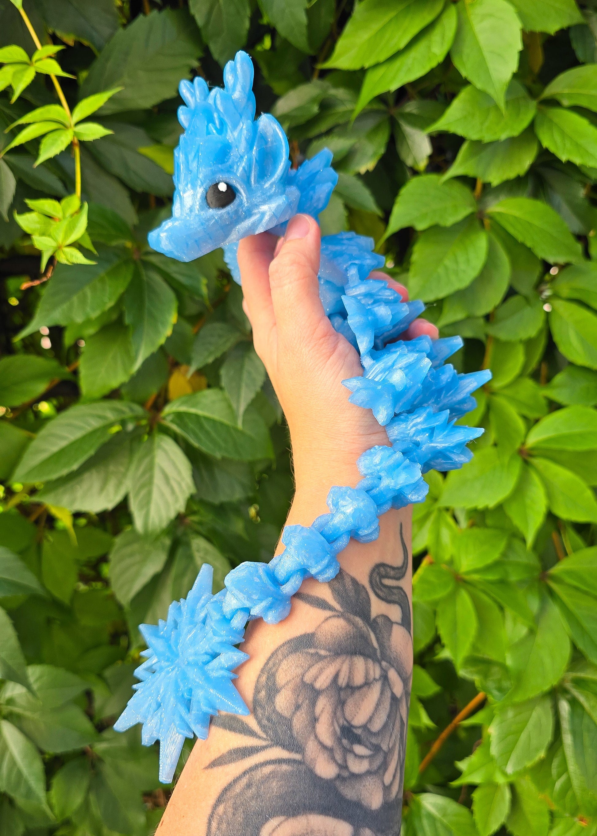 Oto imponująca figurka smoka wydrukowana w 3D, w pięknym błękitnym kolorze z detalami przypominającymi lodowe akcenty. Całość wygląda, jakby smok pochodził prosto z krainy lodu! Na końcu długiego ogona znajduje się szczegółowa śnieżynka, co dodaje figurce zimowego, magicznego charakteru. To doskonały wybór dla kolekcjonerów, miłośników fantasy i wszystkich, którzy szukają wyjątkowego dodatku do swojego wnętrza!
