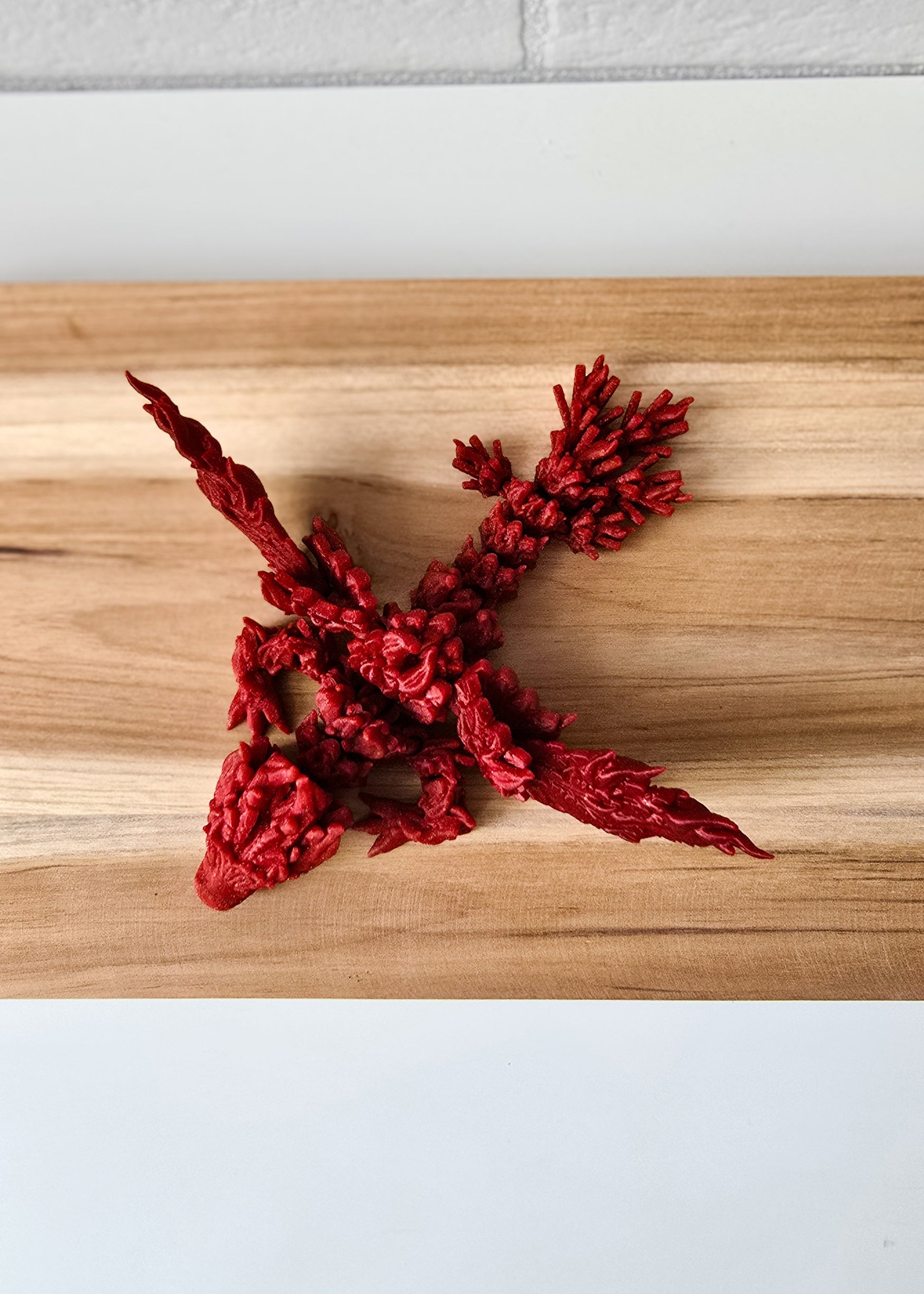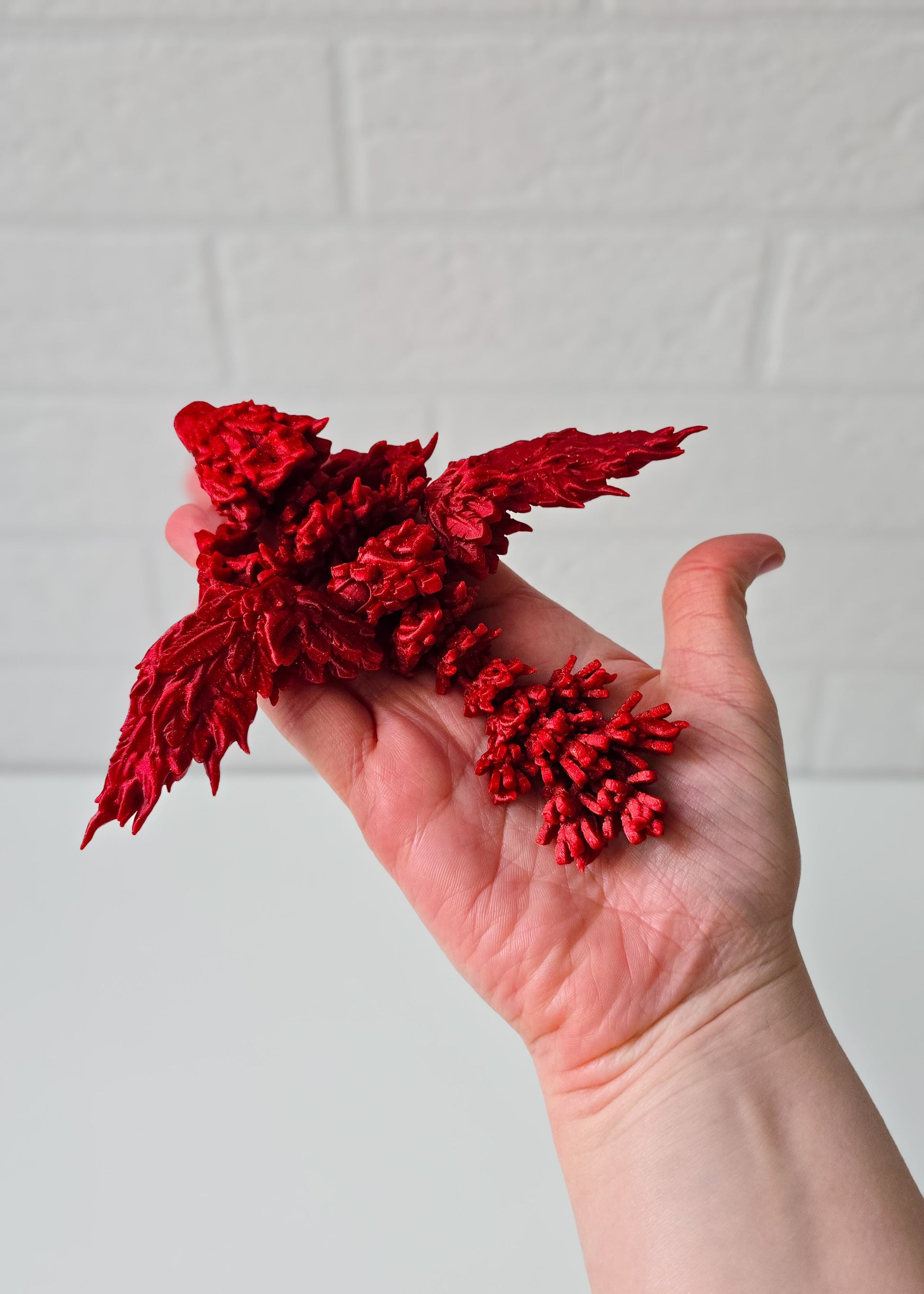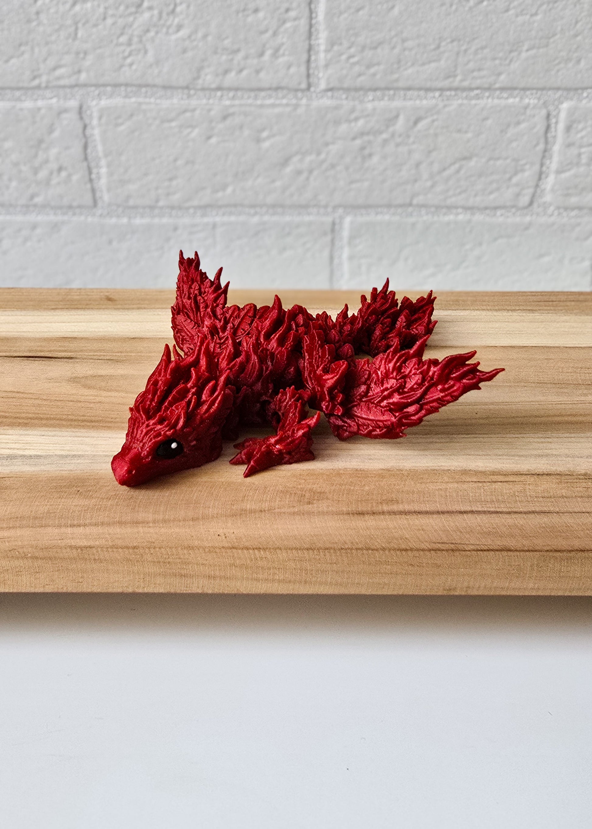Przedstawiamy imponującą figurkę ognistego smoka, wydrukowaną w technologii 3D, która zachwyci każdego miłośnika fantastycznych stworzeń! Ten czerwony smok, wykonany z niezwykłą dbałością o szczegóły, prezentuje majestatyczne skrzydła i ognisty ogon. Ognisty czerwony kolor dodaje mu mocy i sprawia, że figurka doskonale przyciąga uwagę, stając się niepowtarzalnym elementem dekoracyjnym. Świetnie sprawdzi się jako prezent dla fanów smoków, gier fantasy lub magicznych dekoracji, wnosząc odrobinę mitycznego klimatu do wnętrza!