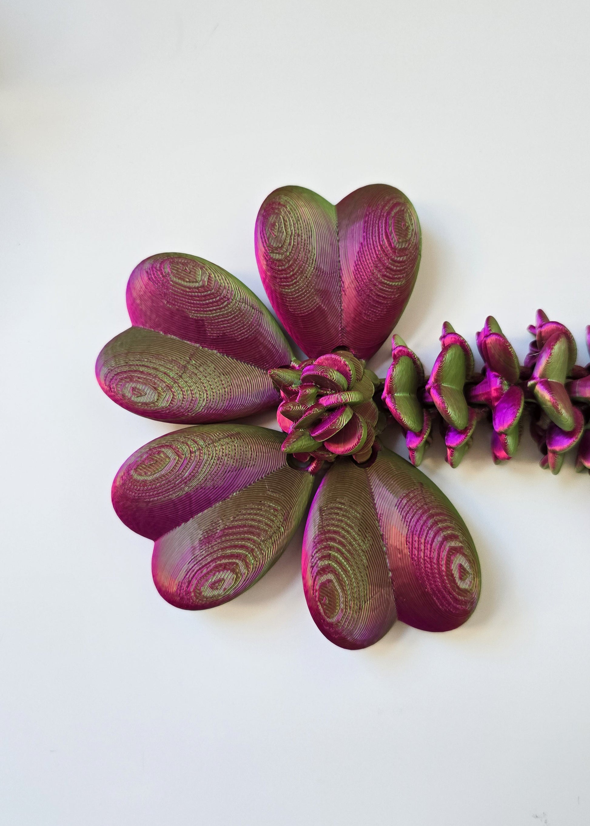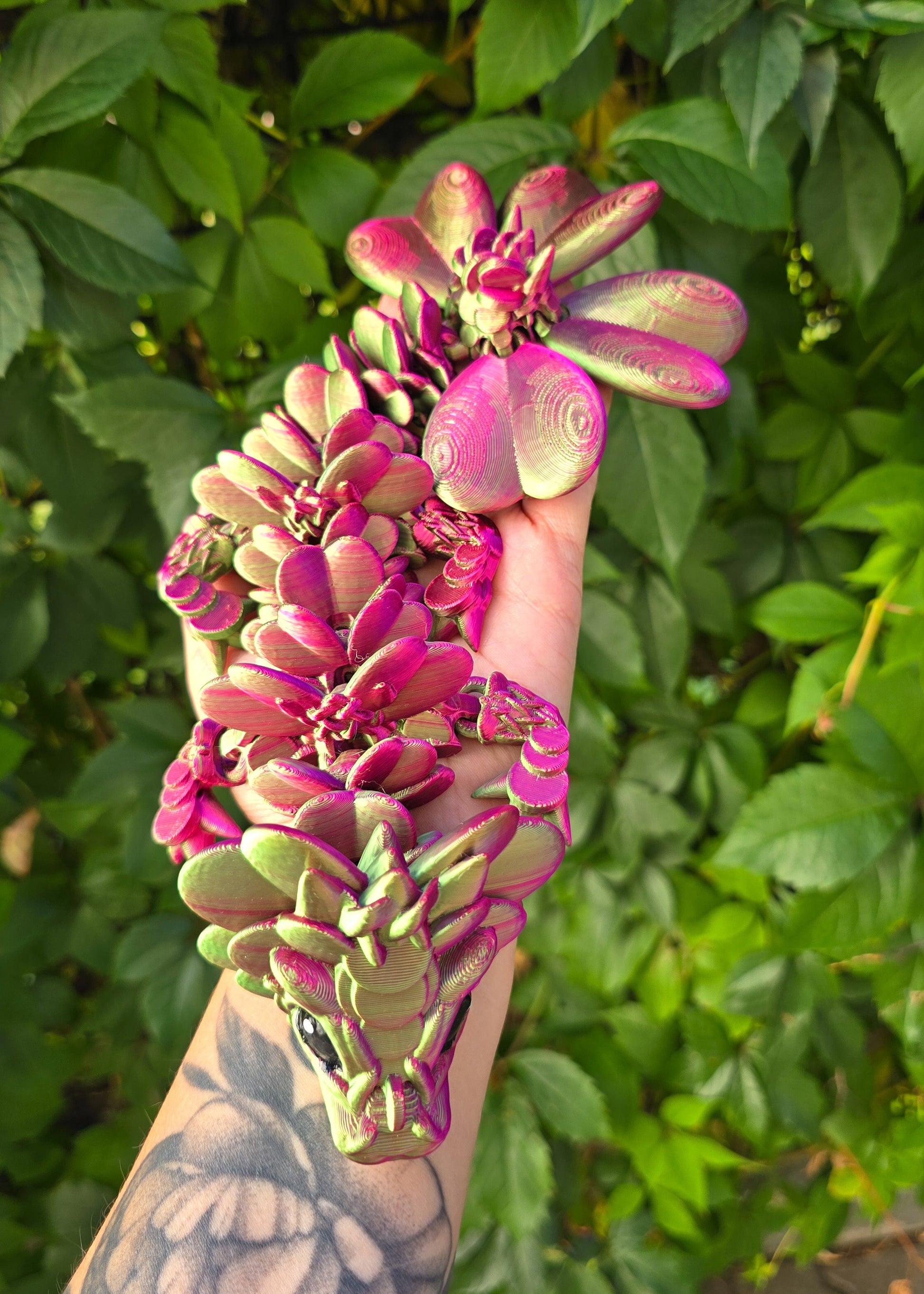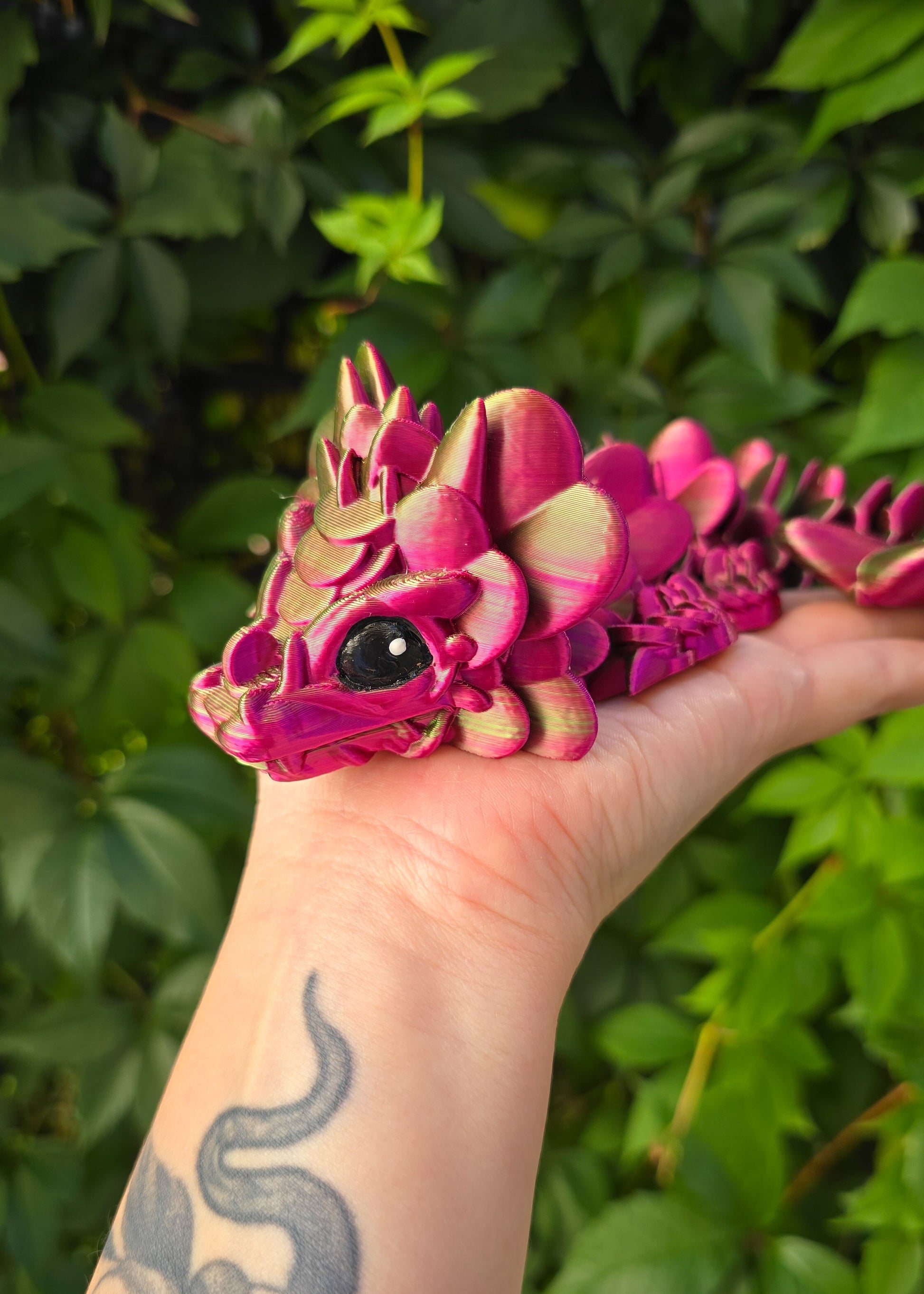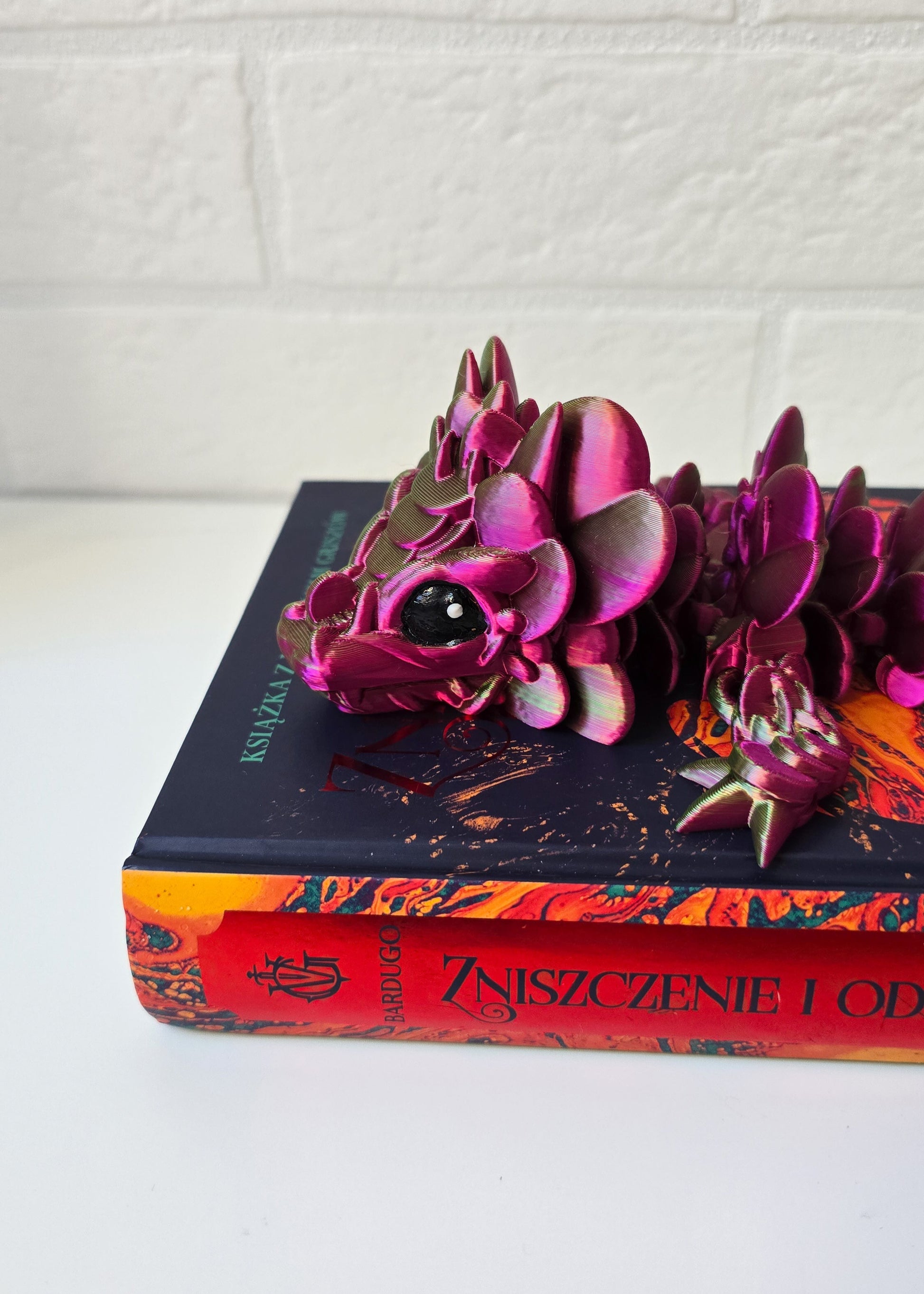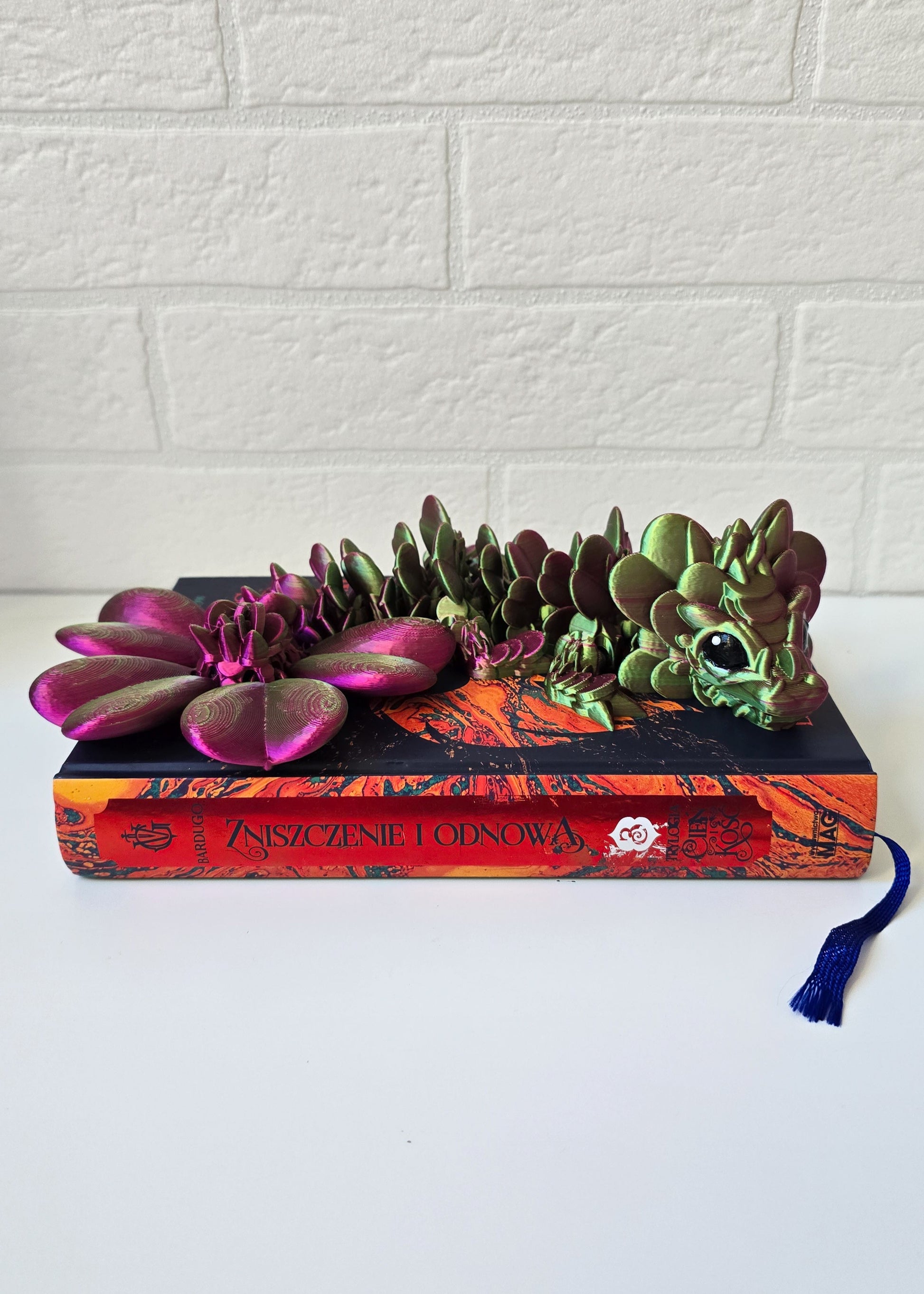 Poznaj niezwykłą figurkę smoka drukowanego w technologii 3D, która łączy w sobie dzikość fantastycznego stworzenia z subtelnym pięknem natury. Ten sporych rozmiarów smok wyróżnia się unikatowym wyglądem – jego łuski przypominają drobne, mięsiste listki sukulentów, tworząc niepowtarzalną, organiczną strukturę. Ten smok to połączenie fantastyki i botanicznej inspiracji – figurka, która zachwyci zarówno miłośników fantasy, jak i natury.
