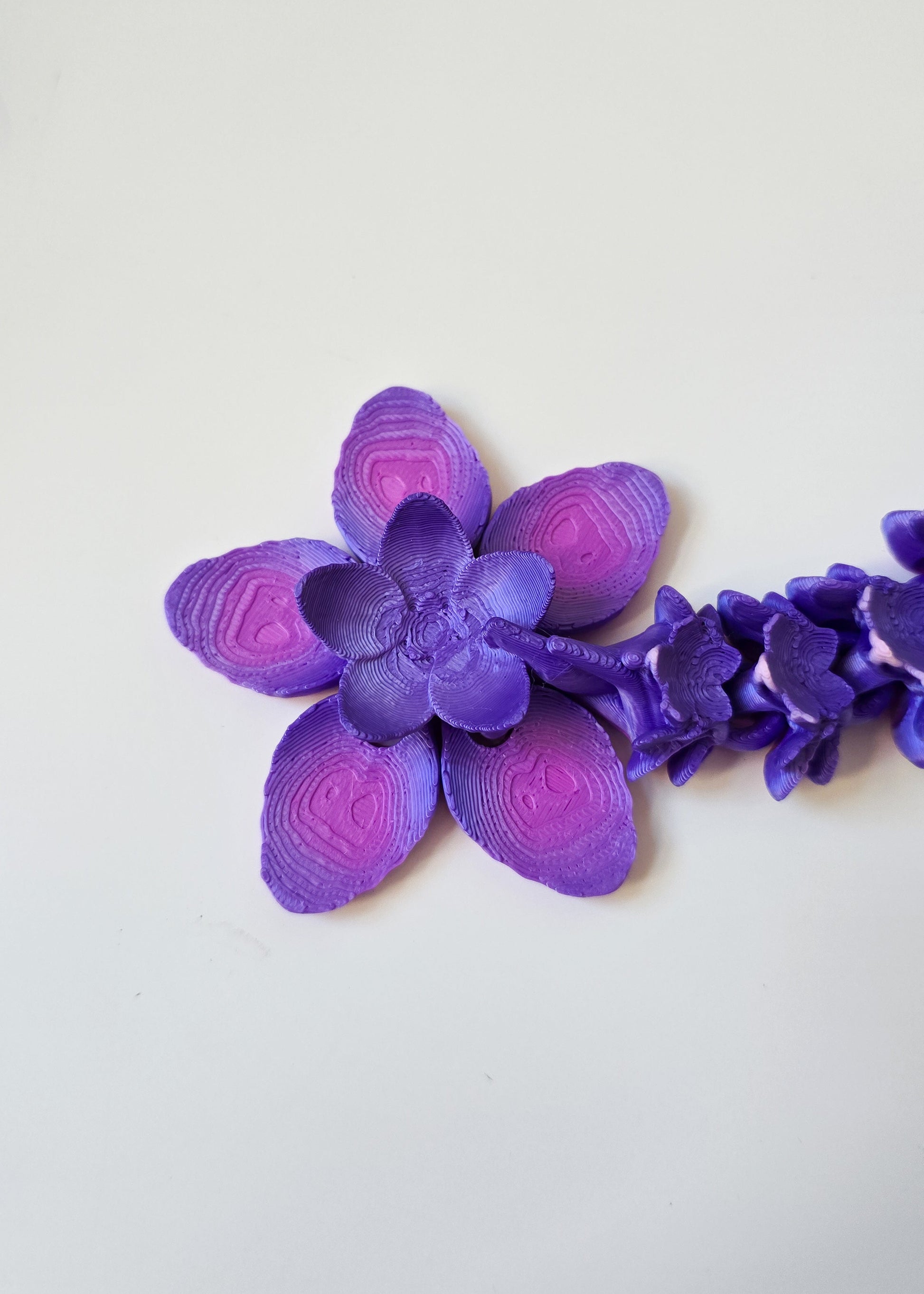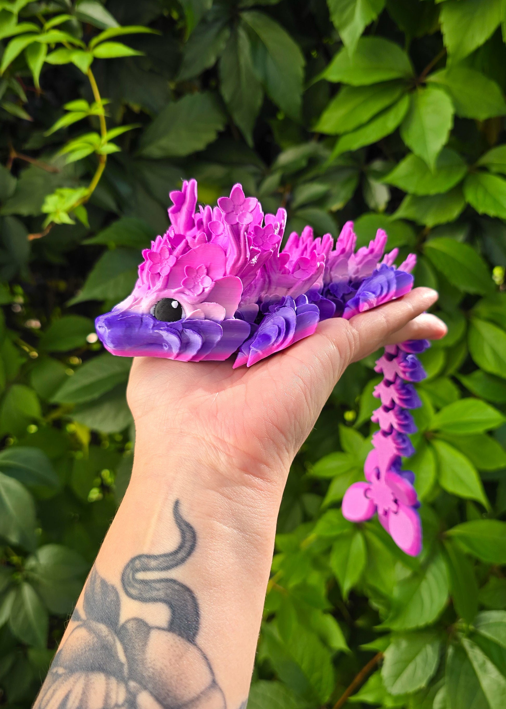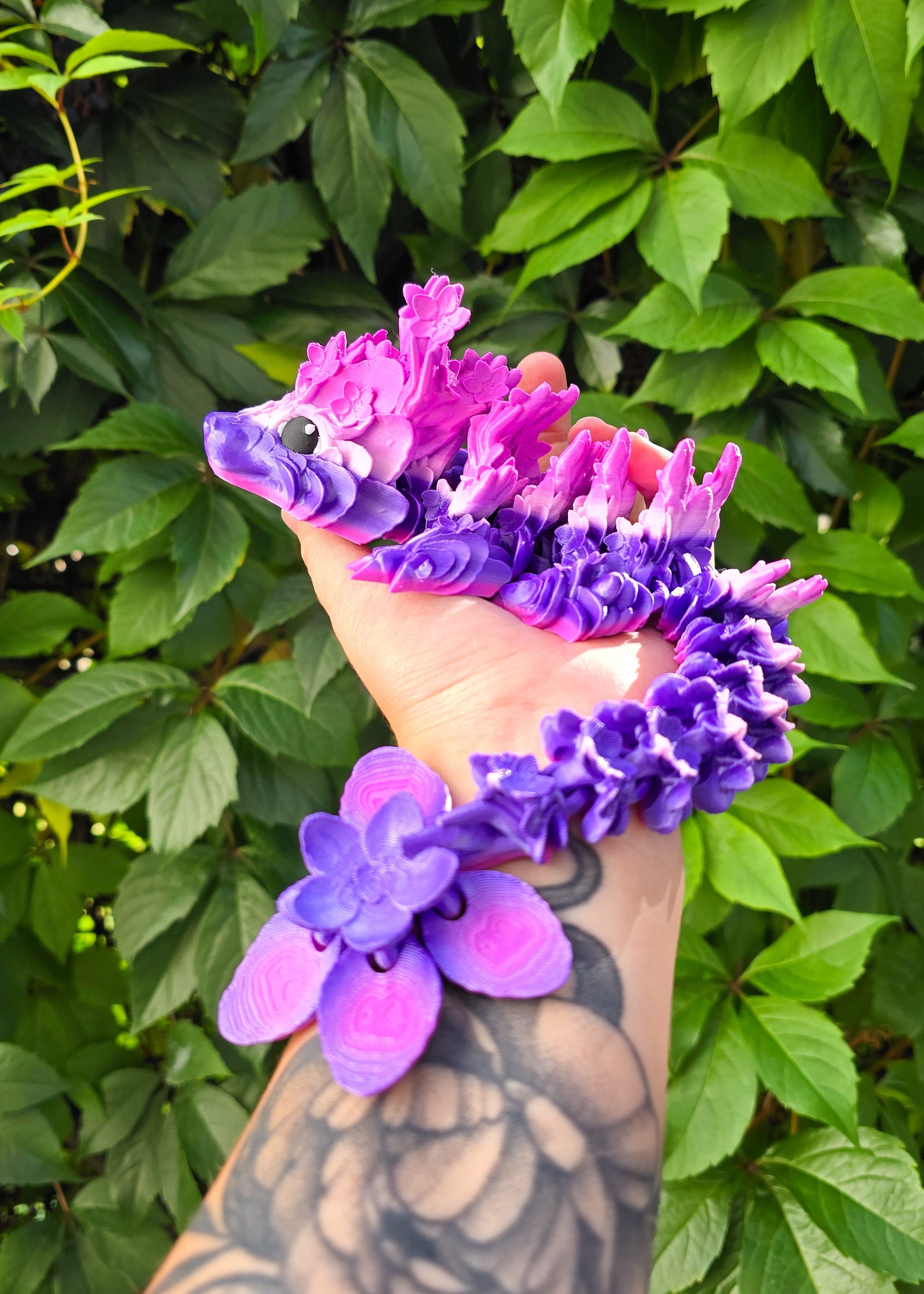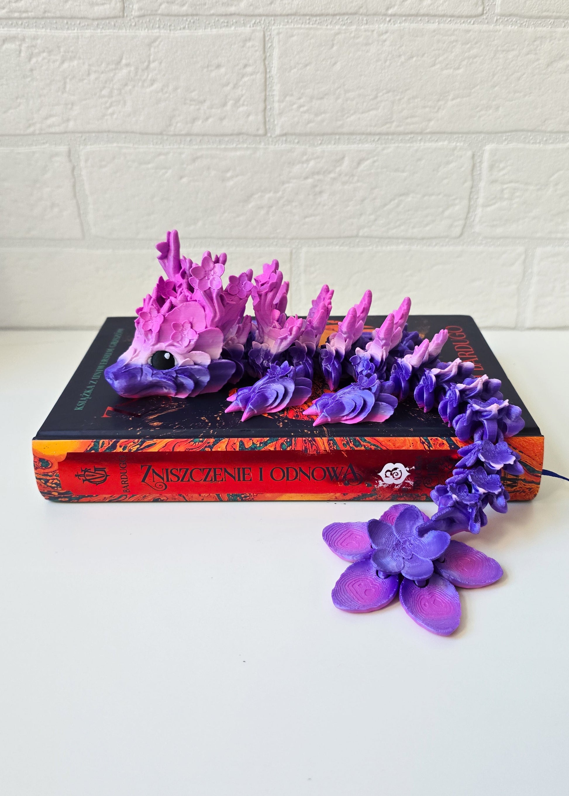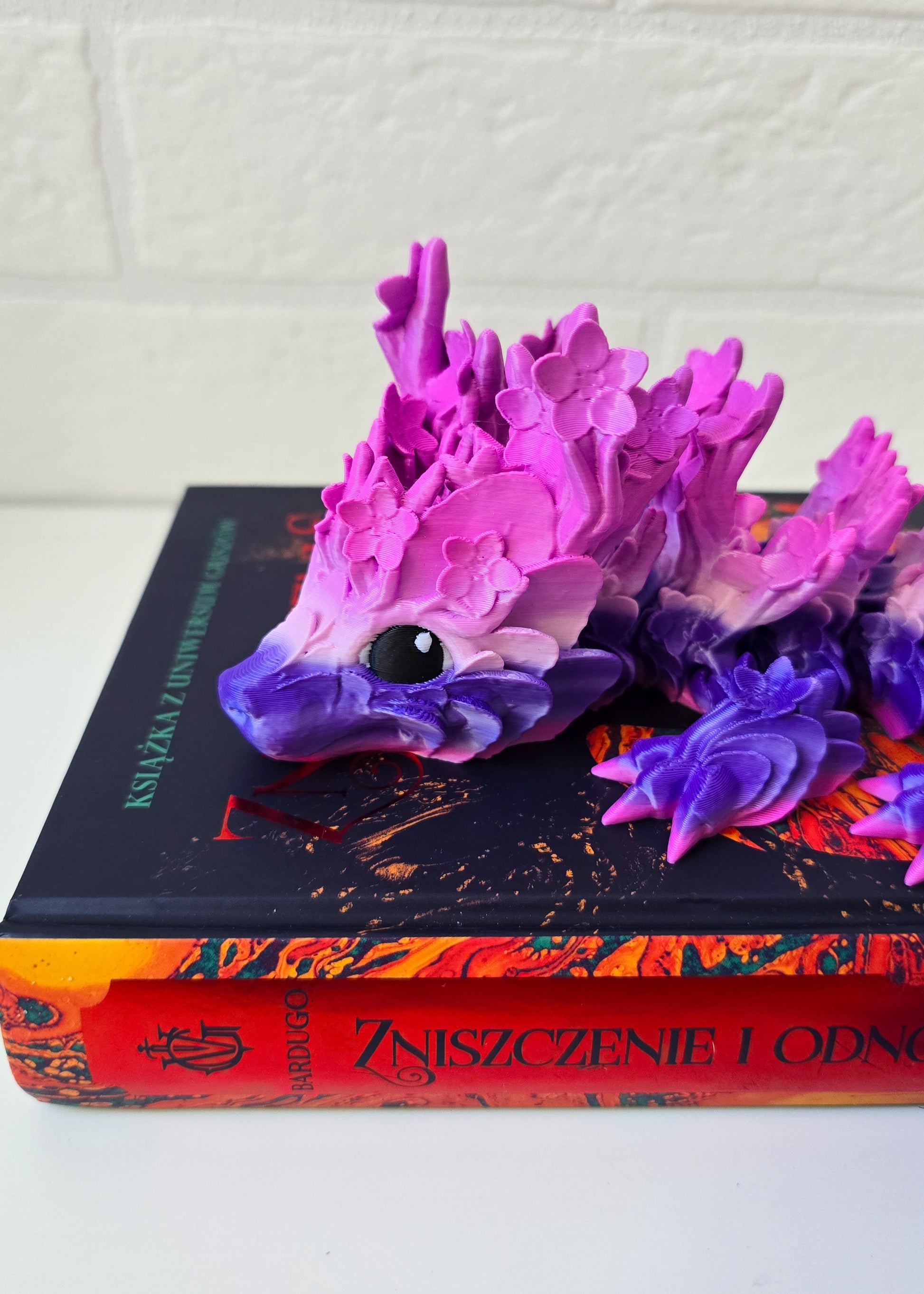 Do druku użyto filamentu wielokolorowego w odcieniach różu i fioletu, dlatego każdy smok może się różnić kolorystyką.