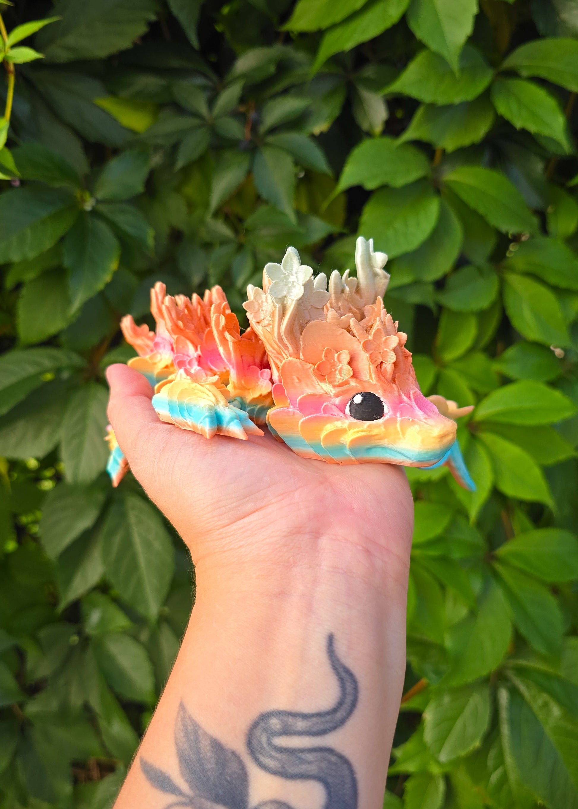 Odkryj mistyczną figurkę 3D smoka z pięknymi elementami drzewa wiśniowego, która łączy w sobie siłę i delikatność natury! Smok ozdobiony jest subtelnymi kwiatami wiśni, symbolizującymi ulotne piękno i harmonię. Dzięki precyzyjnej technologii druku 3D, każda część figurki, od jego łusek po delikatne kwiaty, została starannie odwzorowana. Idealna jako ozdoba lub niepowtarzalny prezent dla miłośników smoków i japońskiej estetyki!