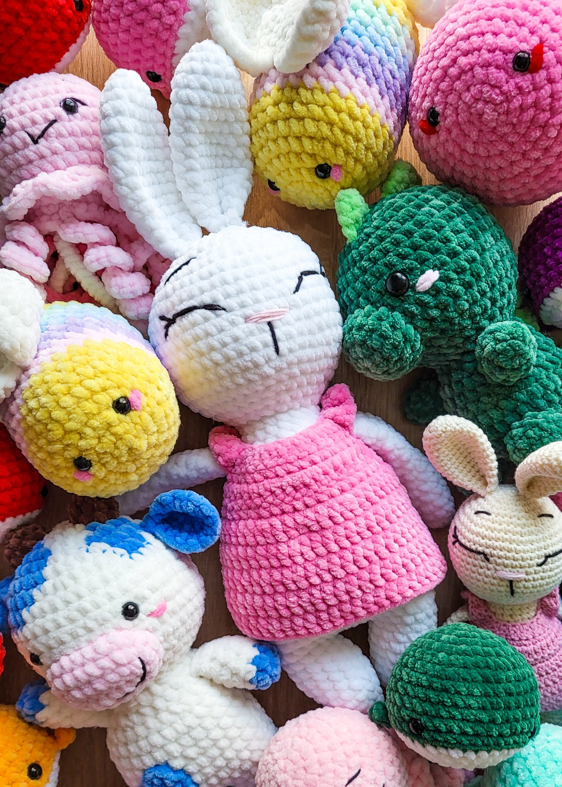 Poznaj uroczego, ogromnego królika w sukience, ręcznie robionego na szydełku! Ten wyjątkowy królik to prawdziwe arcydzieło rękodzieła, które zachwyca swoją wielkością i starannością wykonania. Stworzony z miękkiej, przyjaznej dla skóry włóczki, królik ma uroczą sukienką w pastelowych kolorach i długie, mięciutkie uszy. Idealny jako wyjątkowy towarzysz zabaw dla dzieci lub ozdoba pokoju, ten królik wniesie radość i przytulność do każdego wnętrza. Doskonały prezent dla miłośników rękodzieła i unikalnych przytulanek!