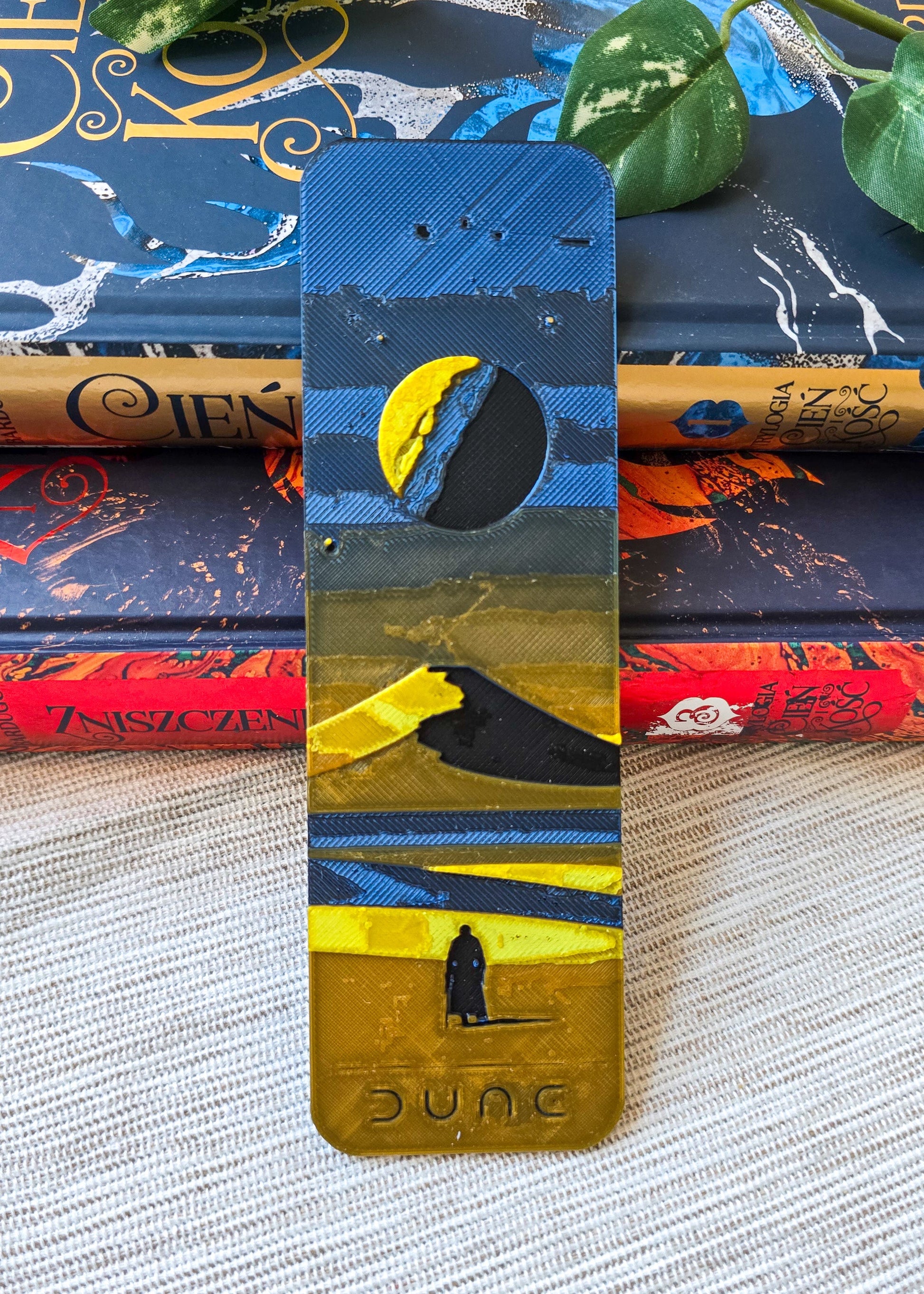 Unikatowa zakładka do książki inspirowana uniwersum „Diuny”, zaprojektowana i wykonana przeze mnie metodą druku 3D. Projekt nawiązuje do pustynnego świata, monumentalnych form i mistycznej atmosfery Arrakis, zachowując autorski, fanartowy charakter ✨📚