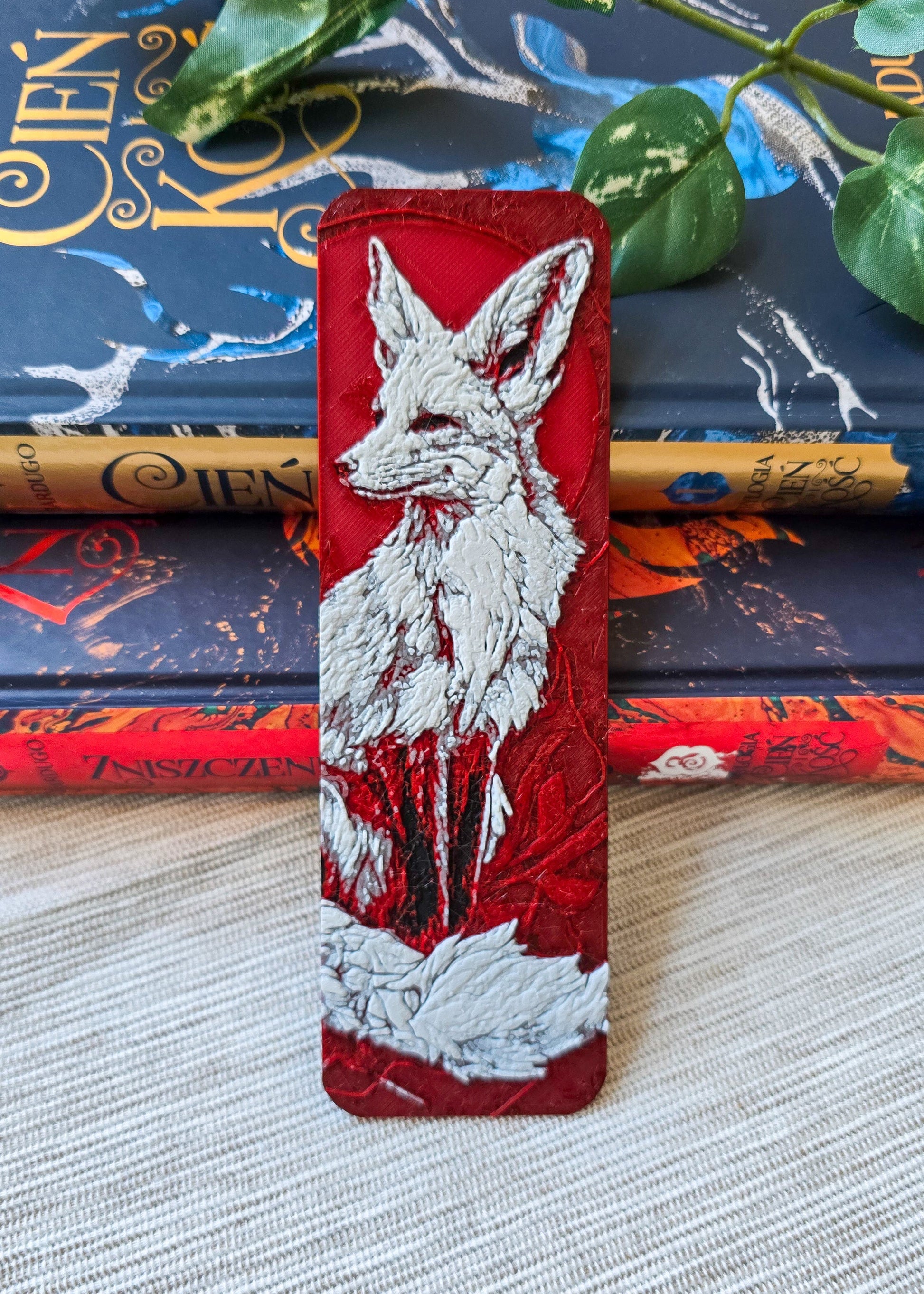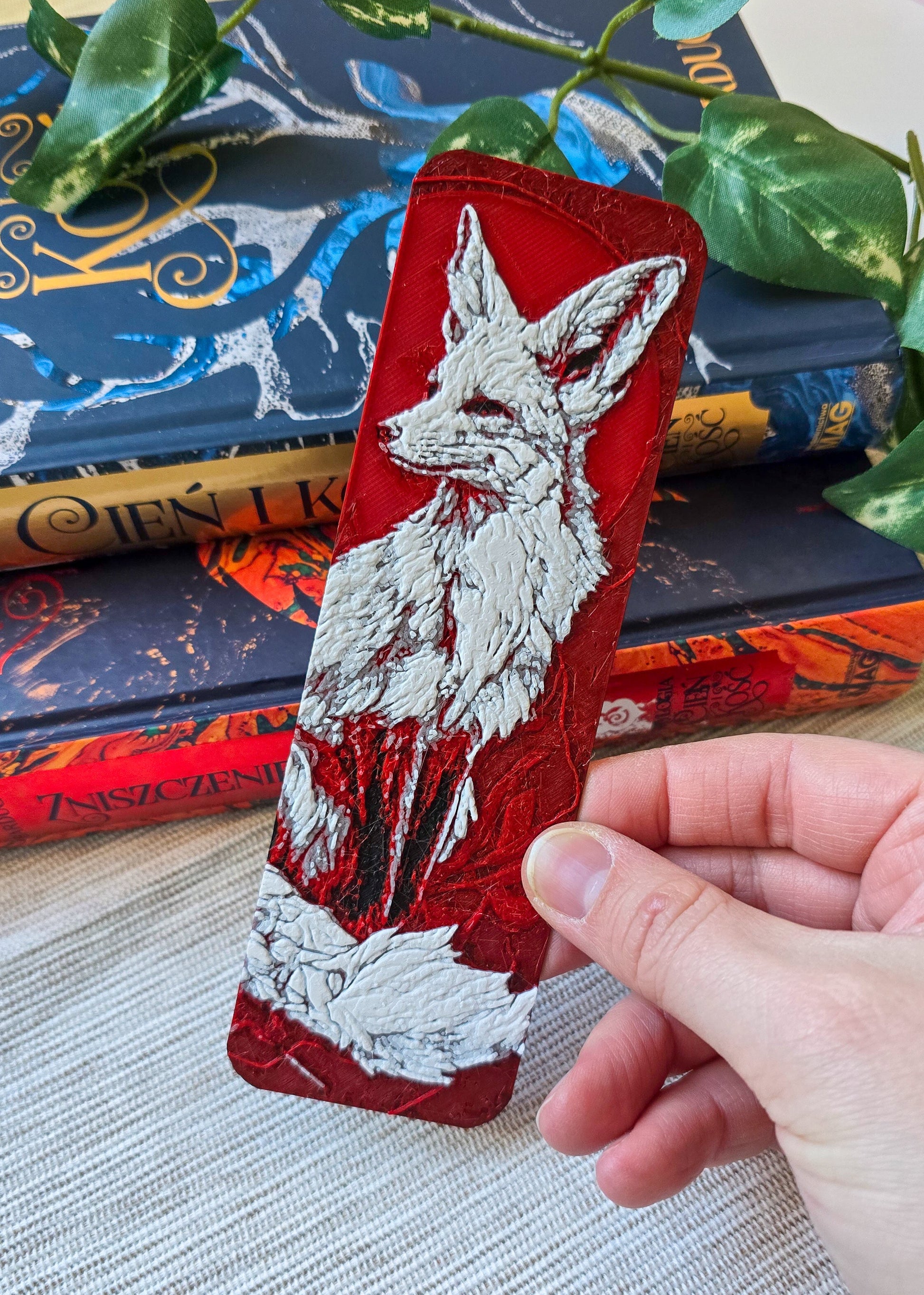 Wyjątkowa zakładka do książki z motywem białego lisa na czerwonym tle, zaprojektowana i wykonana metodą druku 3D. Ta autorska zakładka jest idealna dla osób, które kochają minimalistyczne i stylowe dodatki oraz zwierzęce motywy w swoim codziennym czytaniu 📚✨